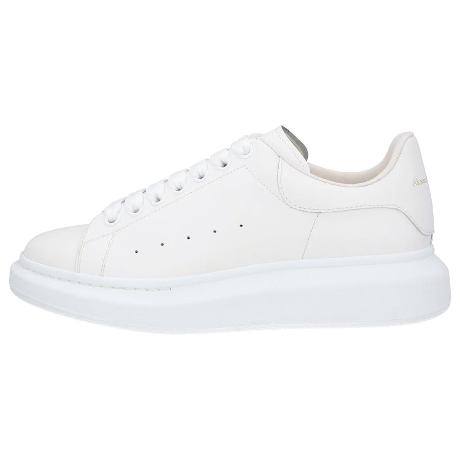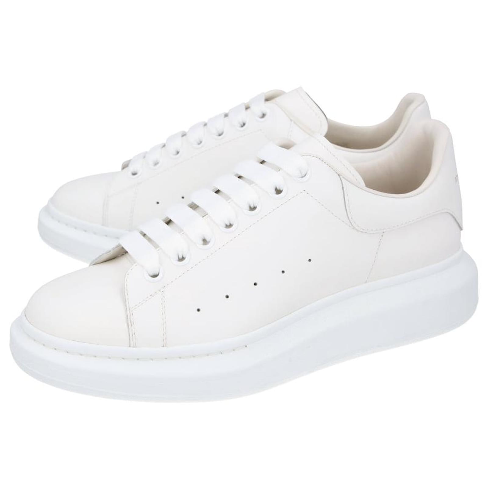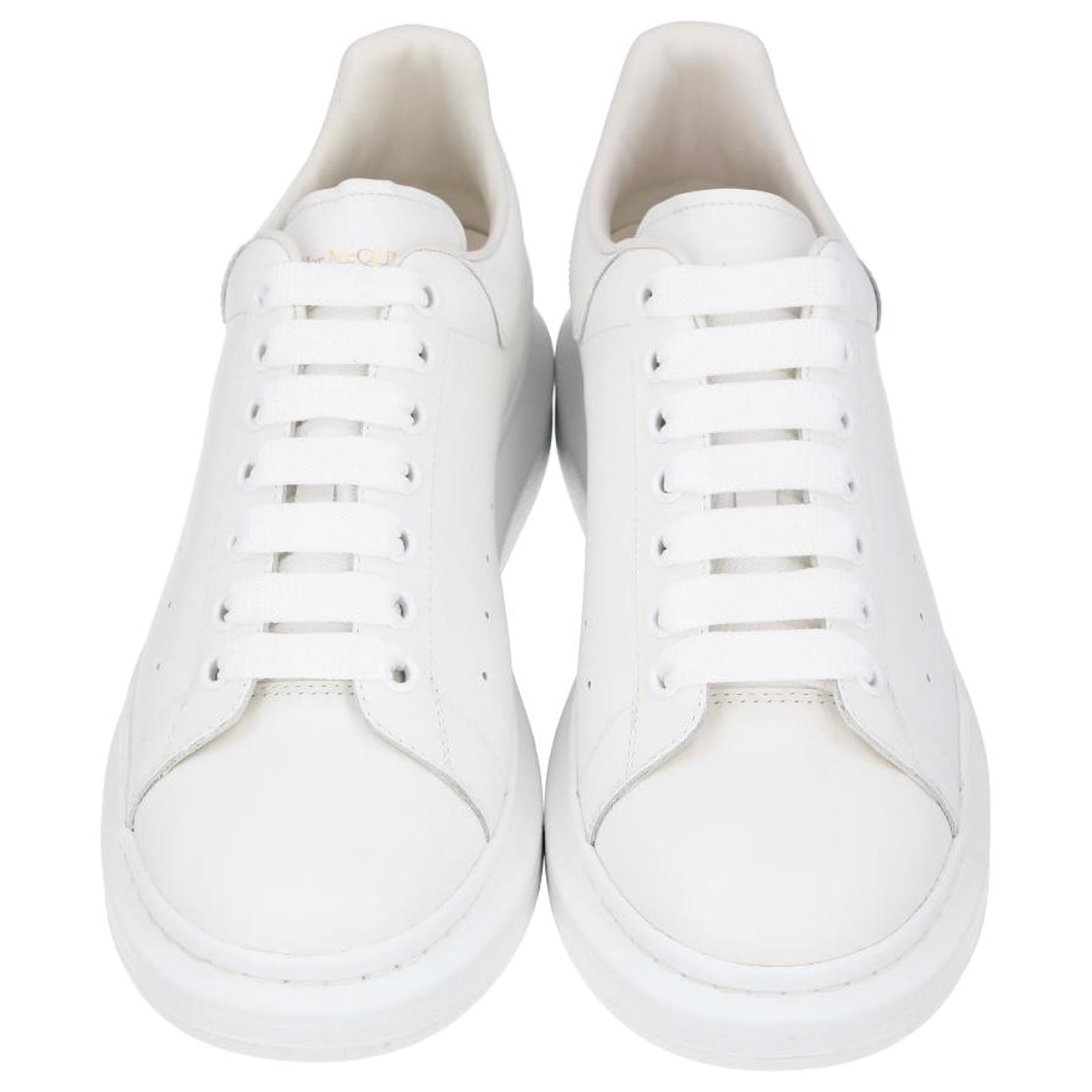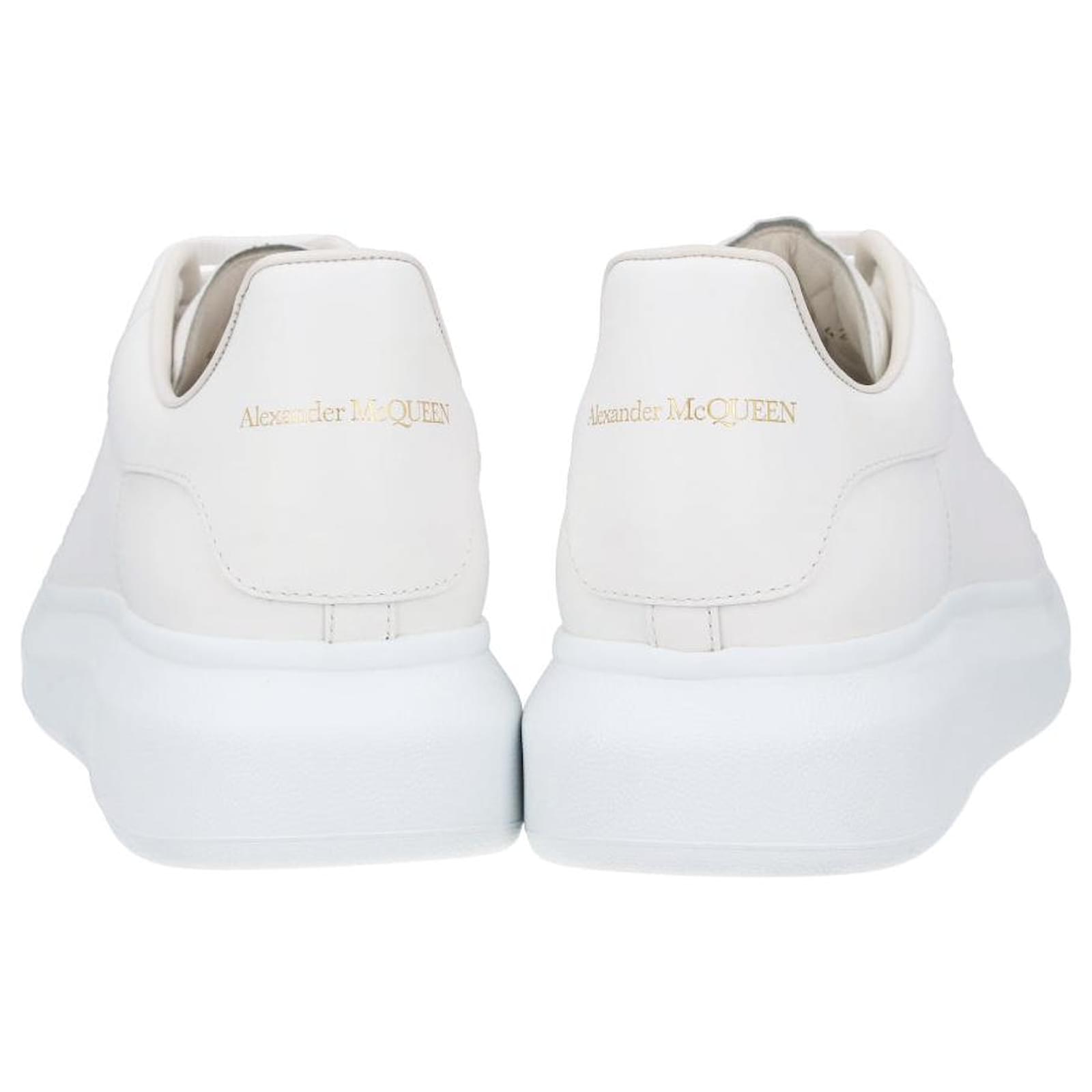 - White lace-up sneakers made from smooth calfskin with a round toe- Flat, wide laces and McQueen logo on the tongue and heel cap- Extra-large rubber sole- Made in Italy Product Id: 518440