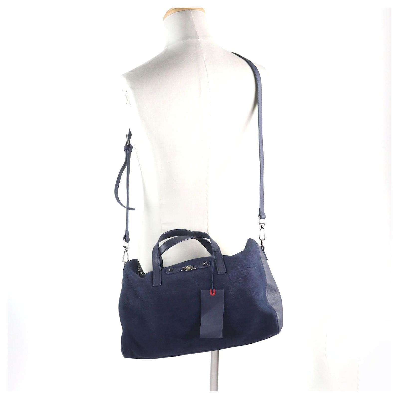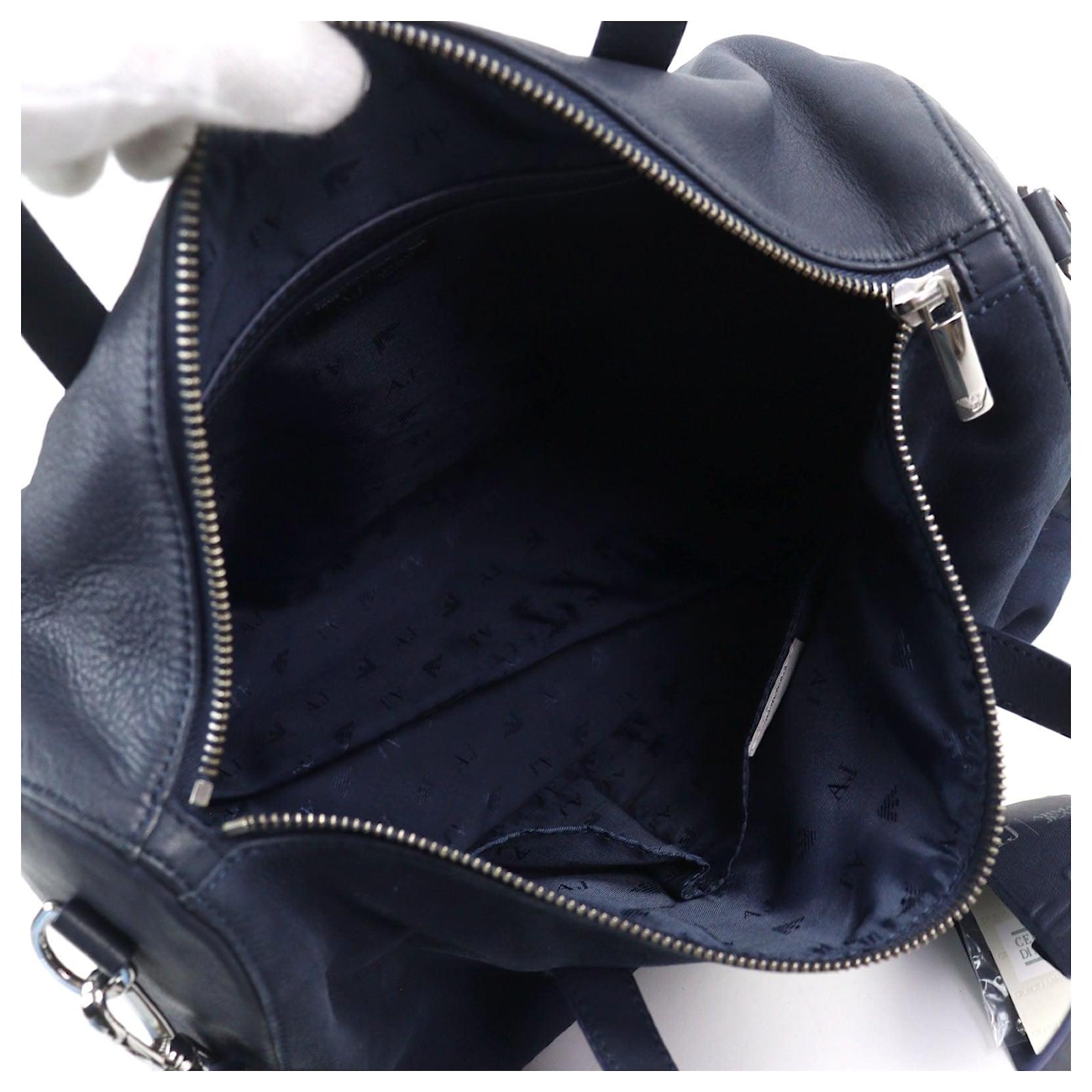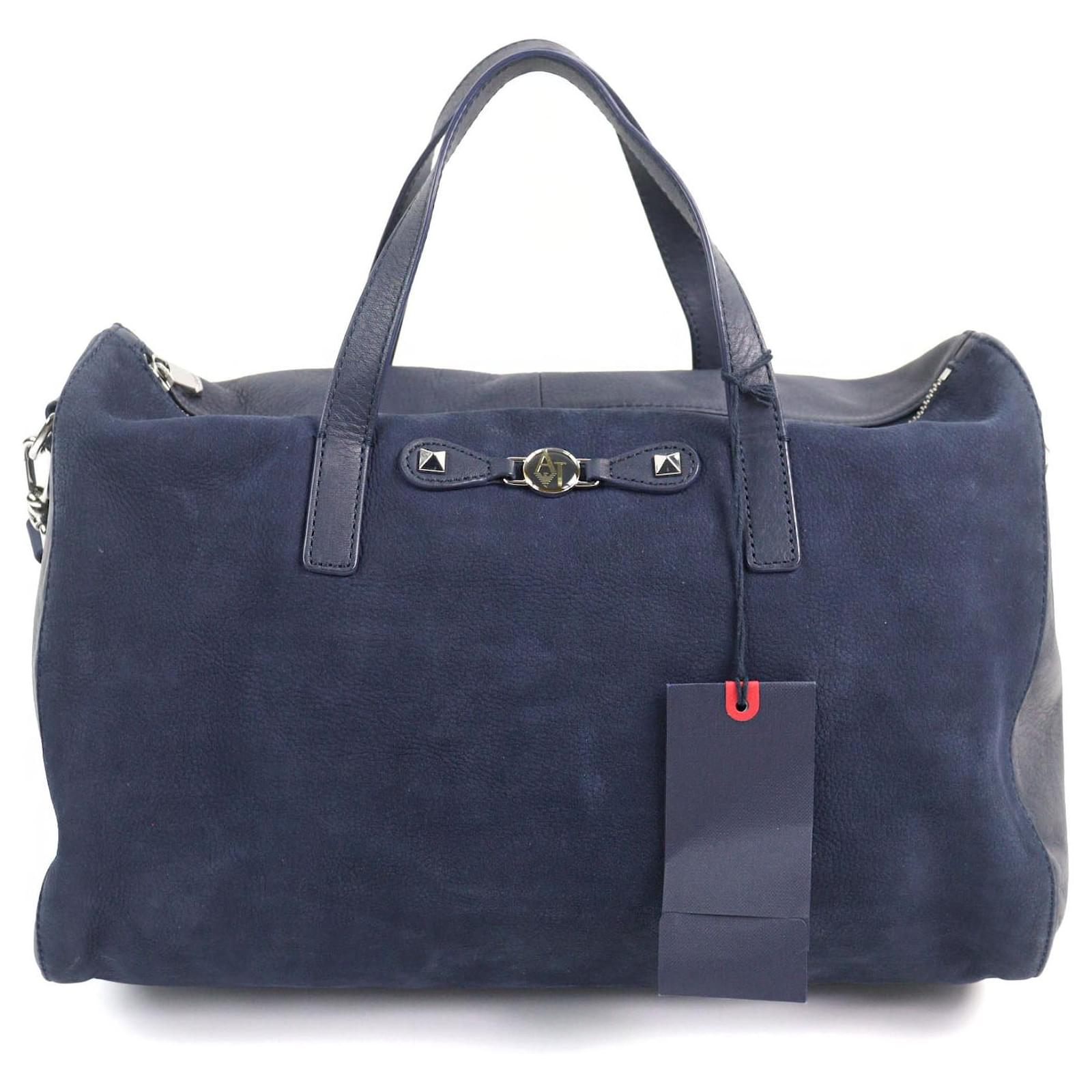 Armani Jeans Boston Bag Leather 2way Bag Blue