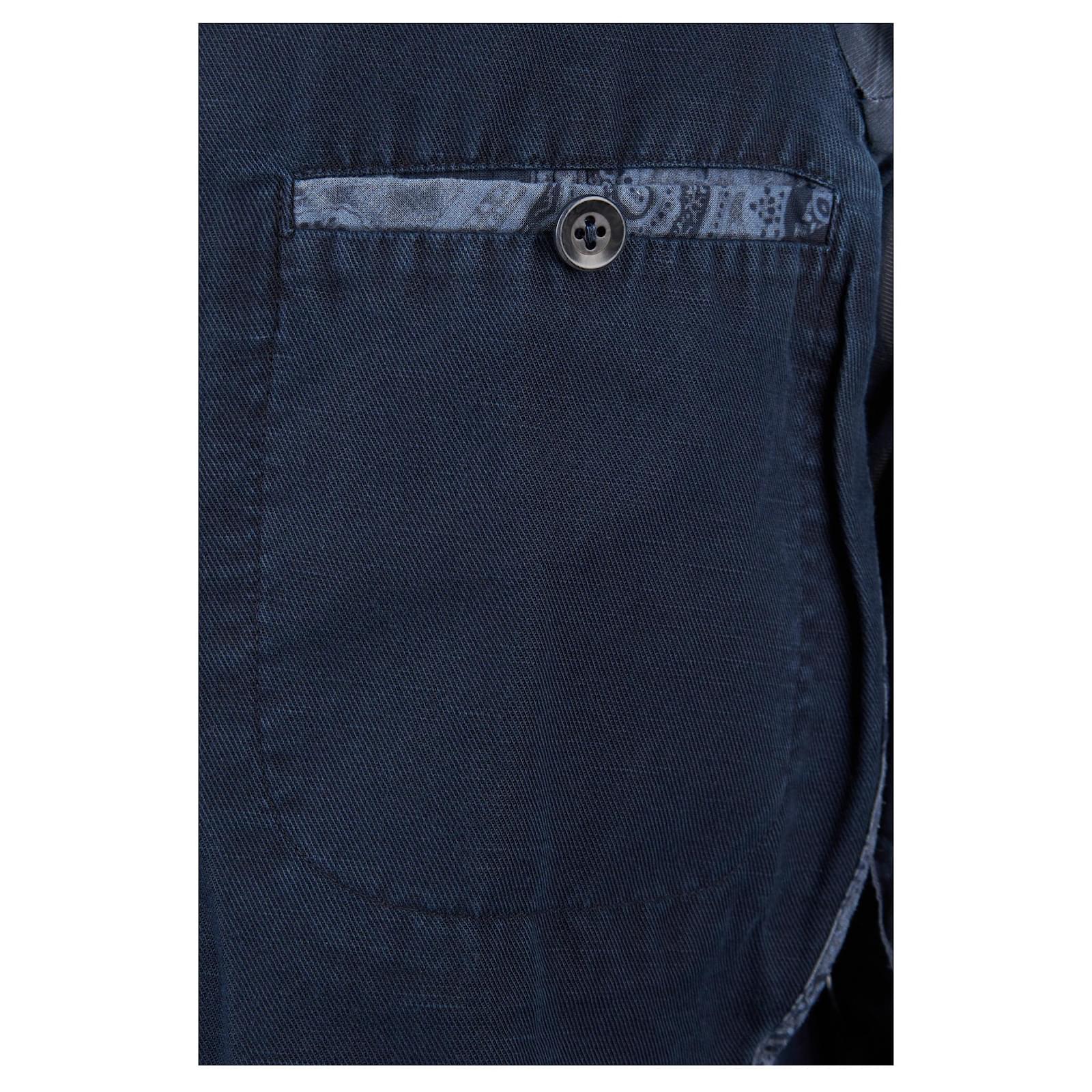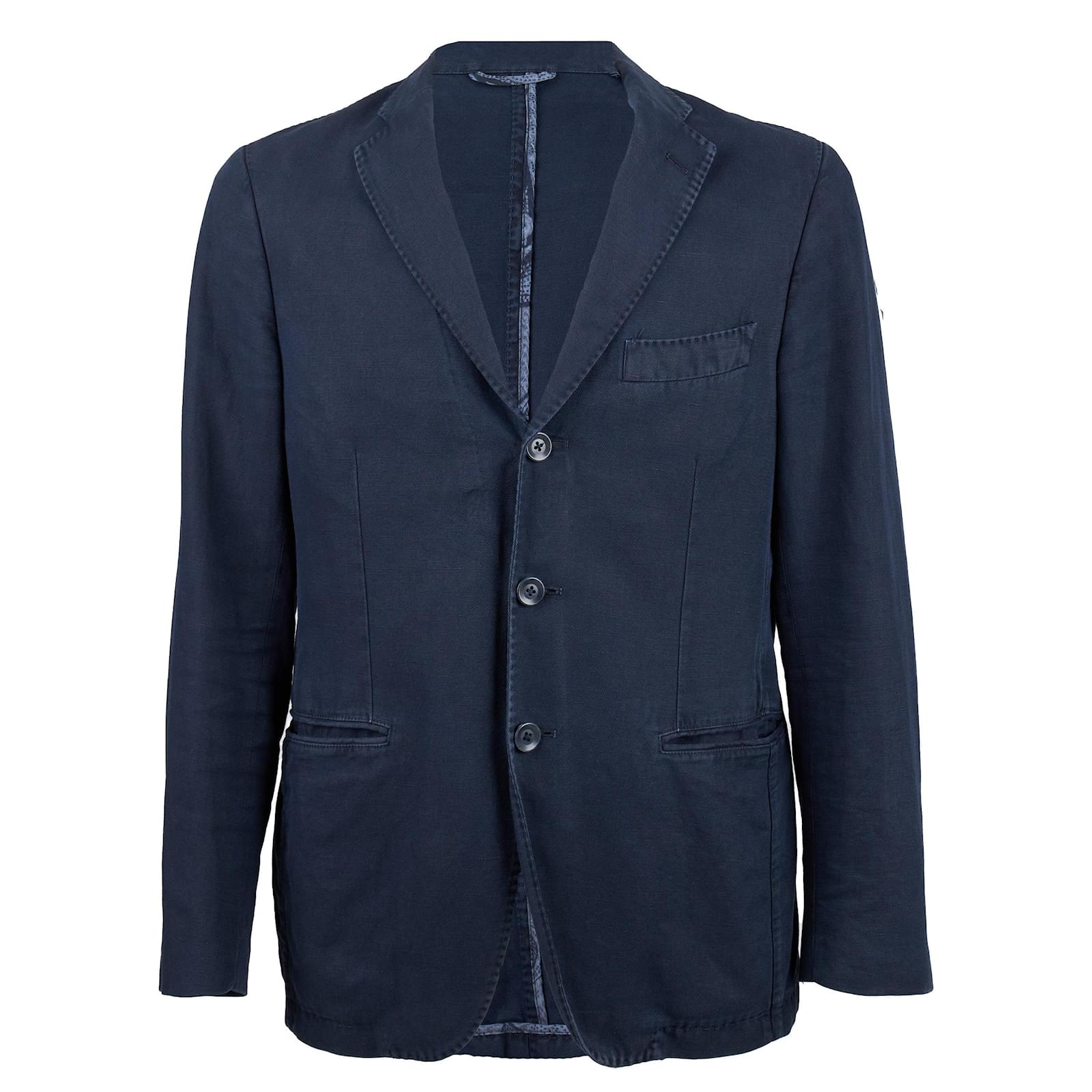 This Altea Cotton Blazer is created with a sophisticated blend of cotton and linen, making it comfortable. The dark blue shade features raw stitch detailing, lapel collar, and three front buttons to complete the classic look. The interior is detailed with paisley prints and has pockets for functionality.