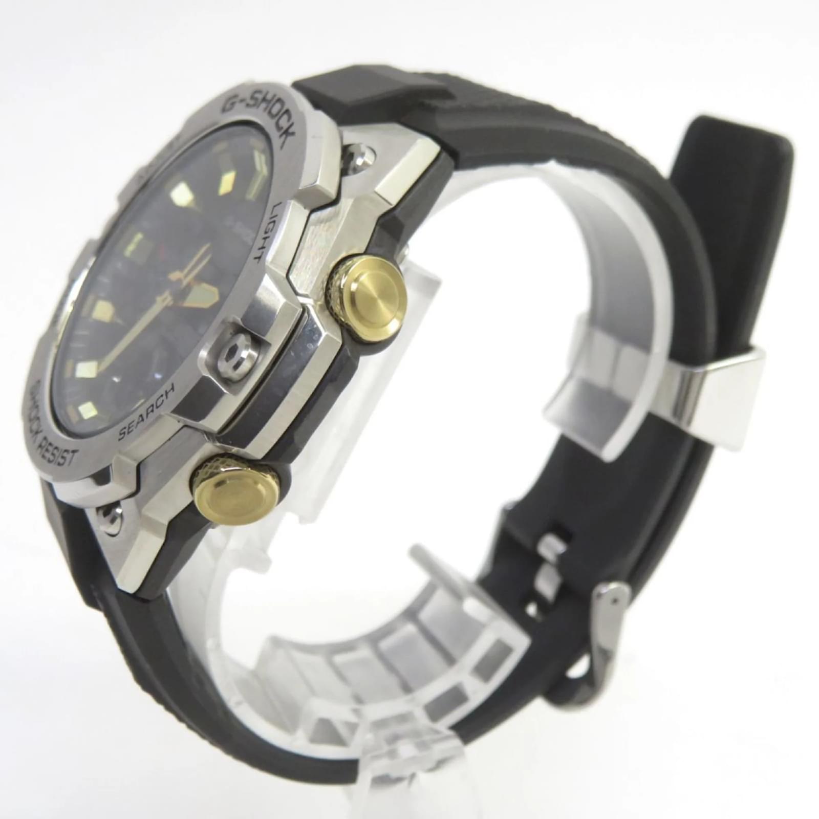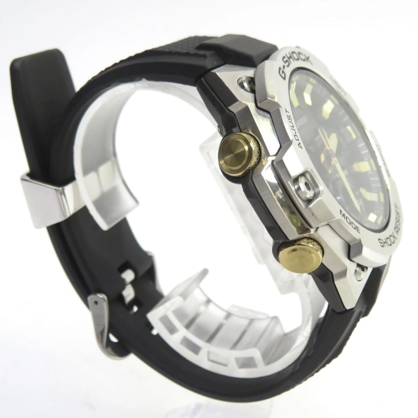 The Casio G-Shock G-Steel Bluetooth Mobile Link GST-B400CX-1AJR is a solar-powered wristwatch designed for durability and functionality. It features a case diameter of 46.6mm and a thickness of 12.9mm, suitable for wrist sizes ranging from 14.5cm to 21.5cm. This model is classified as used but remains in good condition, with some visible traces of usage, including slight scuffs on the band and minor scratches on the glass. The watch comes with its outer box, and potential buyers are encouraged to review the images for a detailed view of its condition.