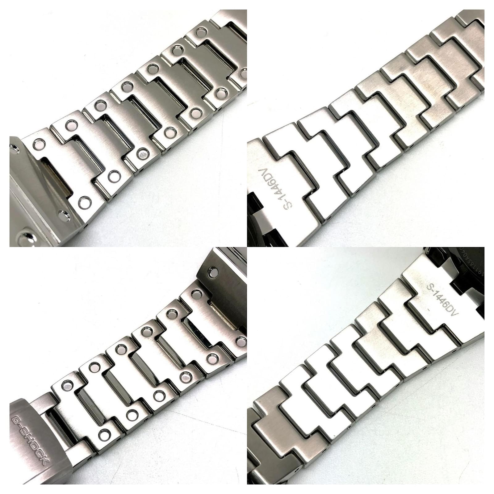 With a wrist size accommodating 19cm (7.48 inches), this watch is also water-resistant, making it suitable for various conditions. This used watch, classified as in good condition with minor signs of wear such as insignificant scratches on the bezel and bracelet, is part of the G-SHOCK line and was released in April 2018. Included with this watch are the original inner box, links, and manual. Prospective buyers are encouraged to review images for the precise condition of the item.