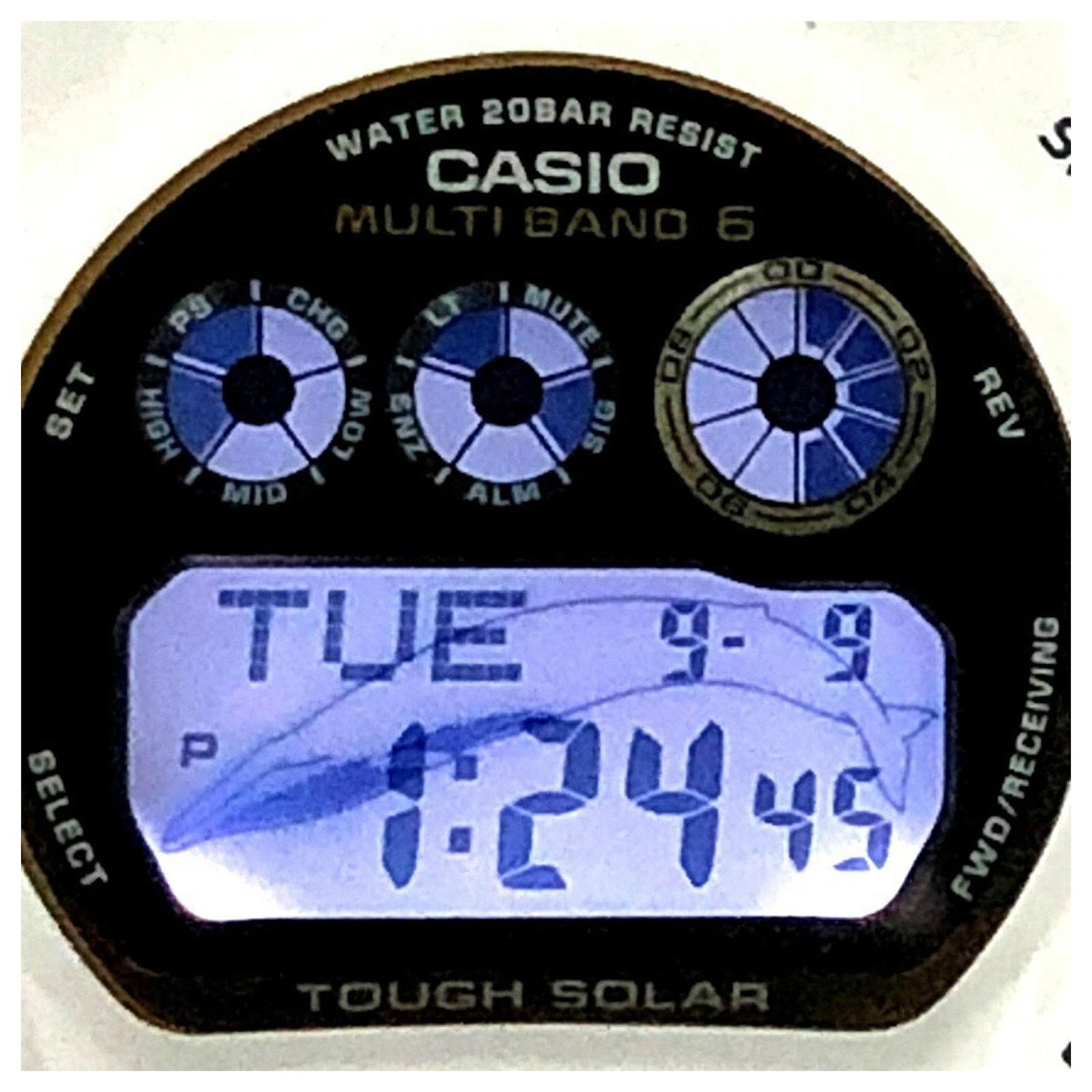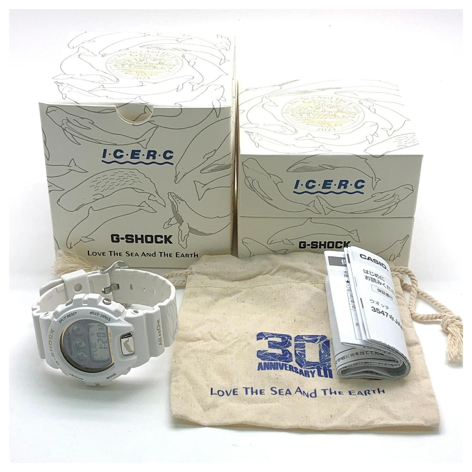 The Casio G-Shock GW-6904K-7 wristwatch is a collaboration model celebrating the 30th anniversary, inspired by the blue whale. Featuring a gold and white design, this radio-controlled solar watch comes equipped with a useful LED backlight and is part of the renowned 6900 series. Released in June 2024 at the Mikunigaoka Store, this model is classified as used but is in mint condition, with insignificant bezel and bracelet scratches. Included with the purchase are the inner and outer boxes, along with a manual. Potential buyers are encouraged to review the provided images for clarity on the item's condition.
