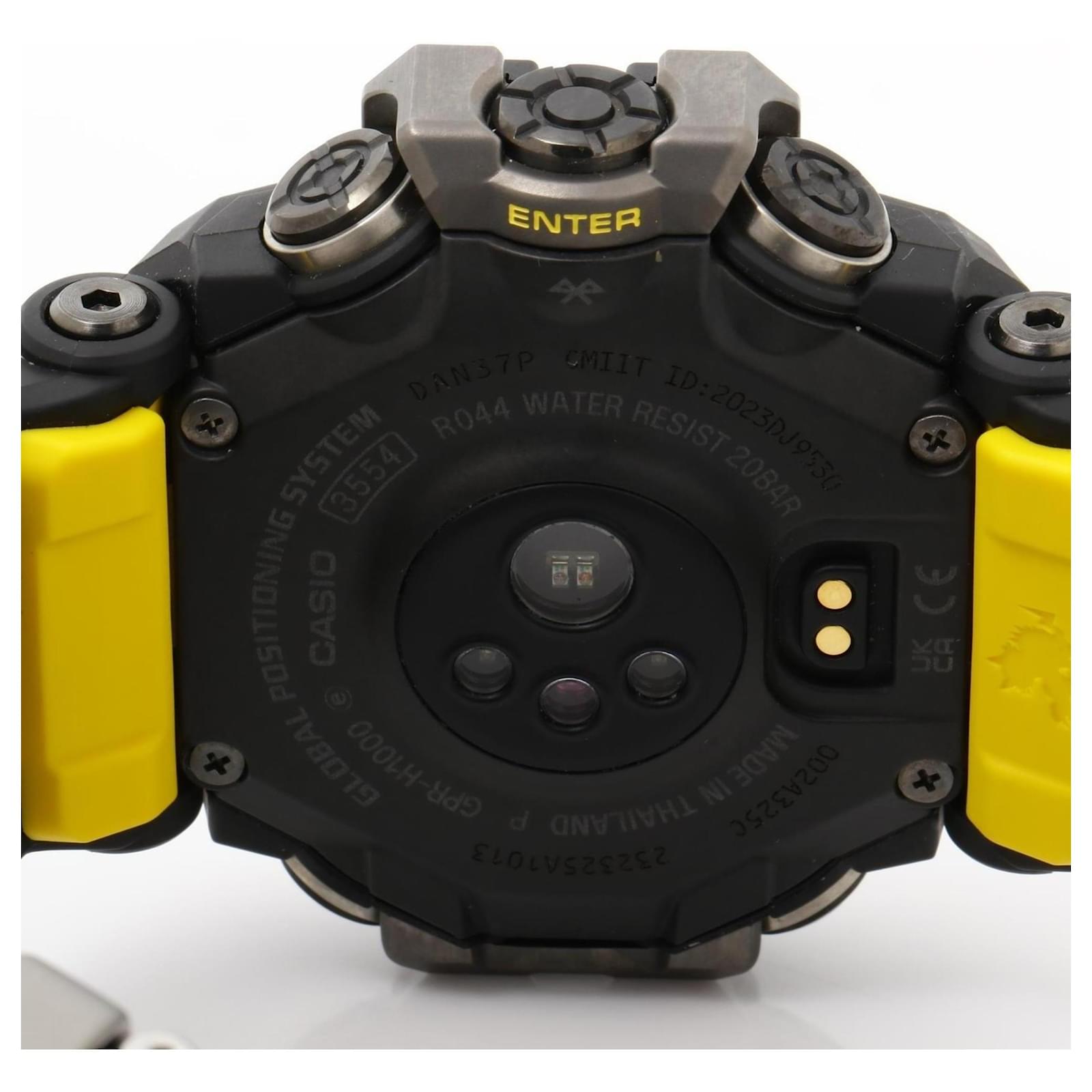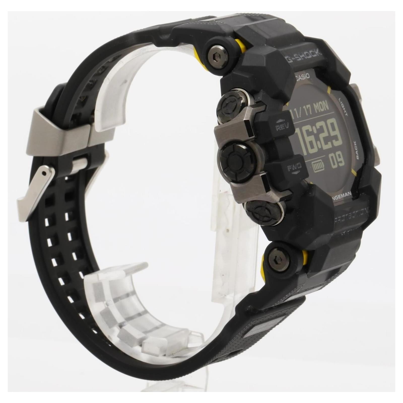The Casio G-SHOCK MASTER OF G LAND RANGEMAN GPRH10001JR is a digital wristwatch designed for durability and style. This model features a sleek black resin case and band, with a large case diameter of 60.6mm suitable for a wrist size of up to 22cm. The watch is powered by a quartz movement, ensuring reliable timekeeping.