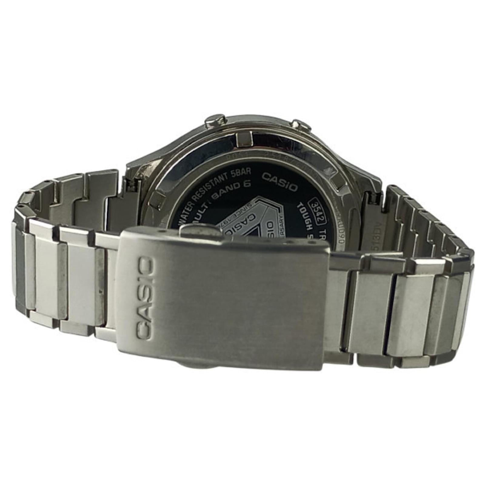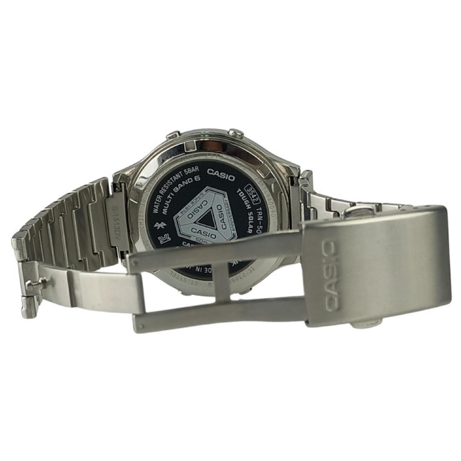 This watch is classified as used but remains in good condition with only slight scratches on the bezel and case, alongside insignificant wear on the glass and dial. No accessories are included with this item. The Casio TRN 50 2AJR is a product of Japan, with the model number MPN TRN 50 2AJR. Before purchasing, prospective buyers are encouraged to refer to the images for a clear view of the item’s condition.