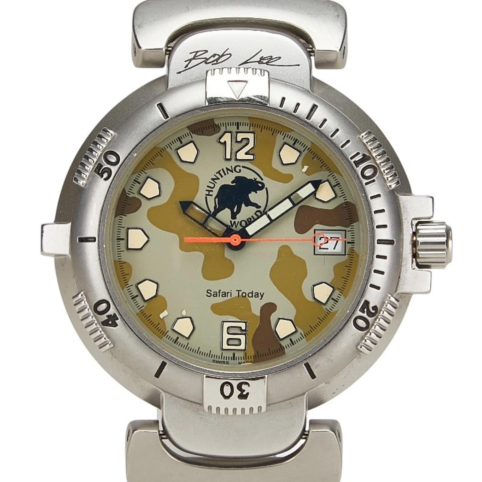 The Hunting World Safari Today Automatic Watch features a gray dial and a stainless steel case, designed for men. This wristwatch operates on a self-winding automatic movement and has a case diameter of 47.3mm, suitable for a wrist size of 16cm (6.29 inches).
