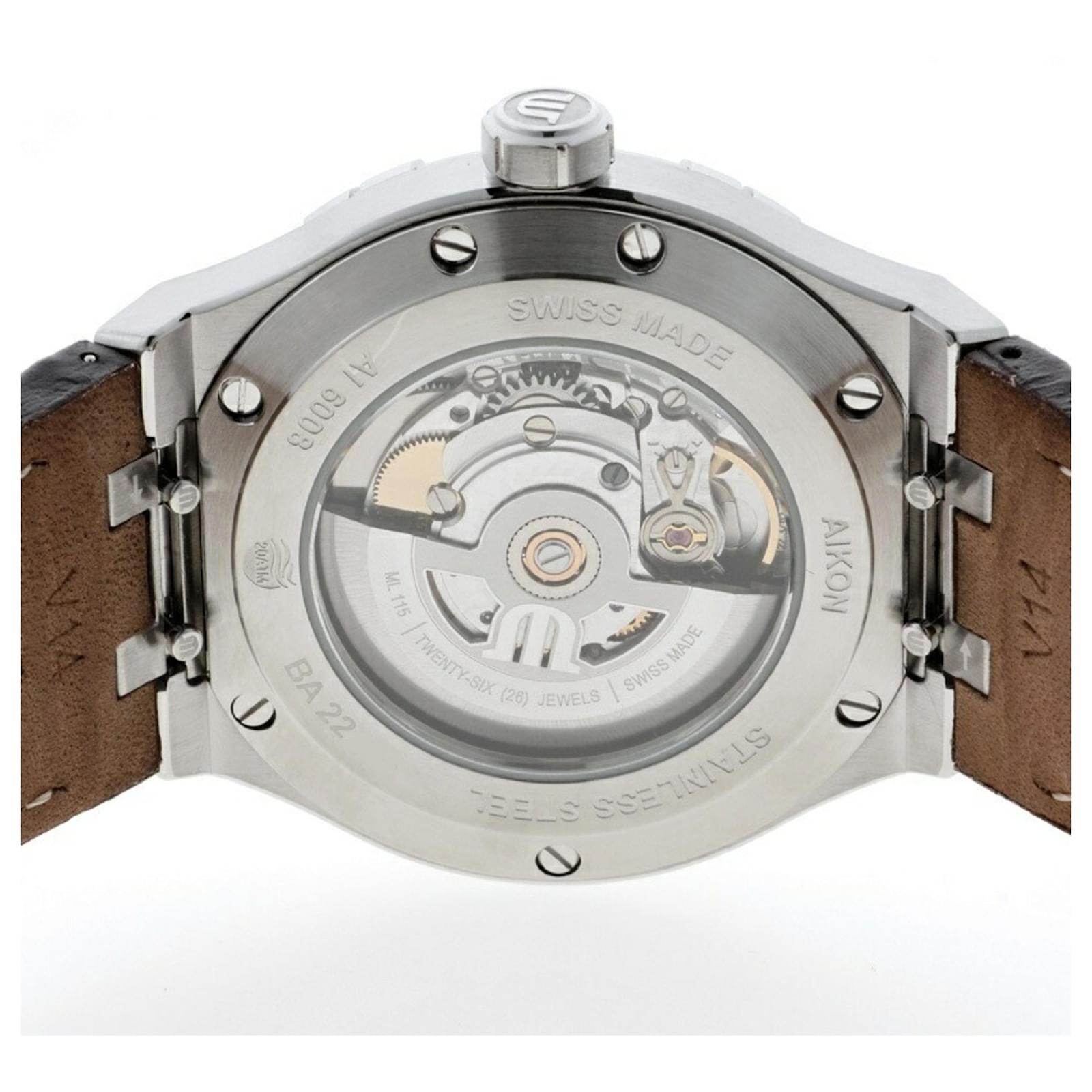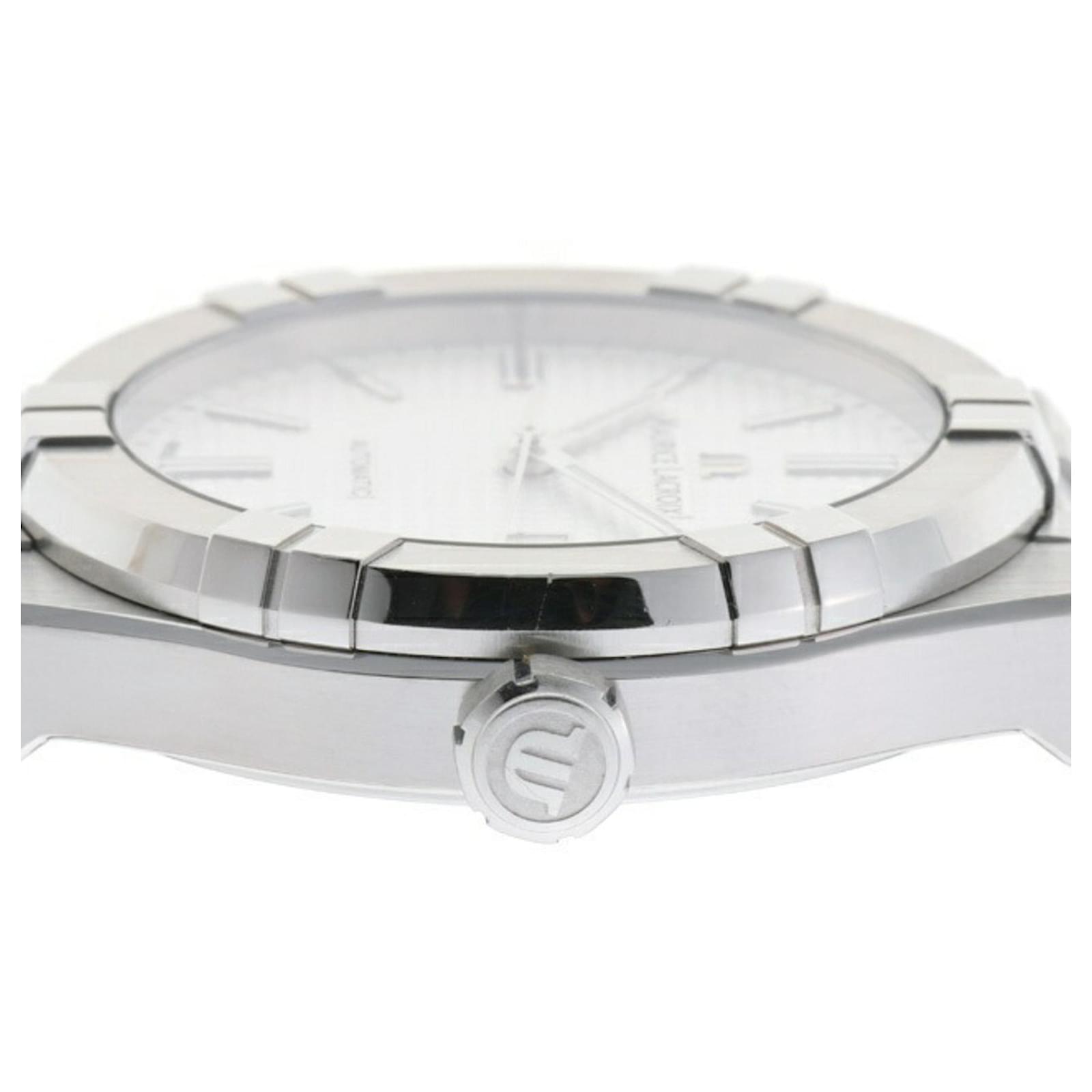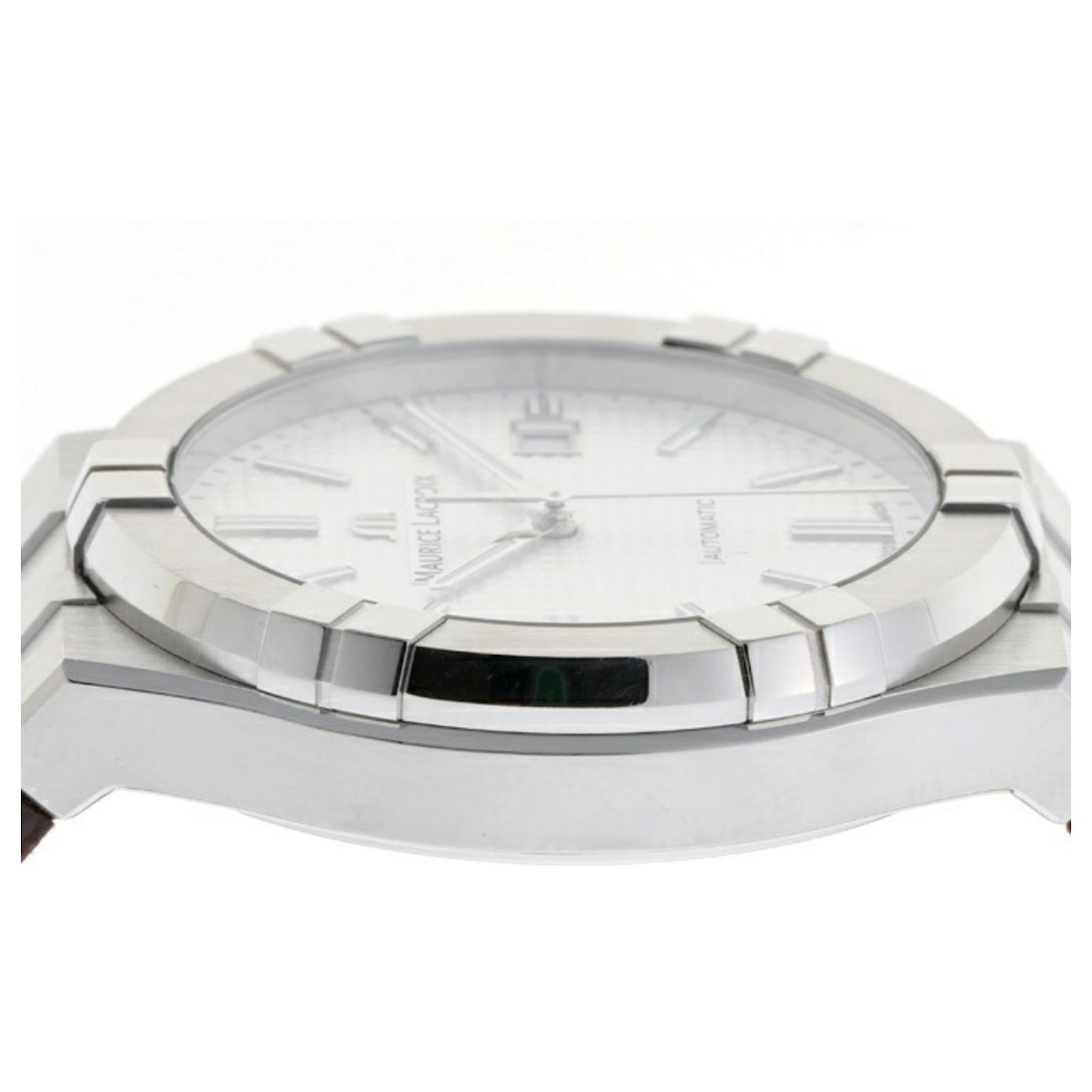 The Maurice Lacroix Icon Automatic Date AI6008-SS001-130-1 is a stylish wristwatch featuring a white dial housed in a stainless steel case. The timepiece is complemented by a combination leather and stainless steel band, fitting wrist sizes from 15.5cm to 20.5cm (6.1" to 8.07"). With a case diameter of 42mm (1.65"), this automatic self-winding watch blends functionality and elegance.