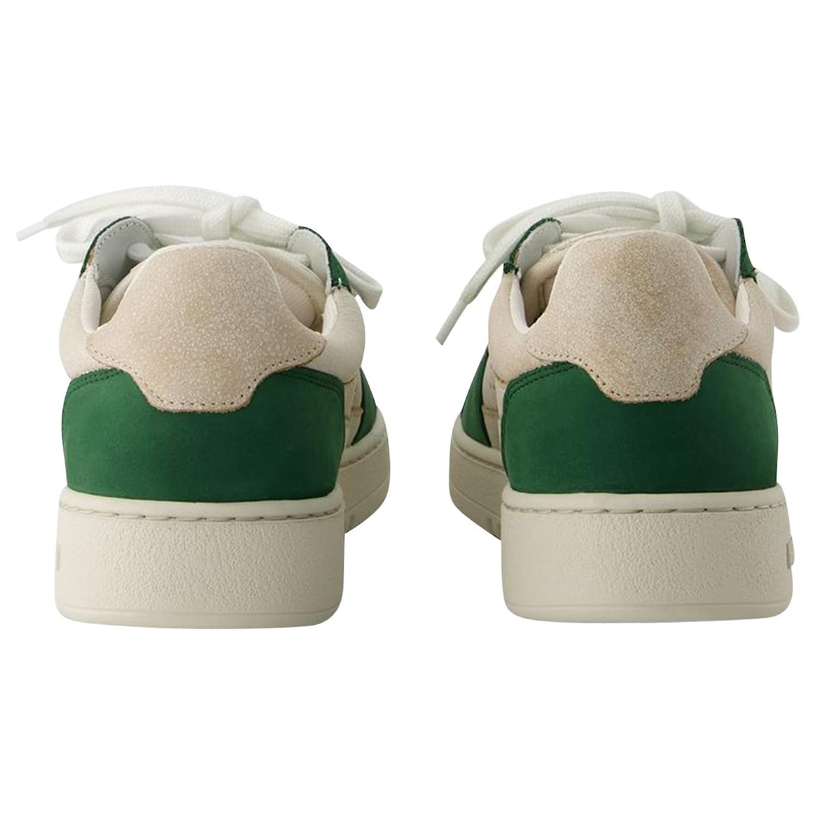 Colours: WHITE - White/Kale Green. Main material: smooth calfskin. Sole: rubber. Fit: true to size - Sizing: French. Closure: top laces. Toe shape: round. Fit: True to size - Sizing: European.
