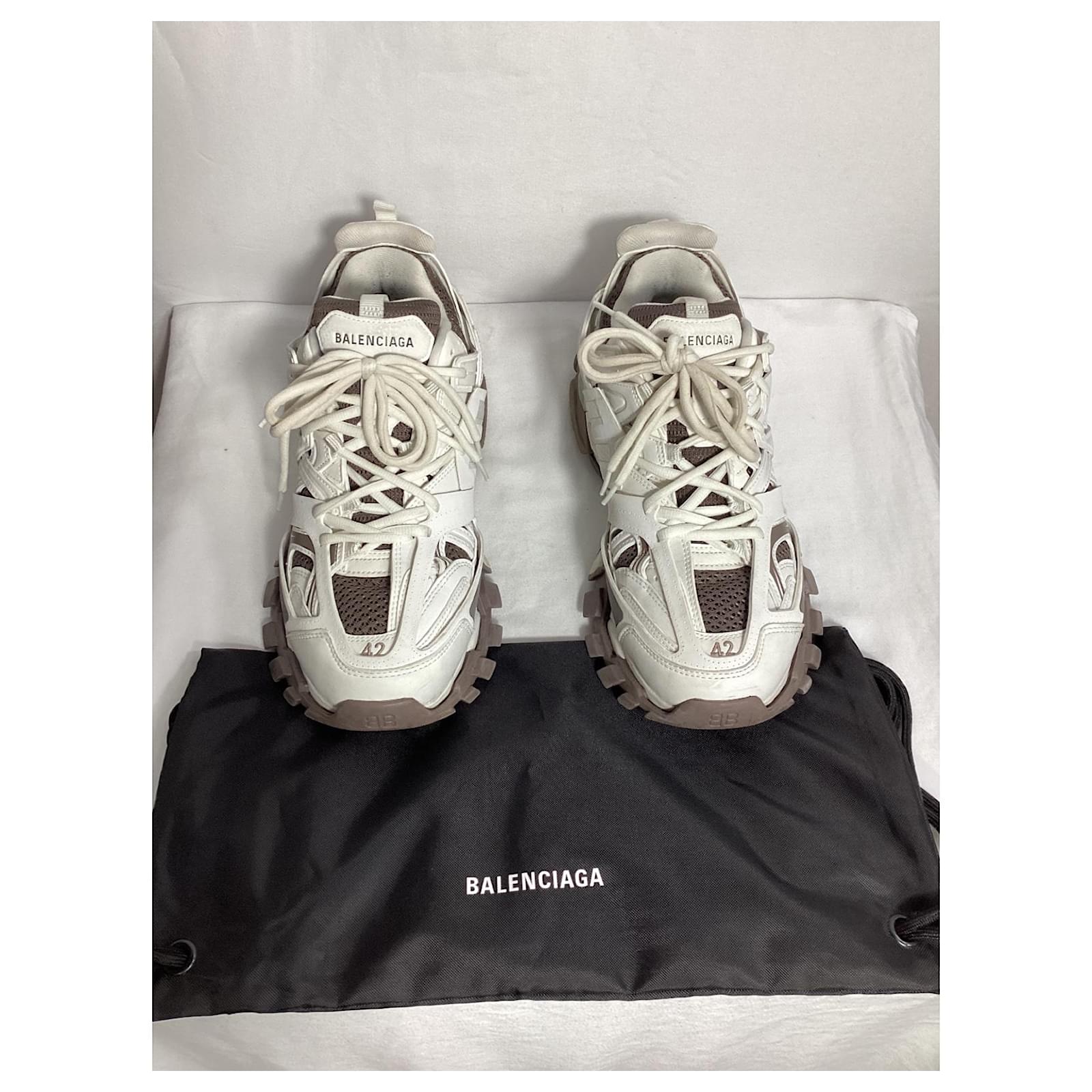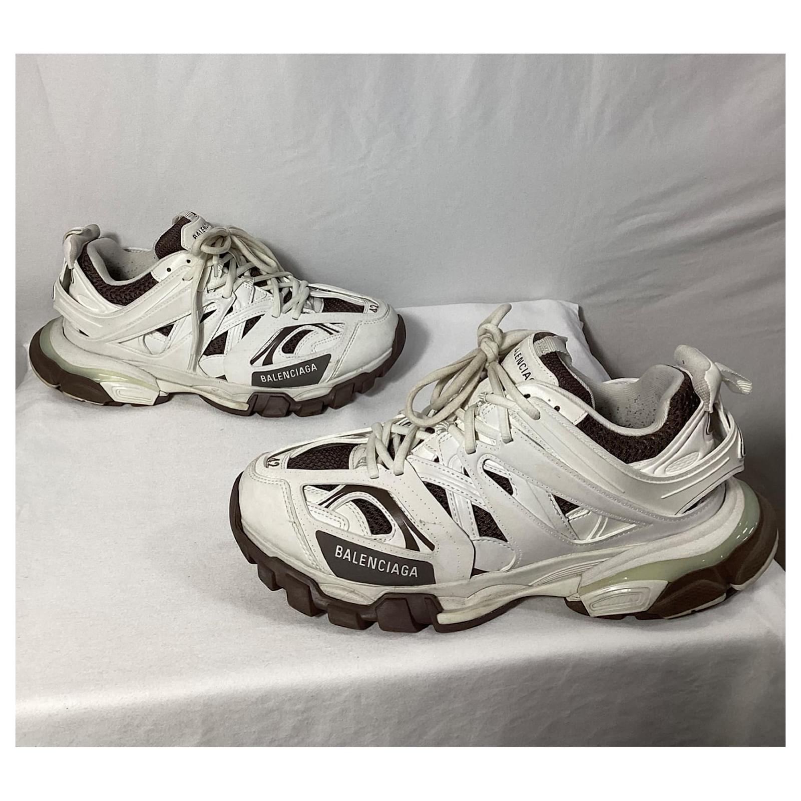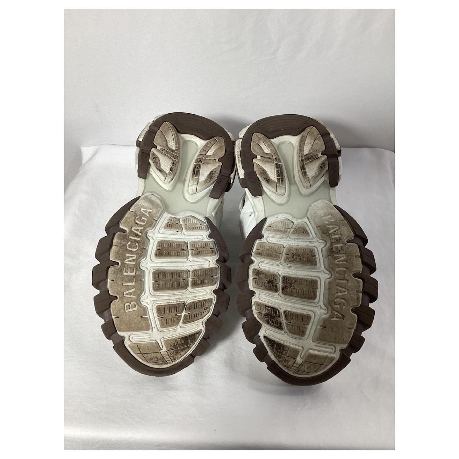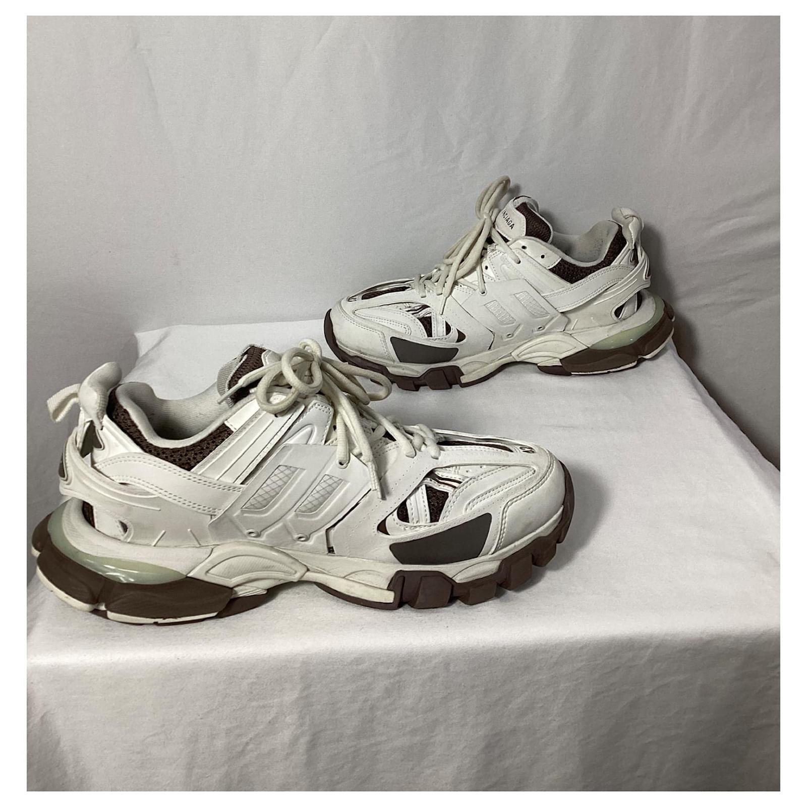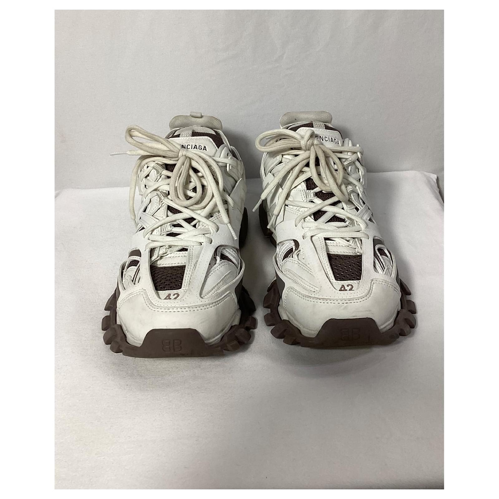 The men's Balenciaga Track Sneakers in White Polyurethane redefine high-fashion footwear with their bold, multi-layered design. Crafted from a combination of polyurethane, mesh, and rubber, these sneakers feature overlapping panels and a chunky sole that draws inspiration from vintage hiking and running shoes. The white colorway offers versatility, making them suitable for various occasions. The exaggerated tread and lace-up closure ensure both functionality and a distinctive aesthetic. Styling Tip: Pair these sneakers with tapered joggers and a minimalist hoodie for a contemporary streetwear look. Alternatively, combine them with slim-fit jeans and a bomber jacket to achieve an effortlessly cool ensemble.