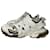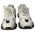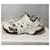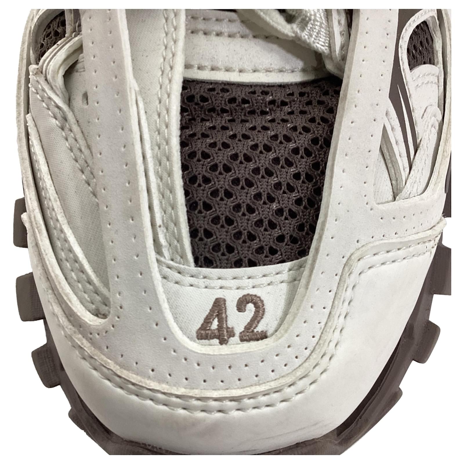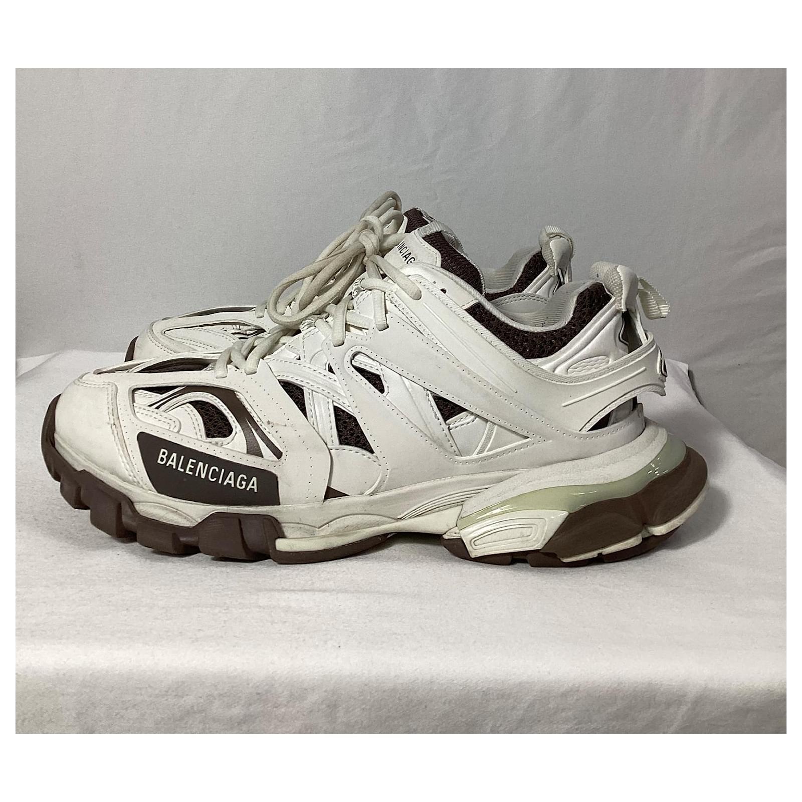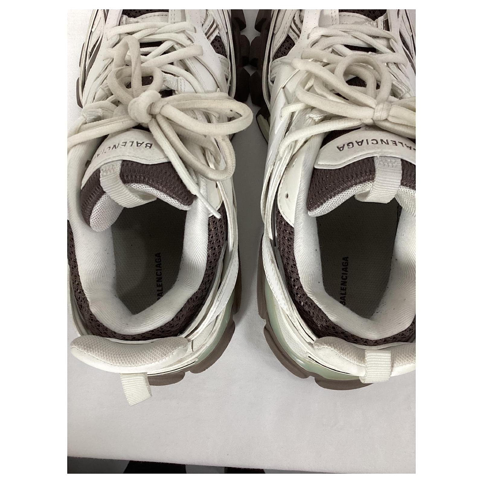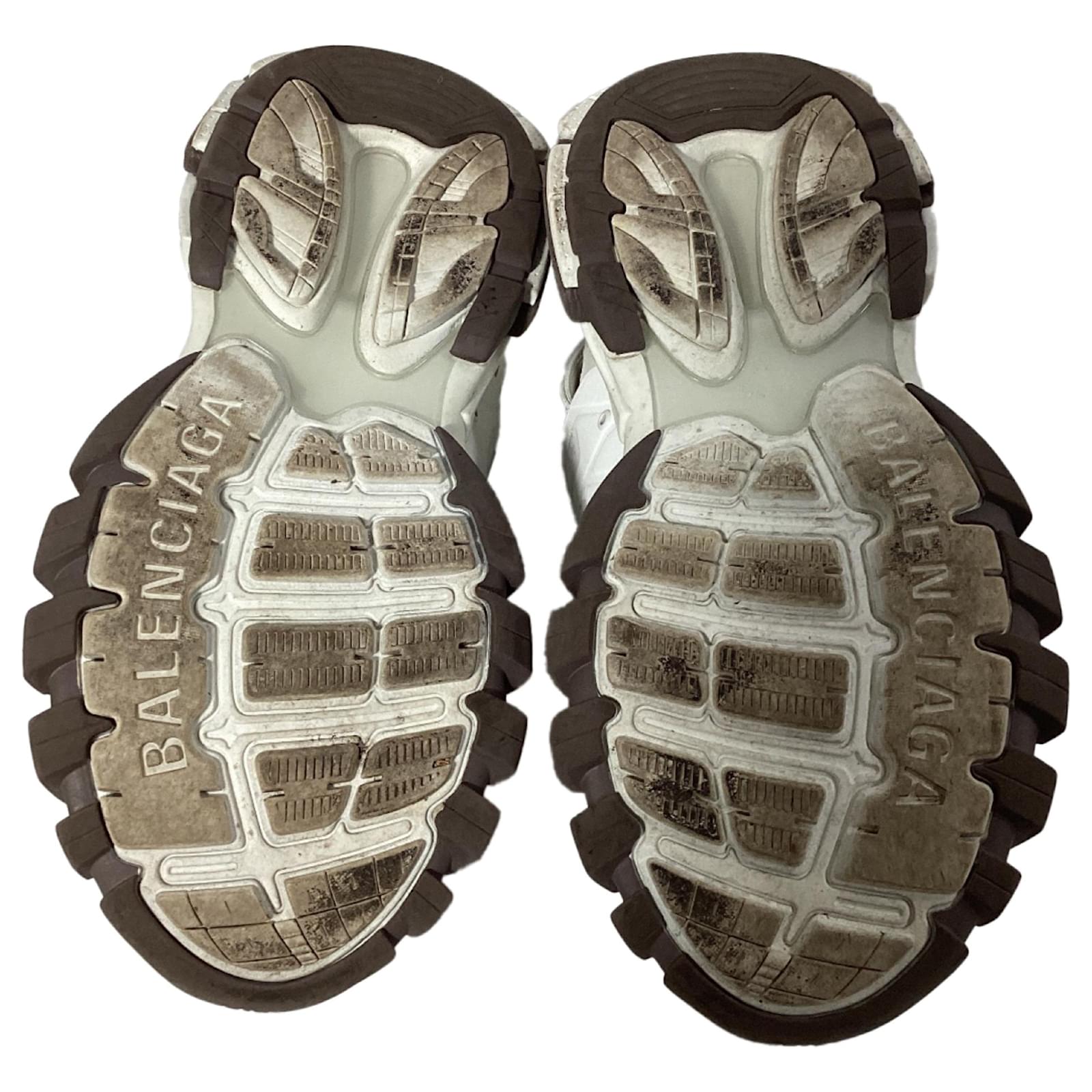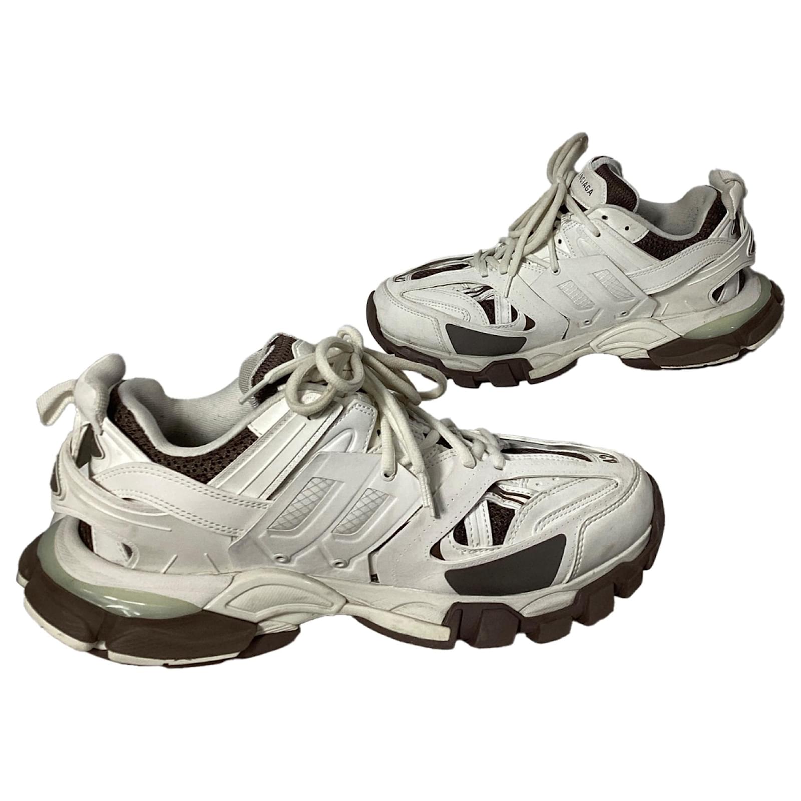 The men's Balenciaga Track Sneakers in White Polyurethane redefine high-fashion footwear with their bold, multi-layered design. Crafted from a combination of polyurethane, mesh, and rubber, these sneakers feature overlapping panels and a chunky sole that draws inspiration from vintage hiking and running shoes. The white colorway offers versatility, making them suitable for various occasions. The exaggerated tread and lace-up closure ensure both functionality and a distinctive aesthetic. Styling Tip: Pair these sneakers with tapered joggers and a minimalist hoodie for a contemporary streetwear look. Alternatively, combine them with slim-fit jeans and a bomber jacket to achieve an effortlessly cool ensemble.