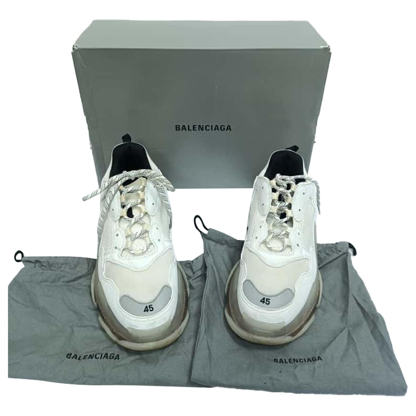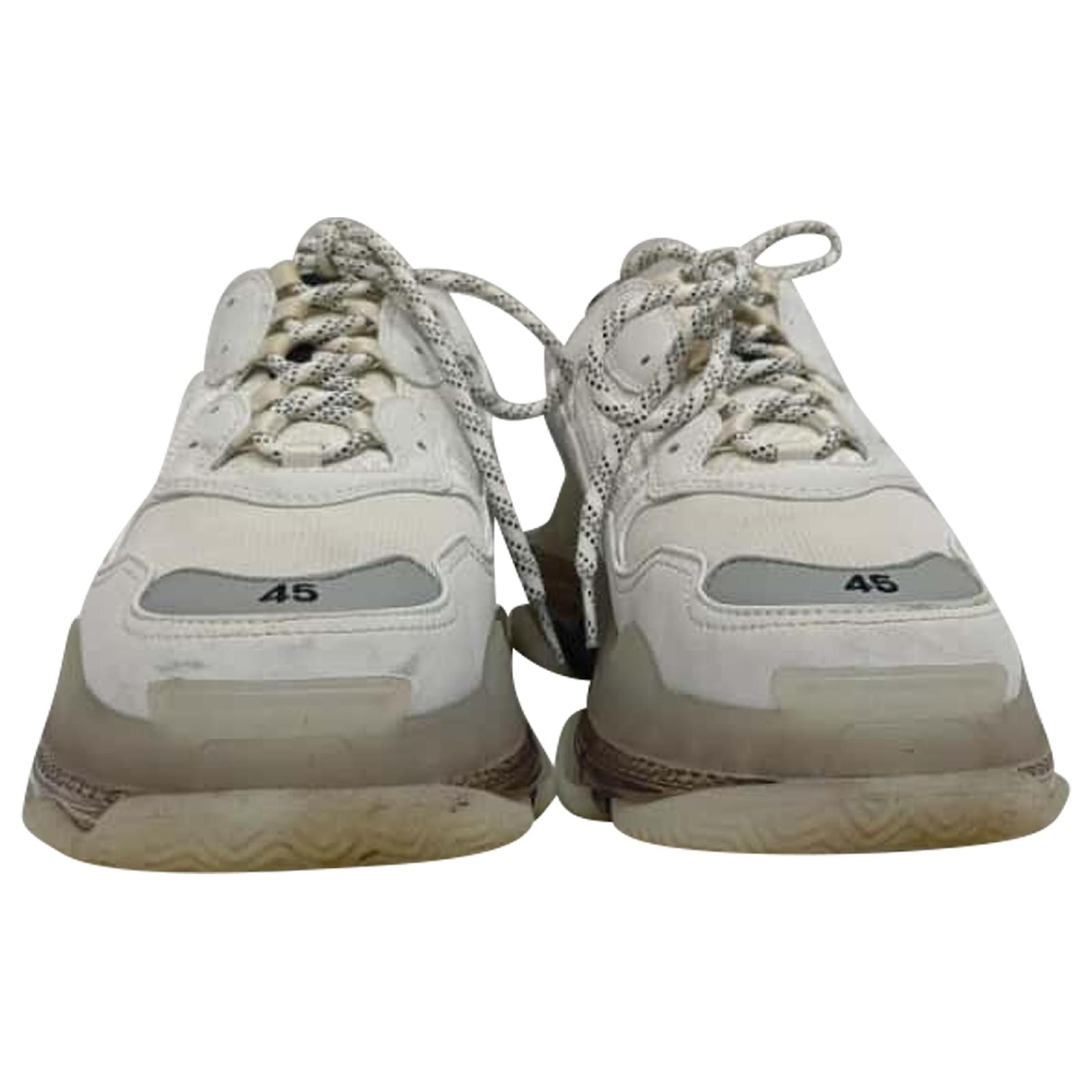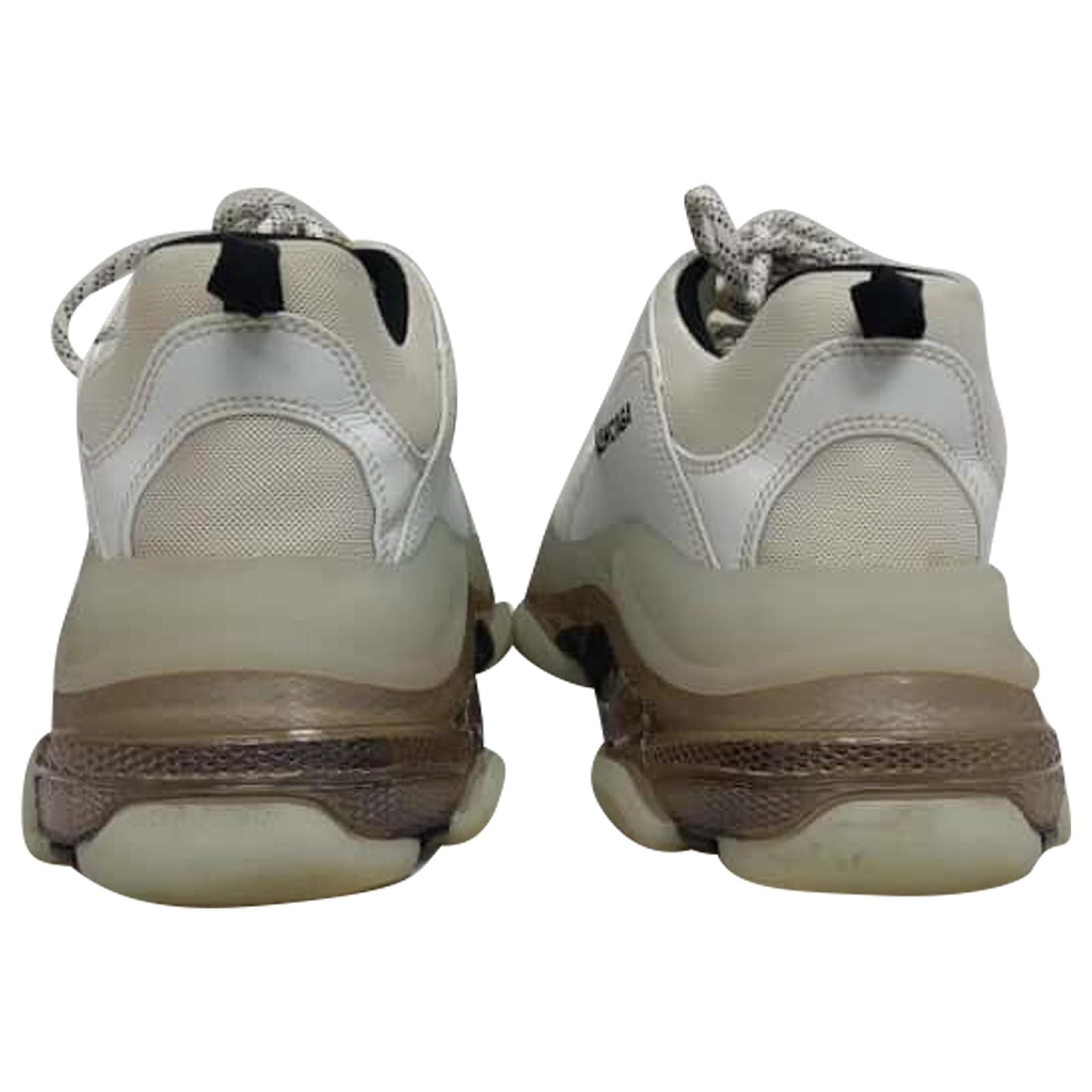 Balenciaga Triple S Clear Sole Sneakers in White Polyester Cream