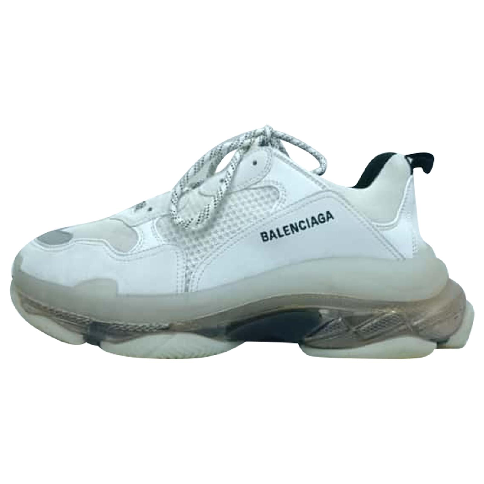 Balenciaga Triple S Clear Sole Sneakers in White Polyester