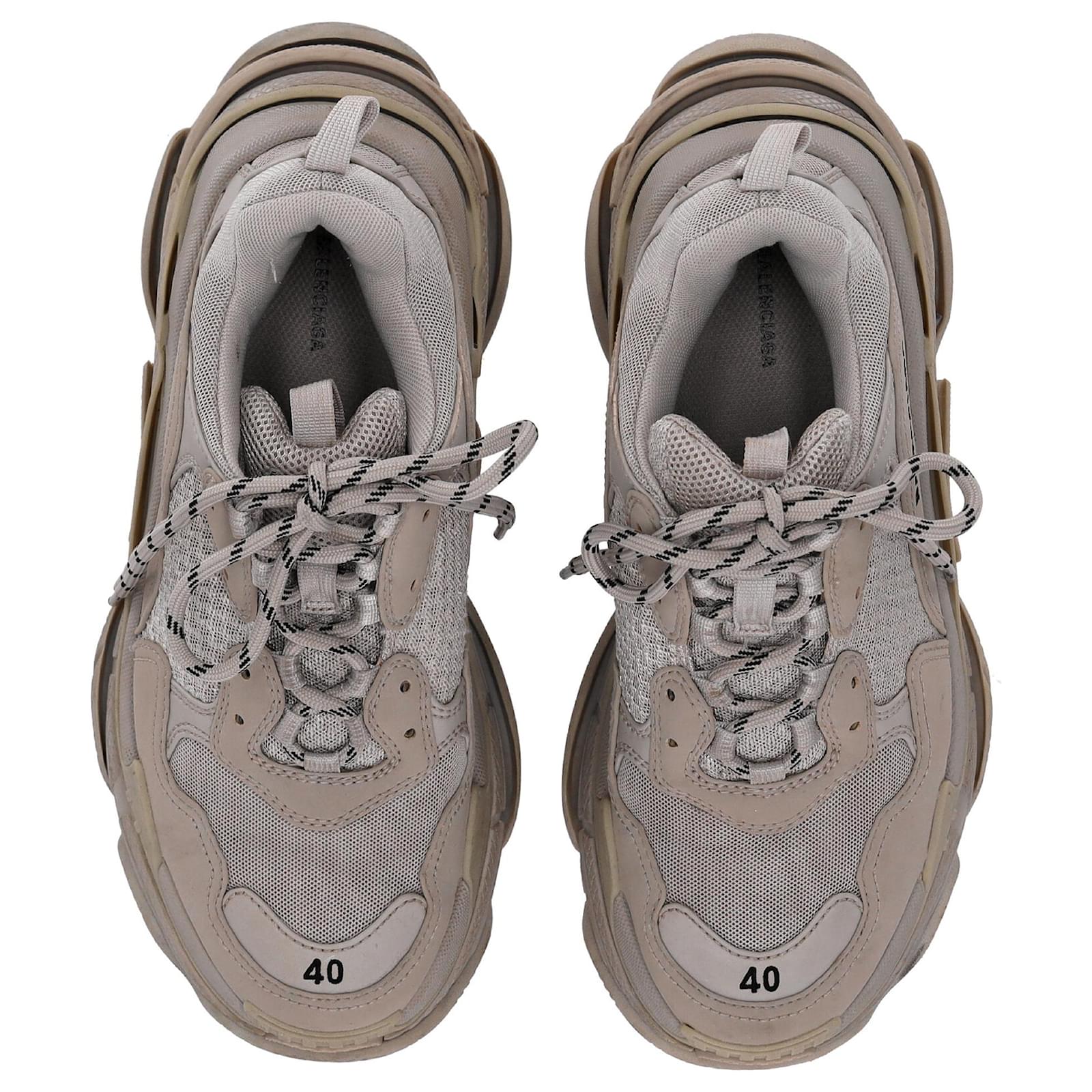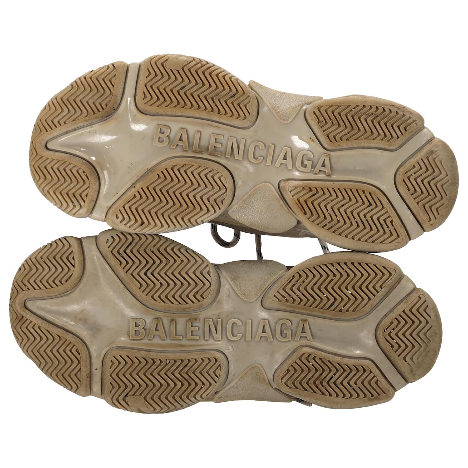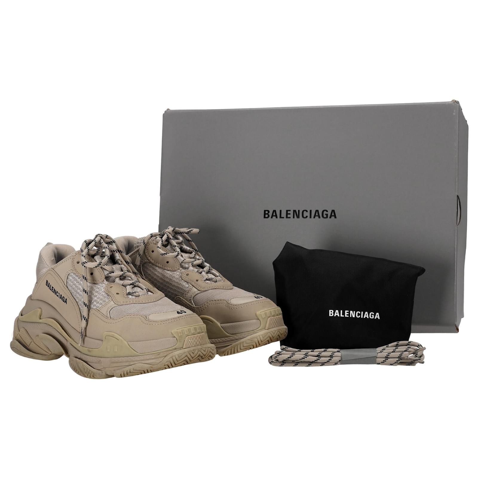 Step up your streetwear game with the iconic Balenciaga Triple S Sneakers in beige polyester—where oversized design meets luxury craftsmanship. These chunky sneakers combine retro athletic vibes with high-fashion appeal, making them the ultimate statement piece. **Style tip:** Pair them with tapered cargo pants and a relaxed hoodie for a bold, fashion-forward look that balances edge and ease.