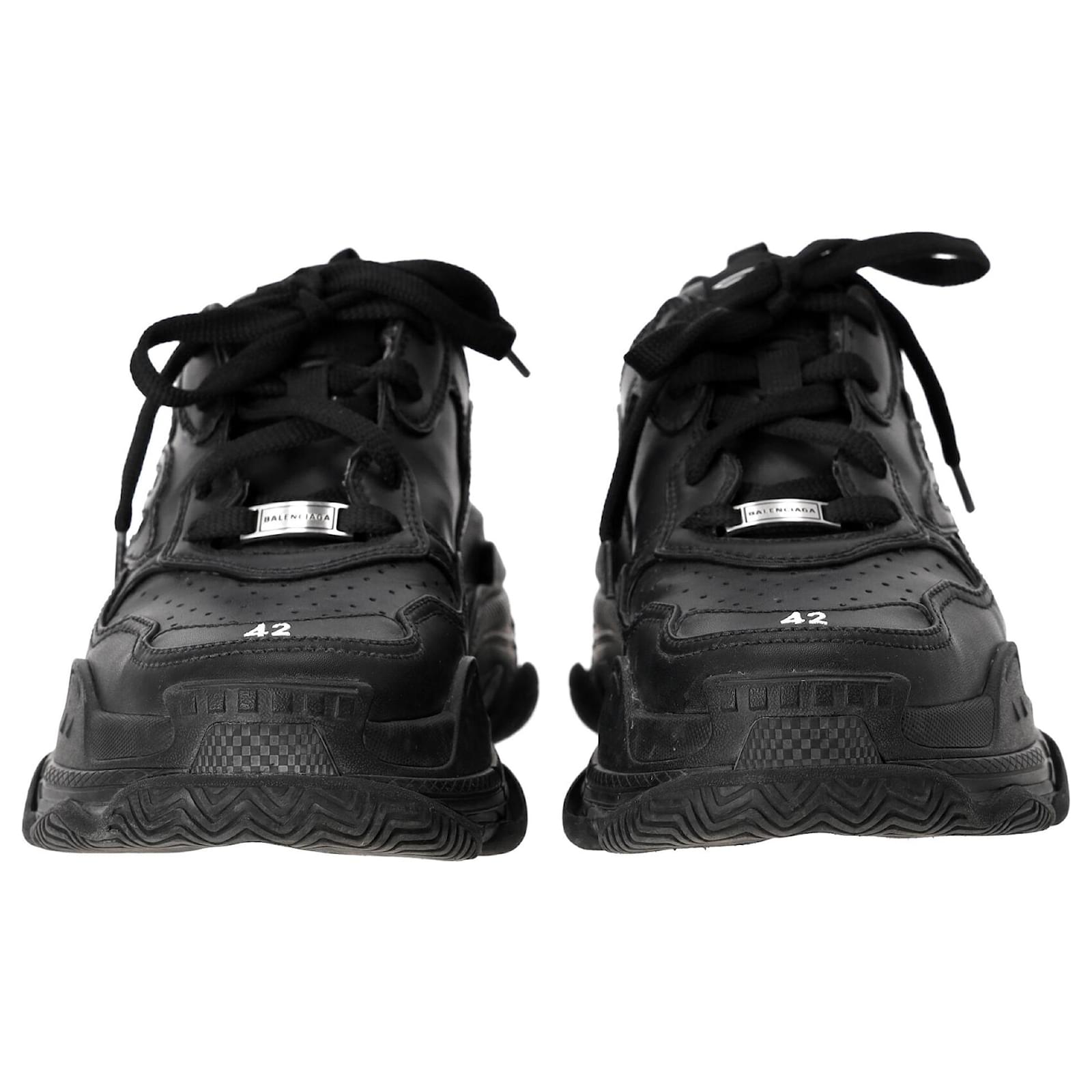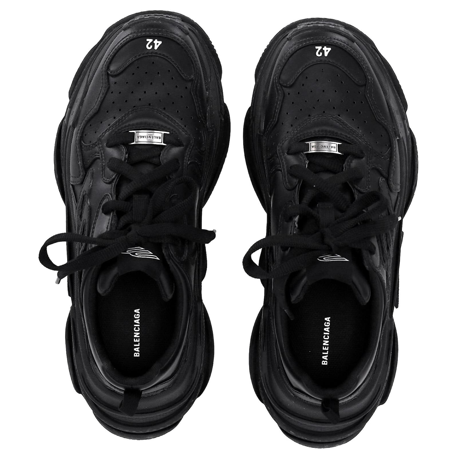 Balenciaga Triple S Sporty Sneakers in Black Polyurethane
