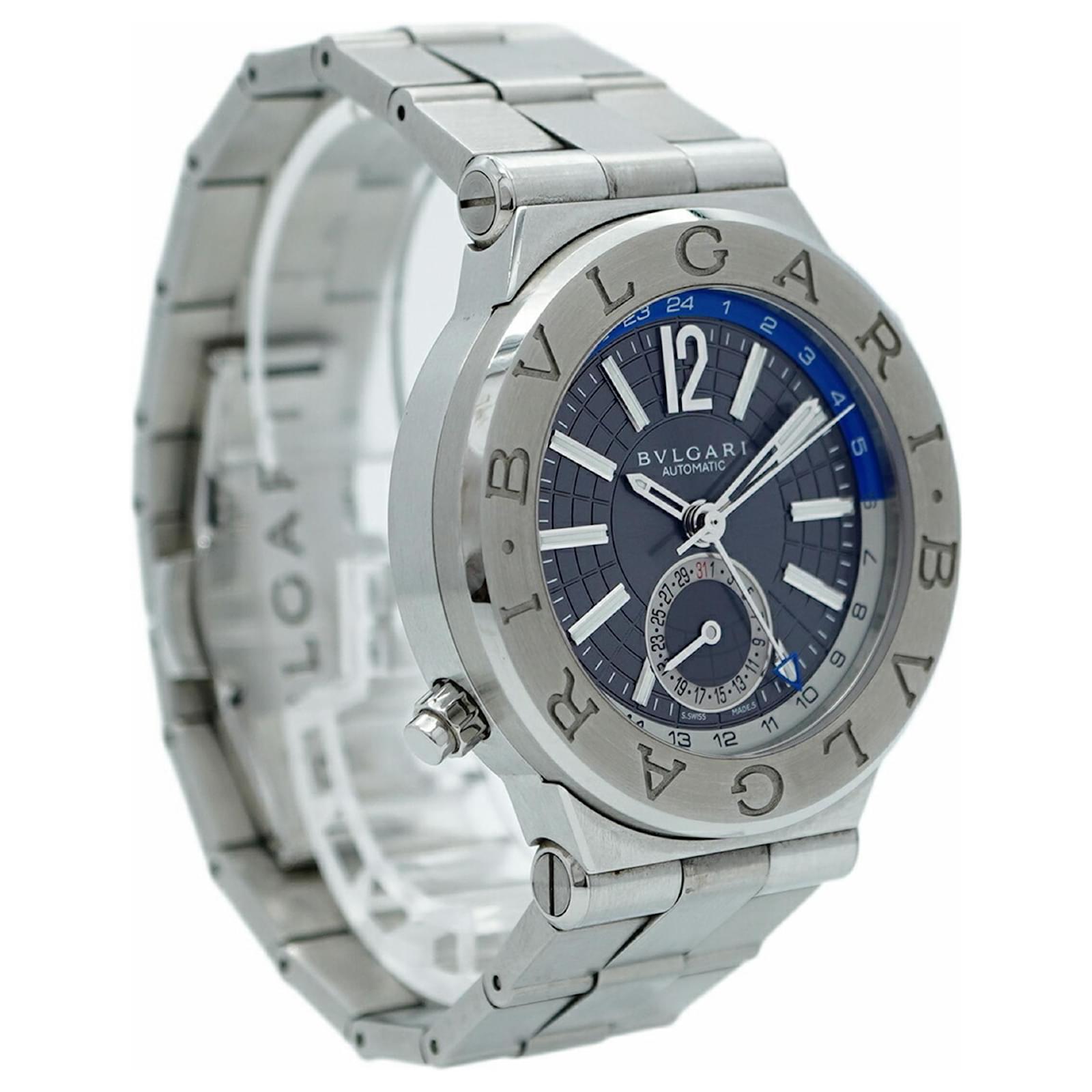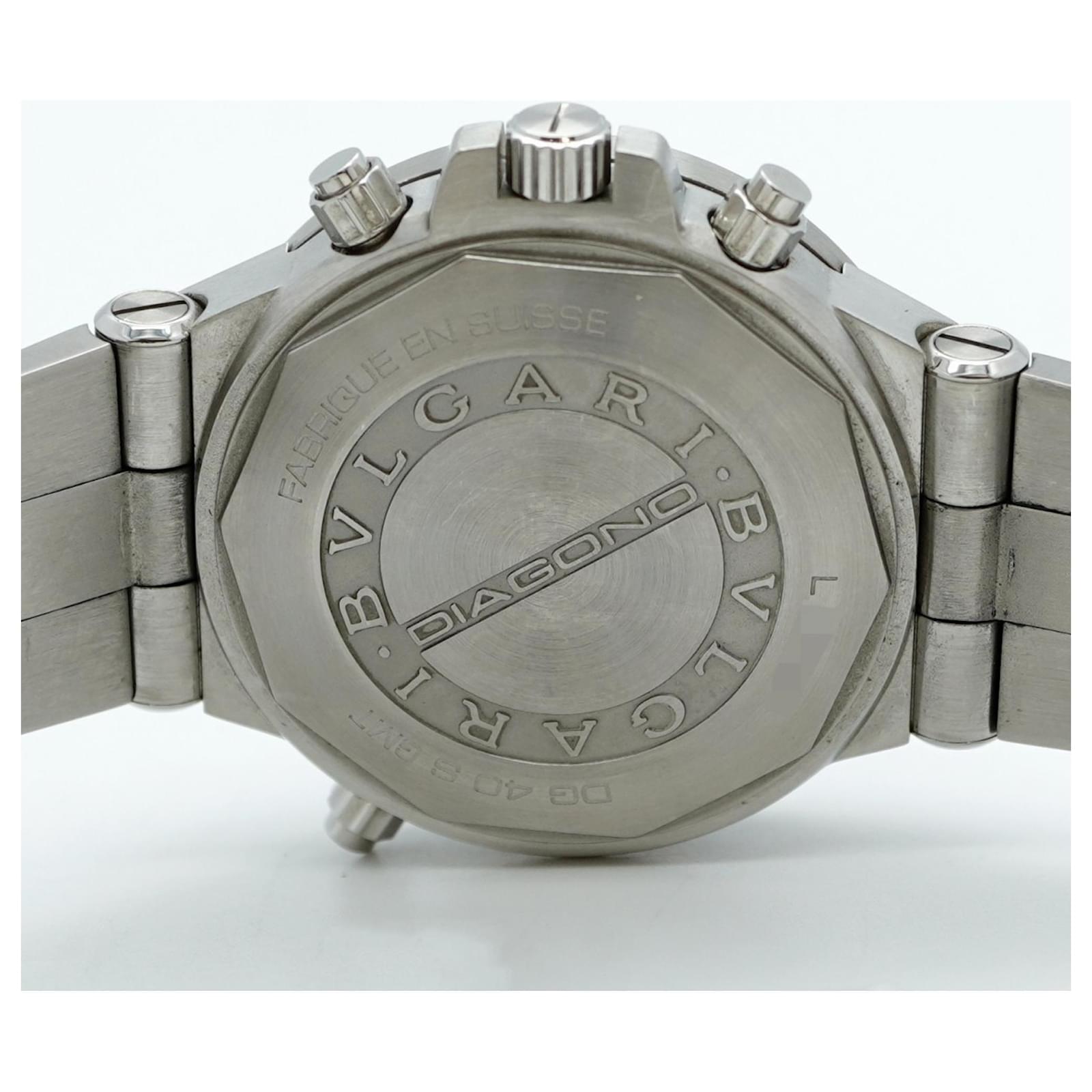 The Bvlgari Diagono DG40S is a sophisticated wristwatch featuring a gray dial and an automatic self-winding movement. Crafted with a stainless steel band, this model fits a wrist size of 16.5cm, and the case measures 40mm in diameter.