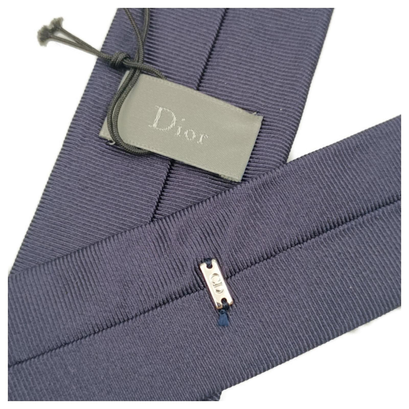 This Christian Dior skinny tie, model PUS1010100-540U, features a rich blue marine color and is crafted from 100% silk. With a width of 6 cm (2.36 inches), it offers a sleek and stylish look suitable for various occasions. The tie is in opened condition, having never been used, and is classified as a display item with insignificant overall creases, wear, scratches, and dirt. It is made in Italy and does not include any accessories. For a complete understanding of its condition, potential buyers are encouraged to review the provided images.