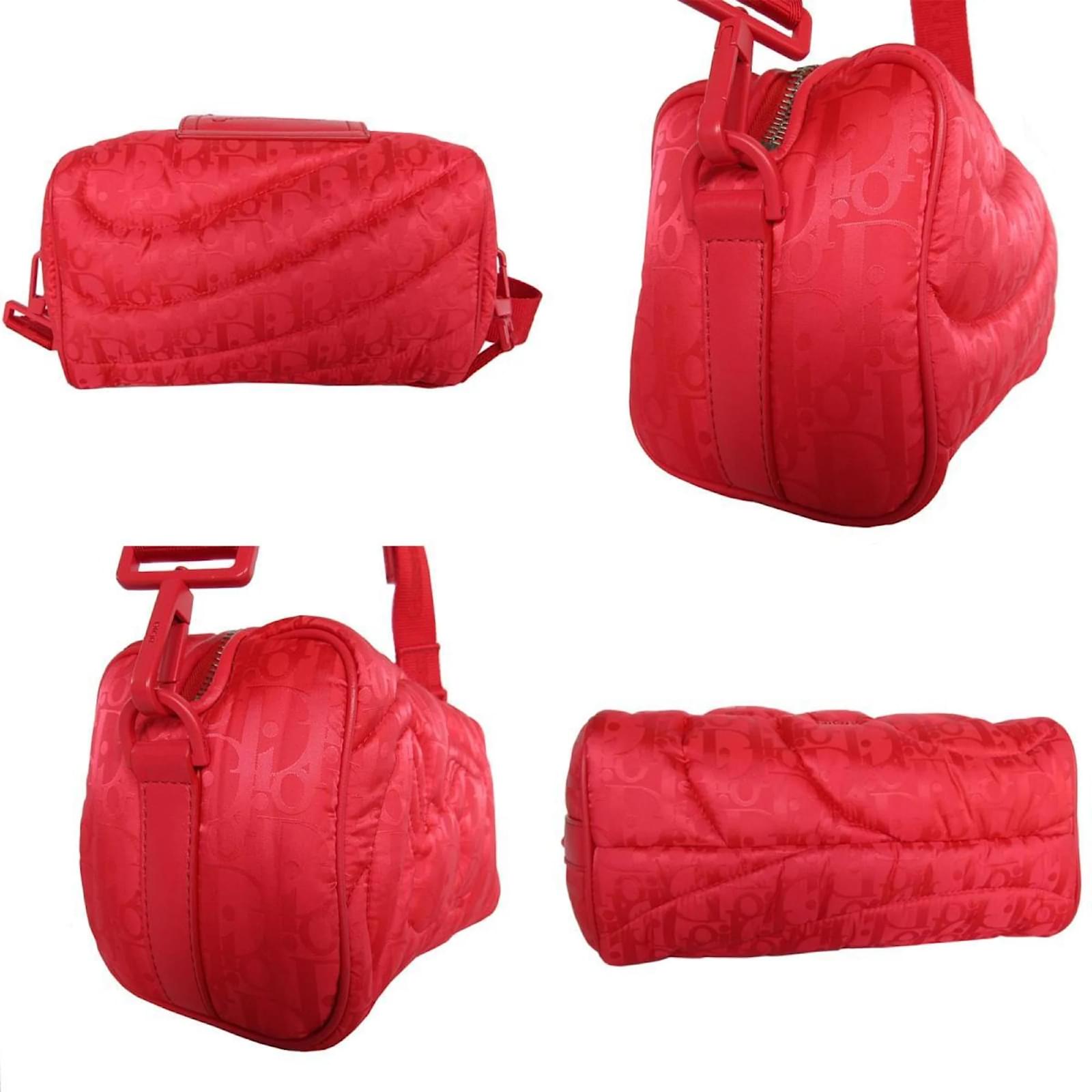 This Christian Dior shoulder bag, part of the DIOR x ERL collection, features a striking red nylon exterior. Measuring 13cm x 21cm x 10cm (5.11'' x 8.26'' x 3.93''), it is designed for practicality and style. The bag is classified as used but remains in very good condition, showing only slight traces of use, including minor scratches and dirt. It is a product of Italy and carries the brand's signature quality. Please refer to the images for a detailed view of the item's condition and included accessories, as none are provided with the purchase.