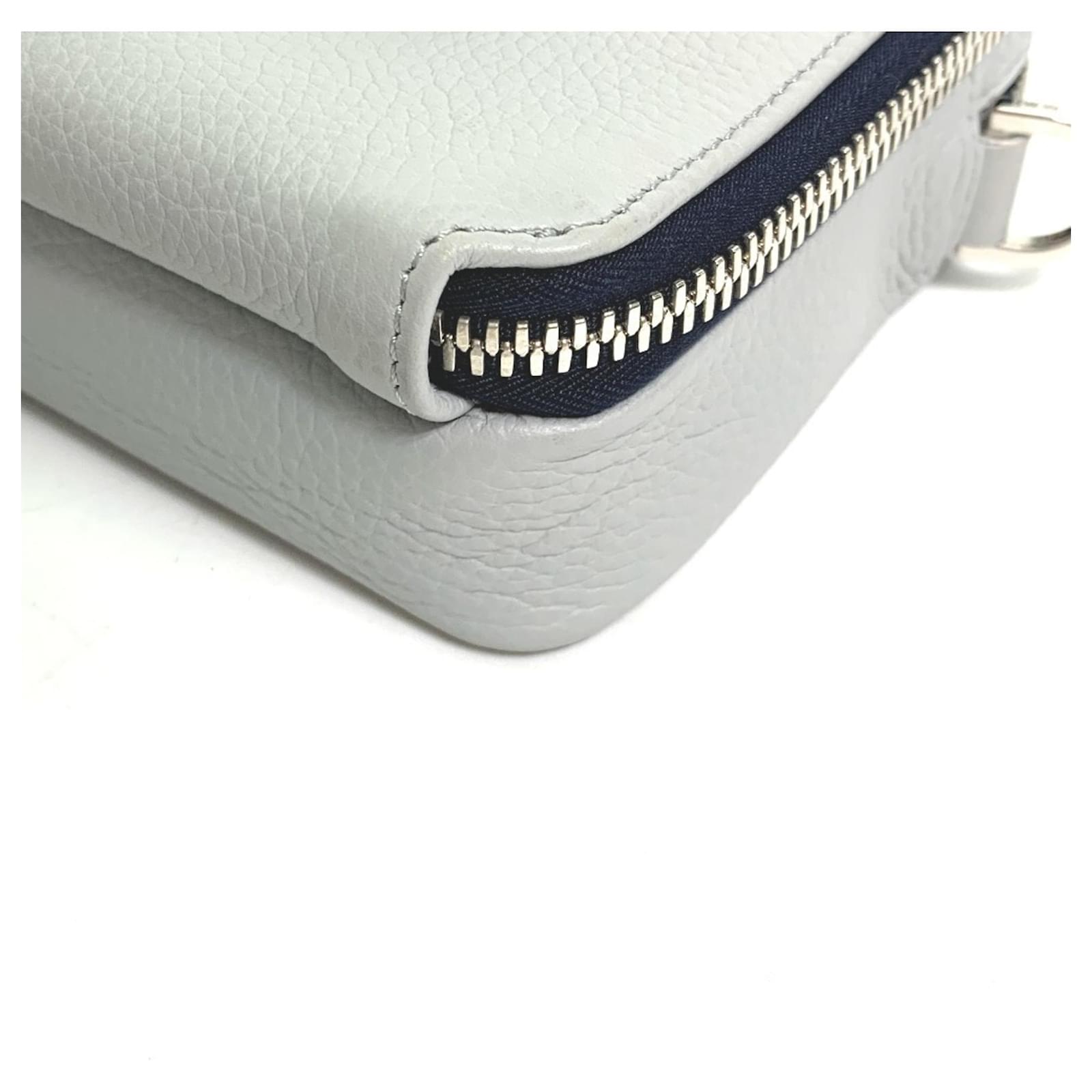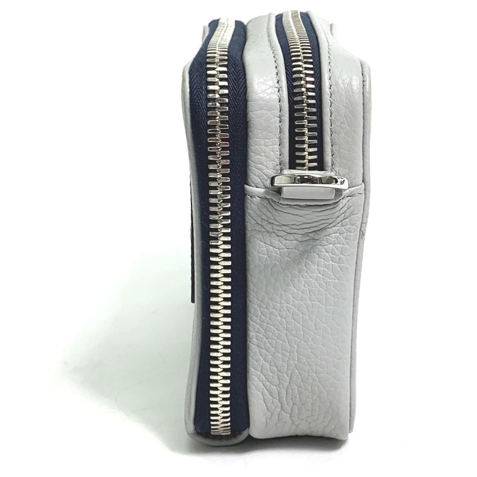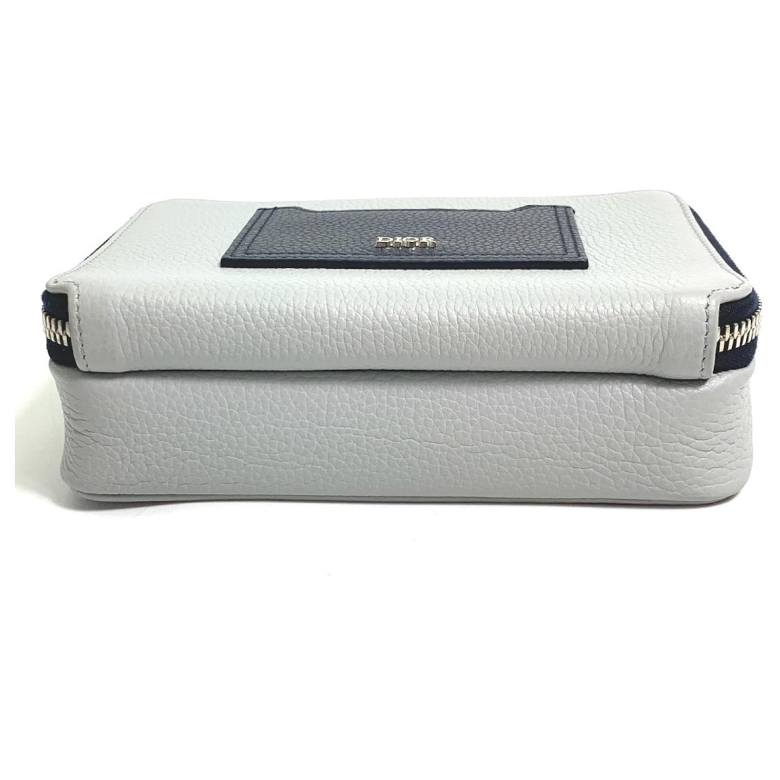 This Christian Dior shoulder bag features a double zip pocket design and is crafted from gray leather. With dimensions of 12cm x 17cm x 5.5cm, it is compact yet functional. The bag is categorized as used but is in very good condition, showing only slight traces of use, including minor scratches and dirt. There is a slight stain inside, and potential buyers are encouraged to review the images for a detailed view of the item's condition. The bag comes with a shoulder strap for added convenience.
