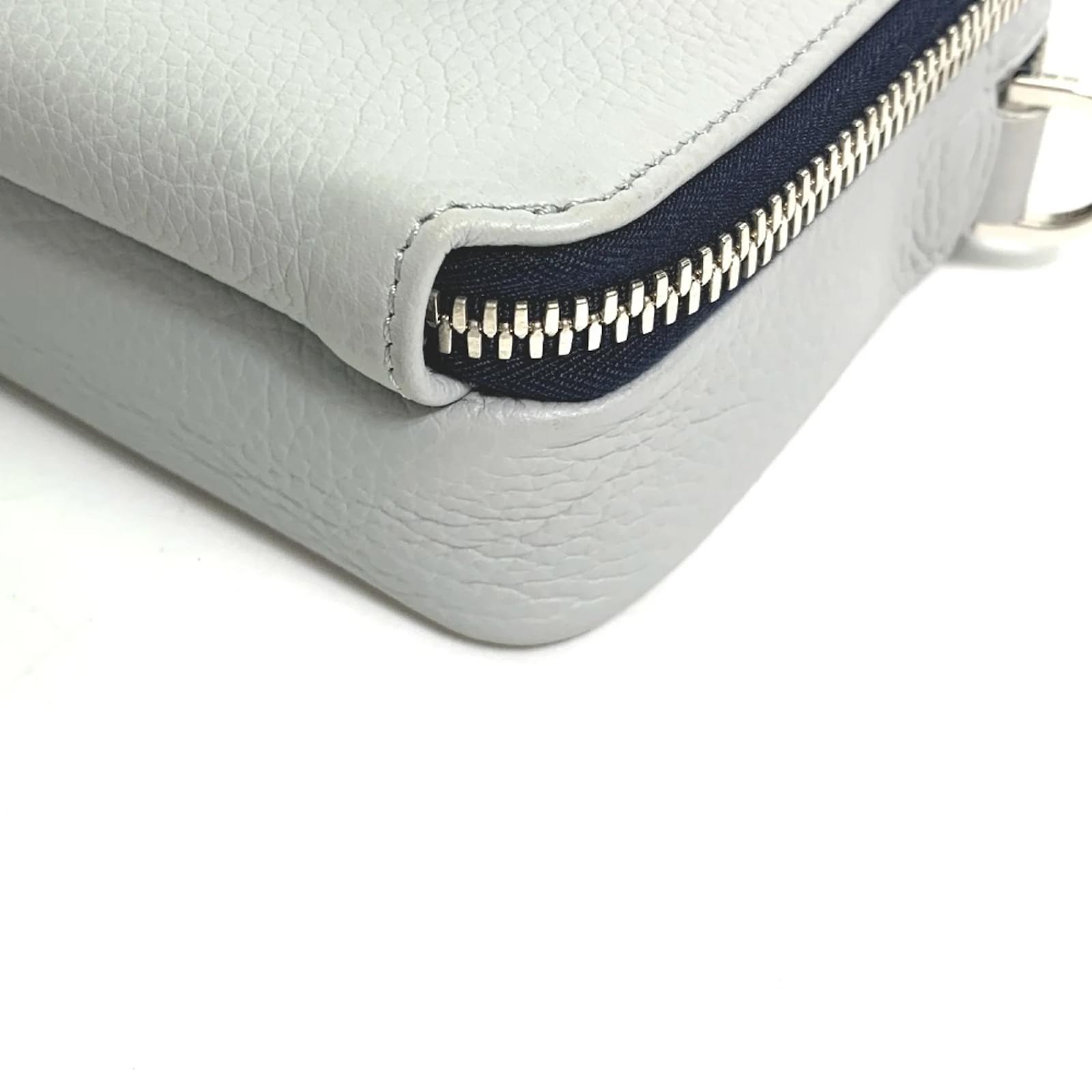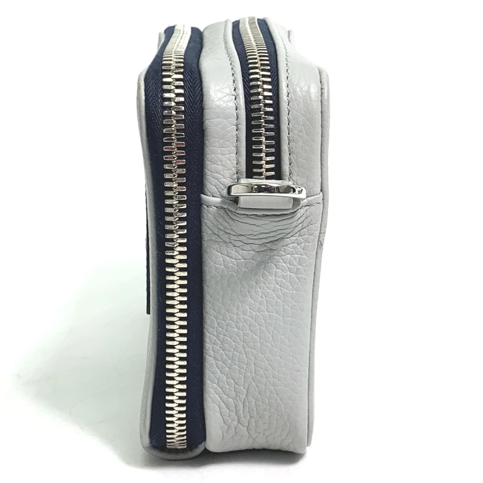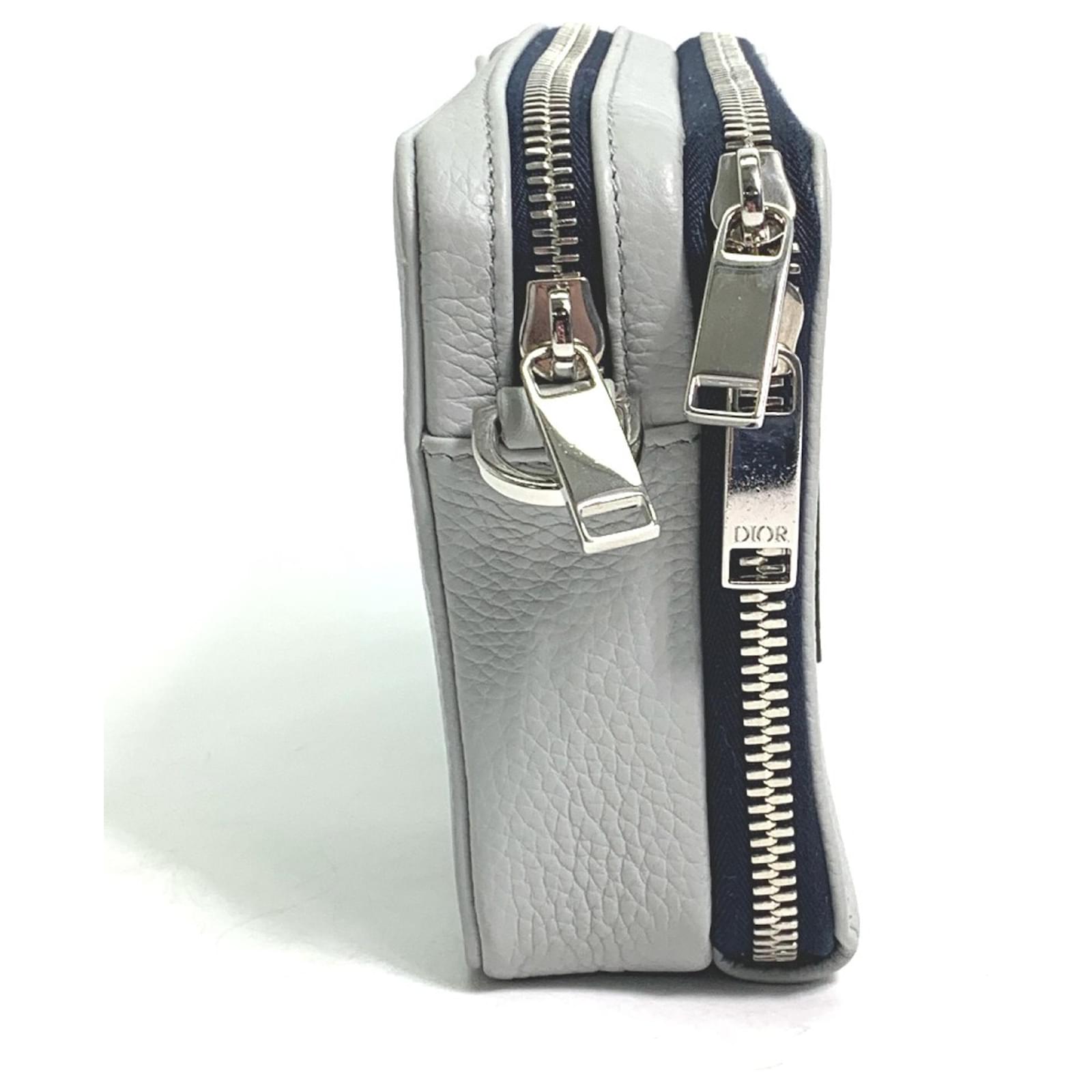 This Christian Dior shoulder bag is crafted from gray leather and features a double zip pocket for secure storage. Measuring 17cm in width, 12cm in height, and 5.5cm in depth, it offers a practical size for daily use. The shoulder strap extends to a maximum length of 52.4 inches, allowing for versatile carrying options.