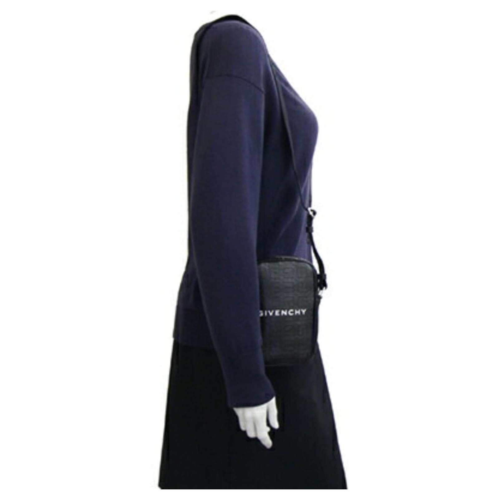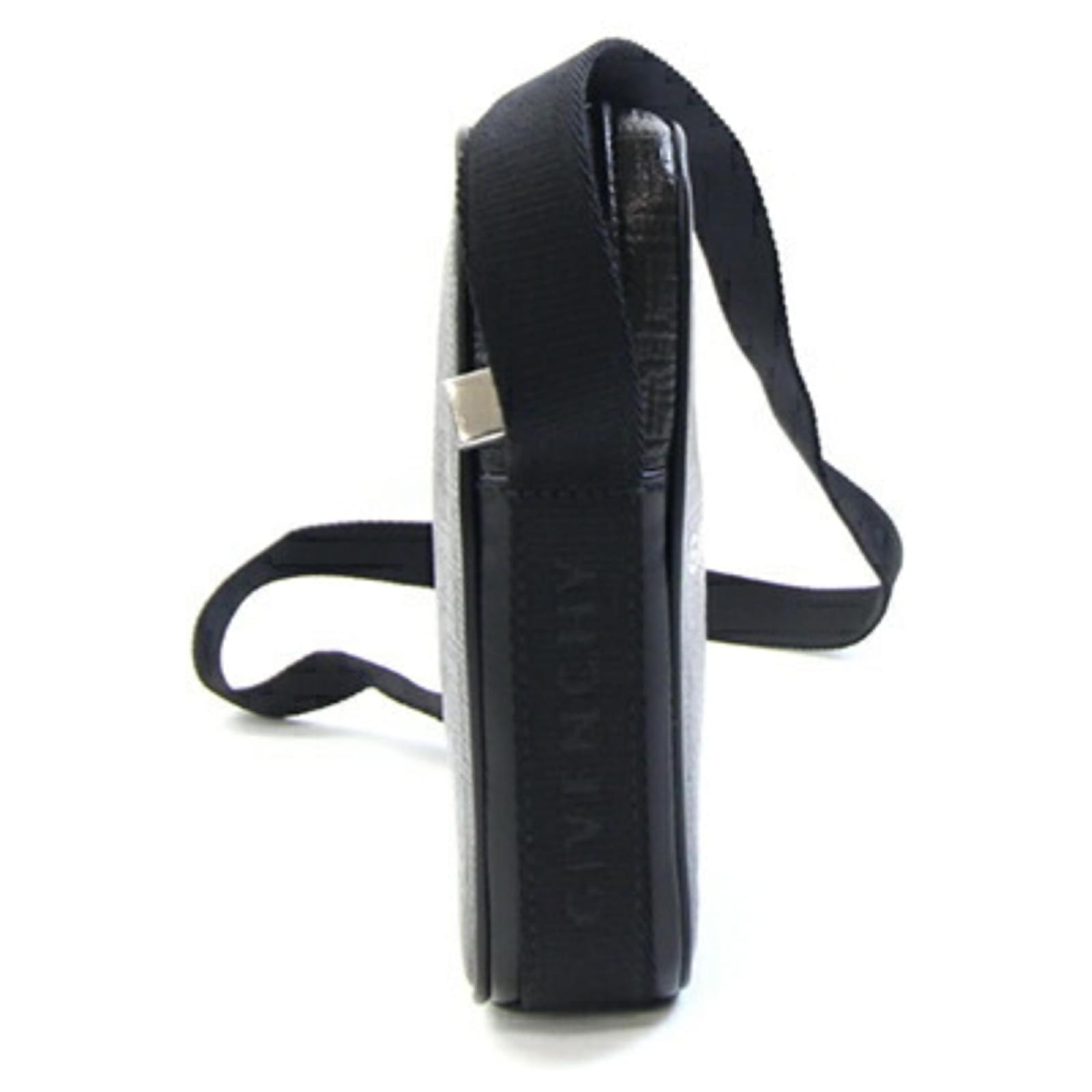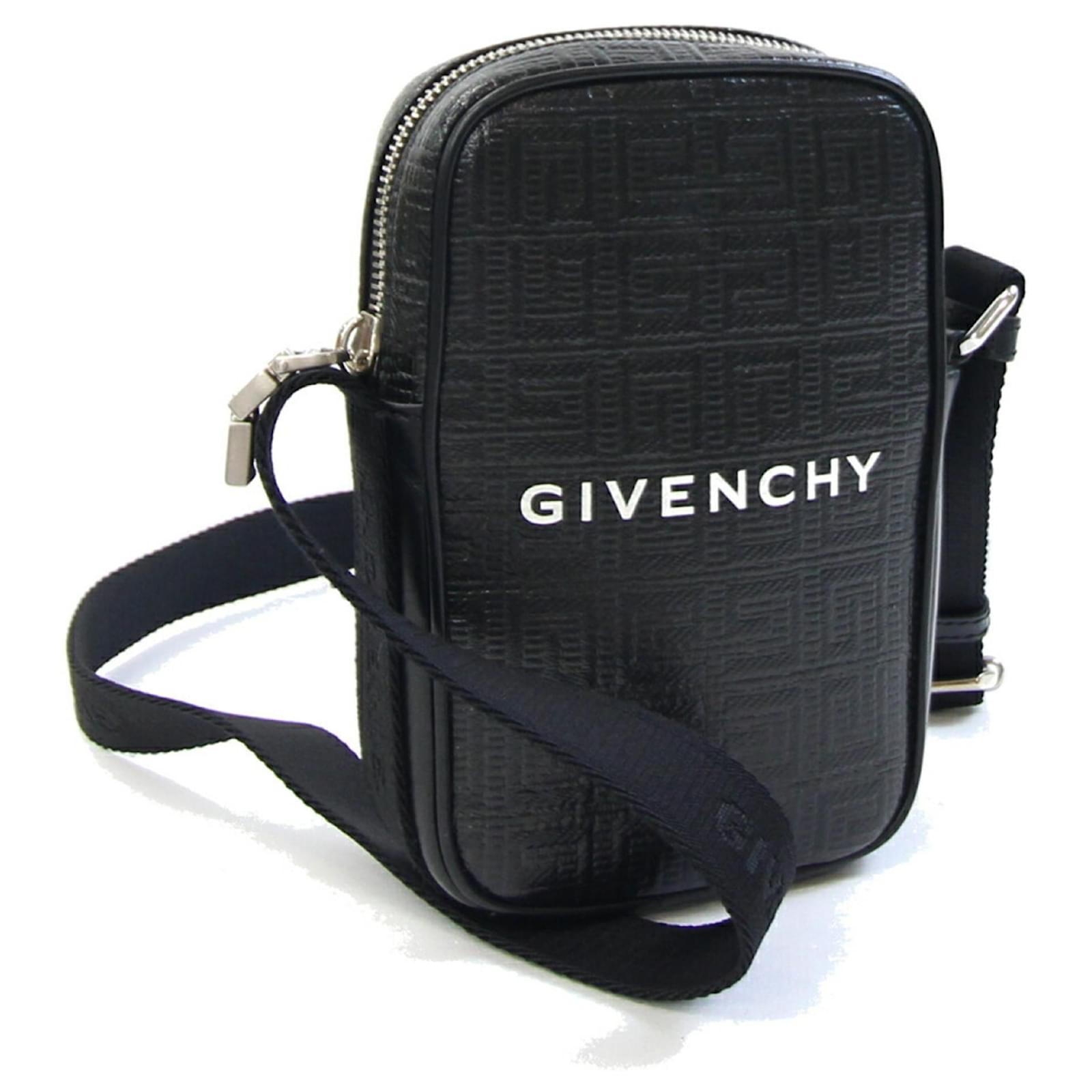 This Givenchy shoulder bag, designed as a small vertical pochette, features a sleek black leather exterior complemented by silver hardware. Measuring 17cm x 11cm x 4cm, it is compact yet functional for everyday use. The bag is classified as used but remains in very good condition, showing only insignificant traces of use, scratches, or dirt. It is important to review the provided images for a detailed view of the item's condition. No additional accessories are included with this purchase.