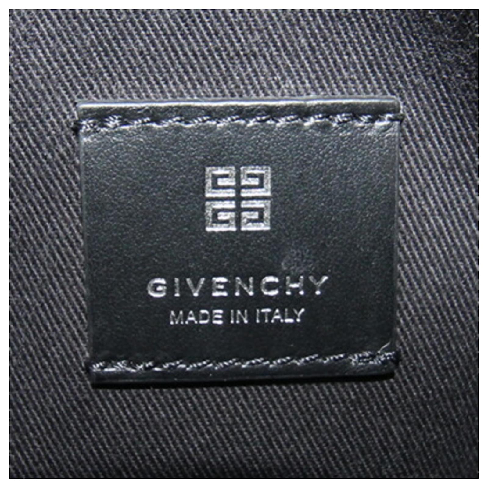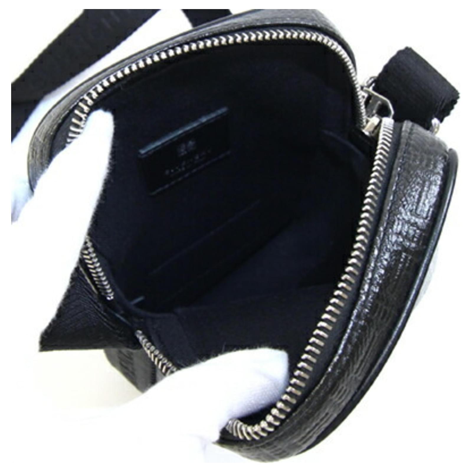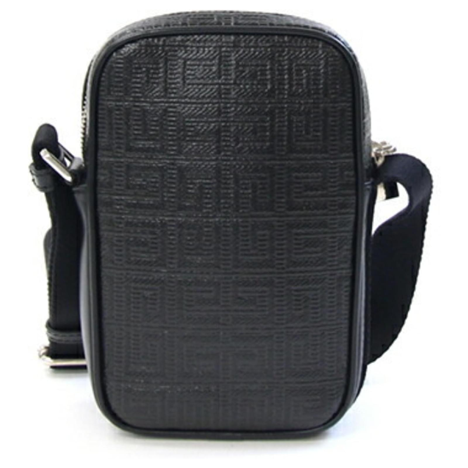 This Givenchy shoulder bag, designed as a small vertical pochette, features a sleek black leather exterior complemented by silver hardware. Measuring 17cm x 11cm x 4cm, it is compact yet functional for everyday use. The bag is classified as used but remains in very good condition, showing only insignificant traces of use, scratches, or dirt. It is important to review the provided images for a detailed view of the item's condition. No additional accessories are included with this purchase.