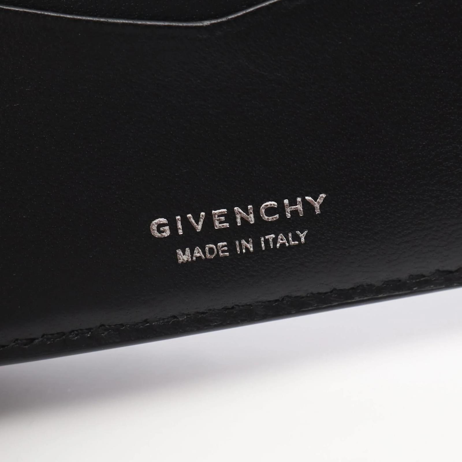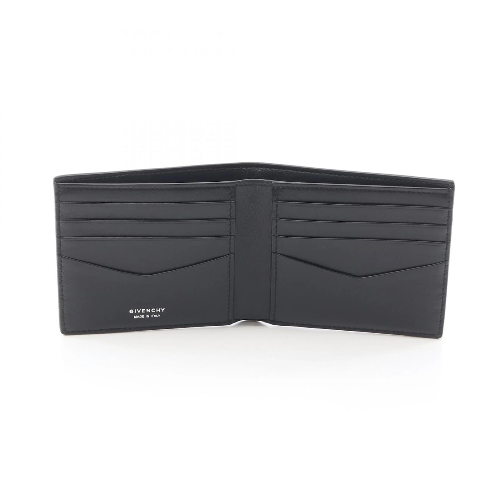 The Givenchy 4G Bi-fold Wallet is crafted from black leather, offering a sleek and sophisticated design suitable for everyday use. Measuring 9.5cm x 11cm x 1cm, this wallet is compact yet functional. It is categorized as used but remains in very good condition, with only slight traces of use, including minor scratches and dirt. The wallet does not come with any additional accessories. For a detailed view of its condition, potential buyers are encouraged to refer to the provided images.