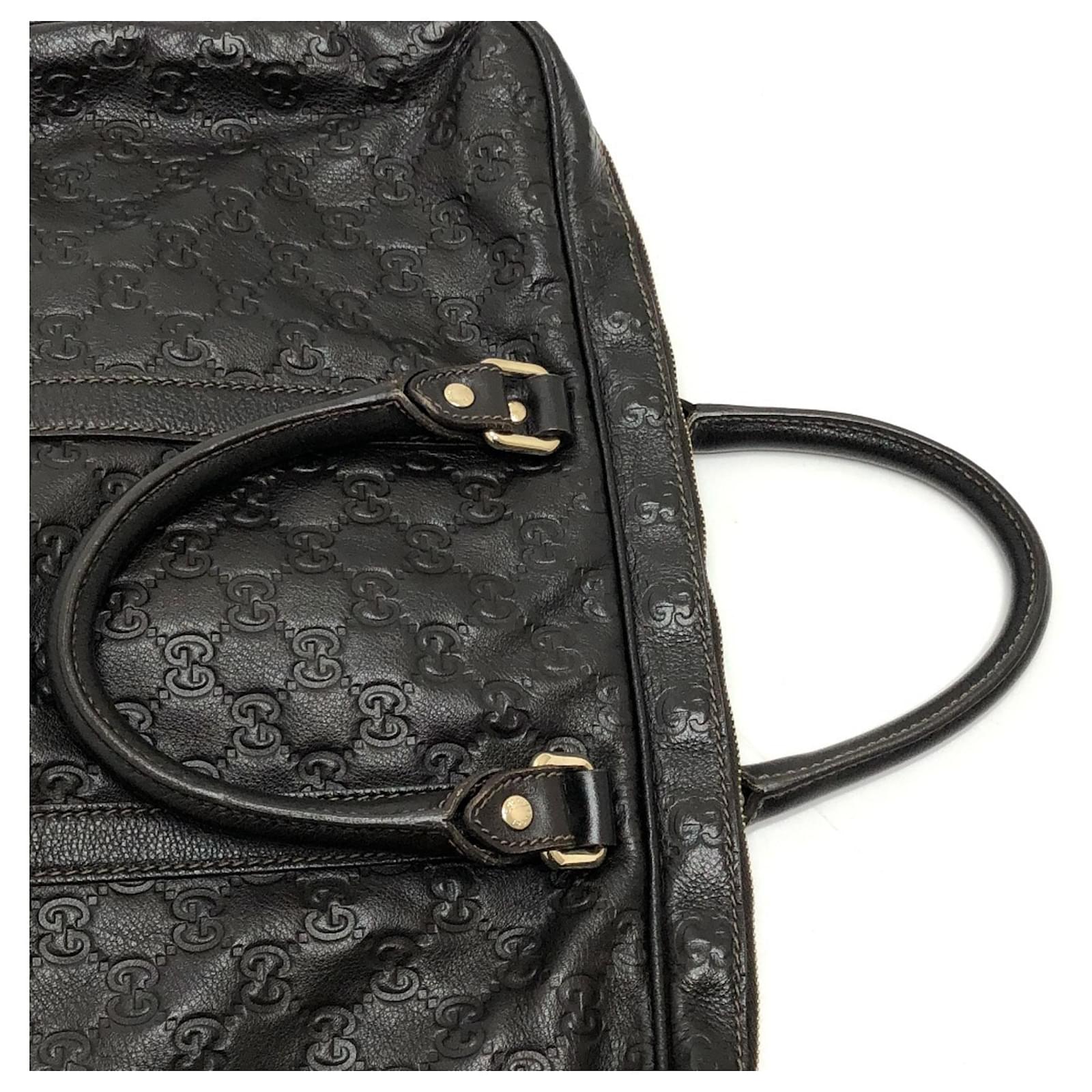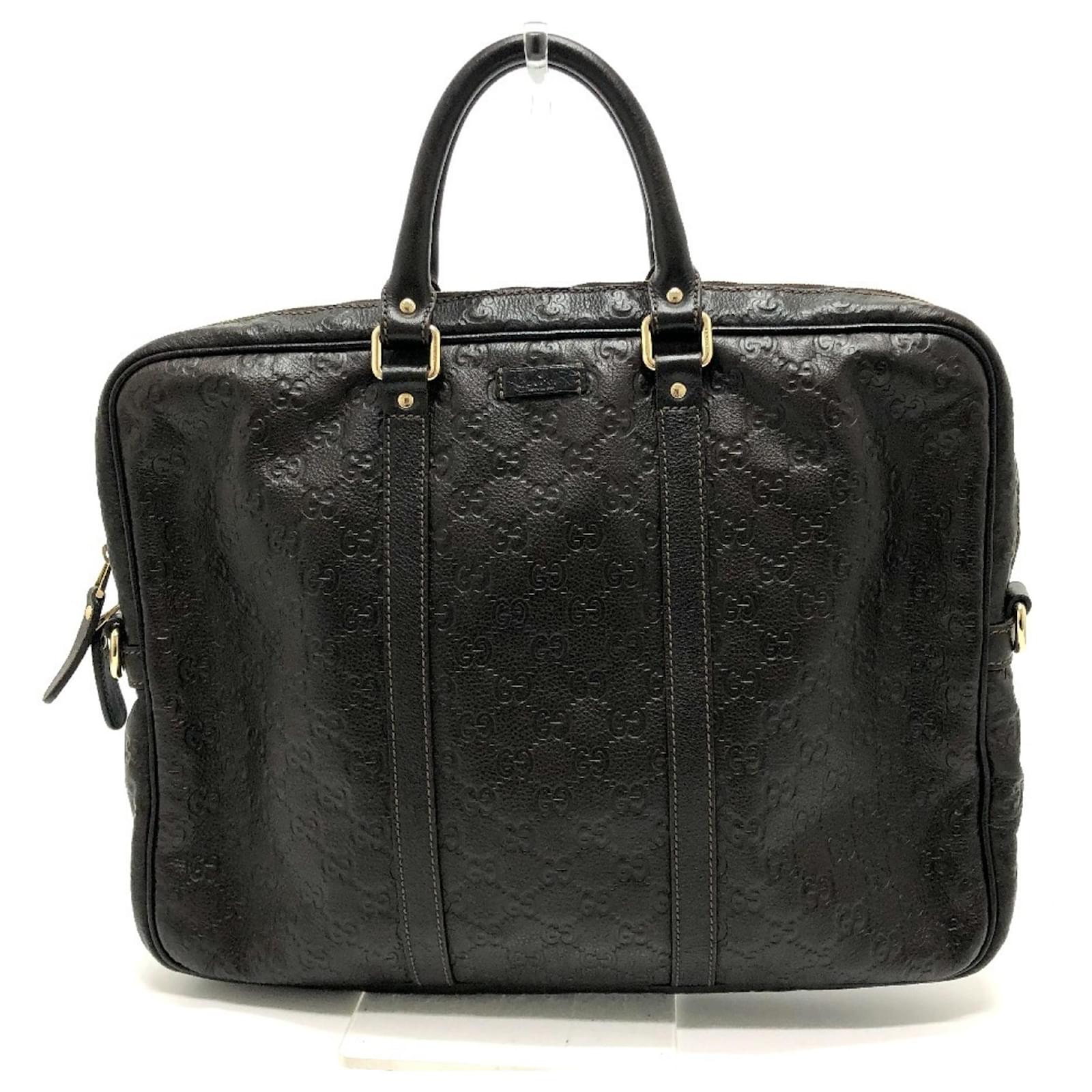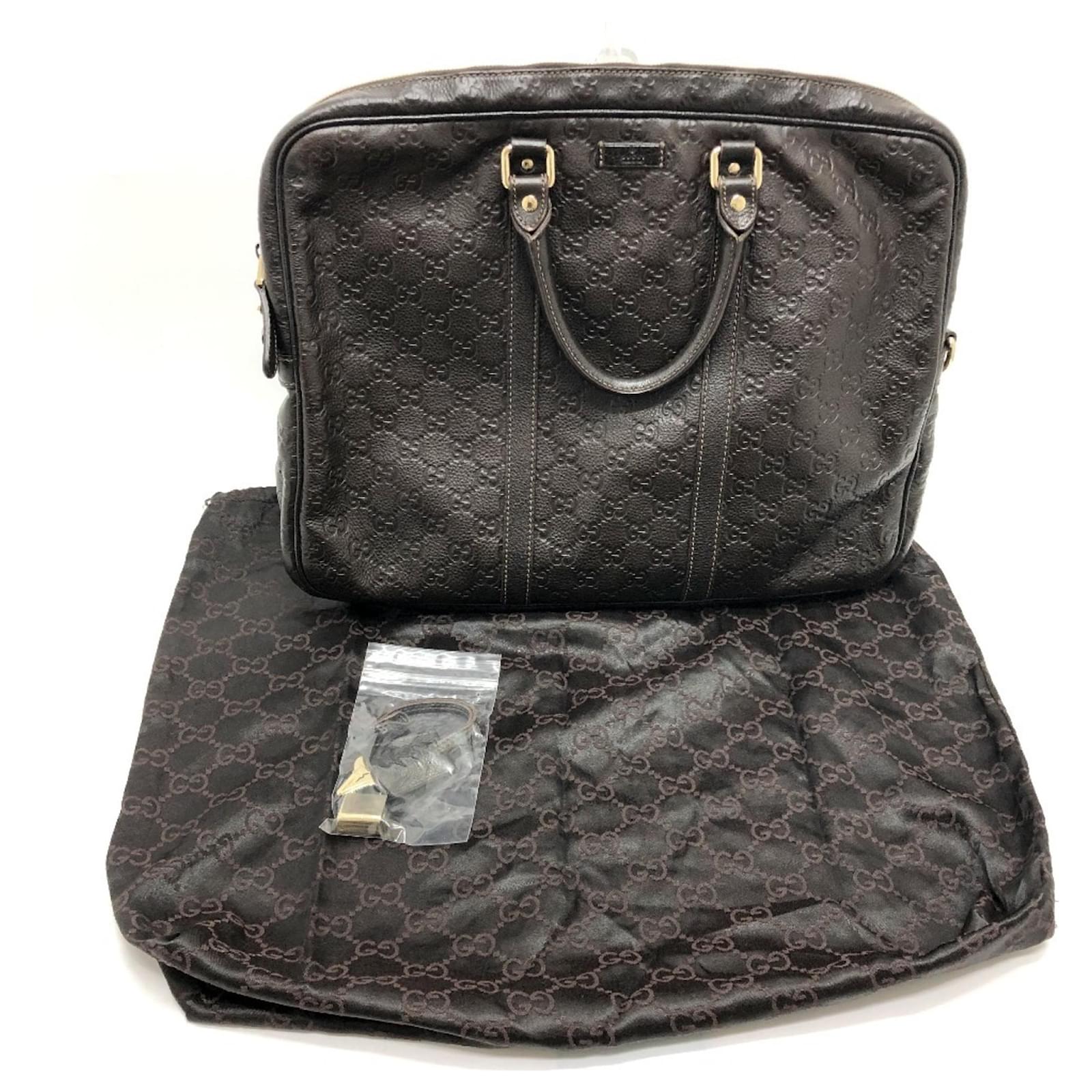The Gucci 201480 Shima Line is a brown leather briefcase designed for both business and casual use. Measuring 31cm in height, 40.5cm in width, and 6cm in depth, it offers ample space for essentials. This item is classified as used but remains in good condition, showing slight traces of usage, including minor scratches and dirt. The exterior features a slight crease, and potential buyers are encouraged to review the provided images for a detailed view of its condition. Included with the briefcase are a clochette, dust bag, key, and padlock. This product is part of Gucci's collection, known for its quality craftsmanship.