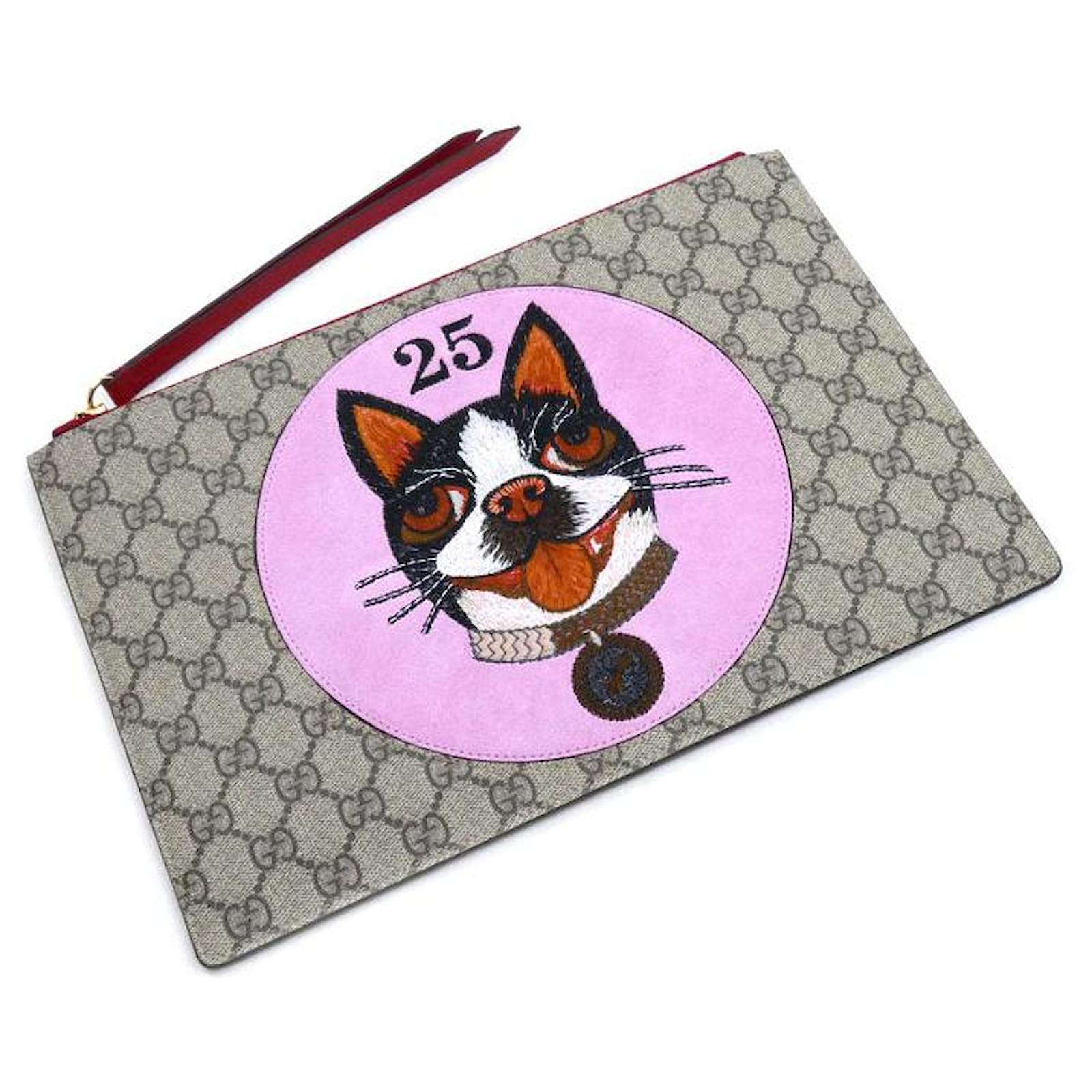 Gucci BOSCO GG Supreme Canvas Clutch Bag Brown Beige
