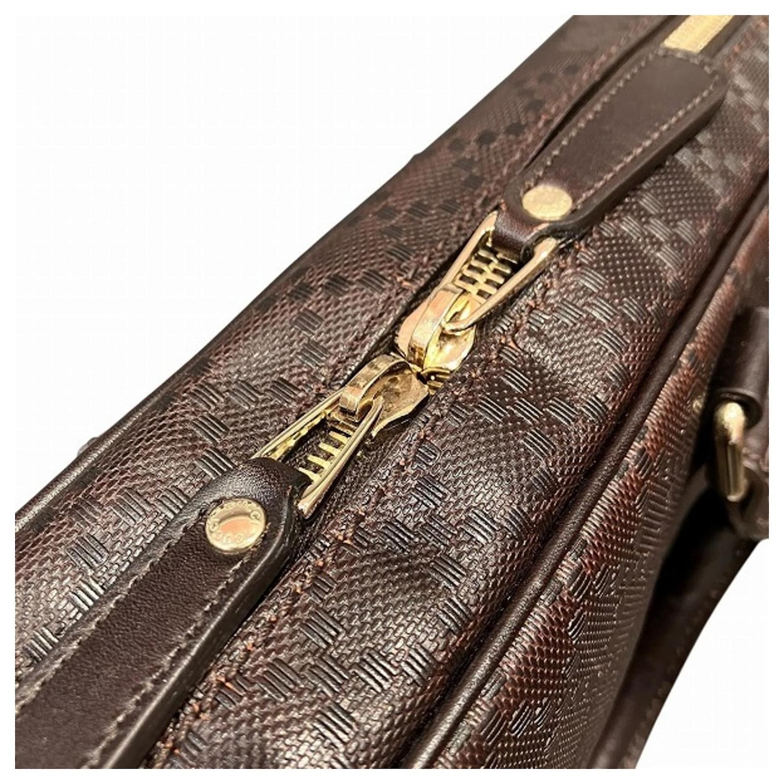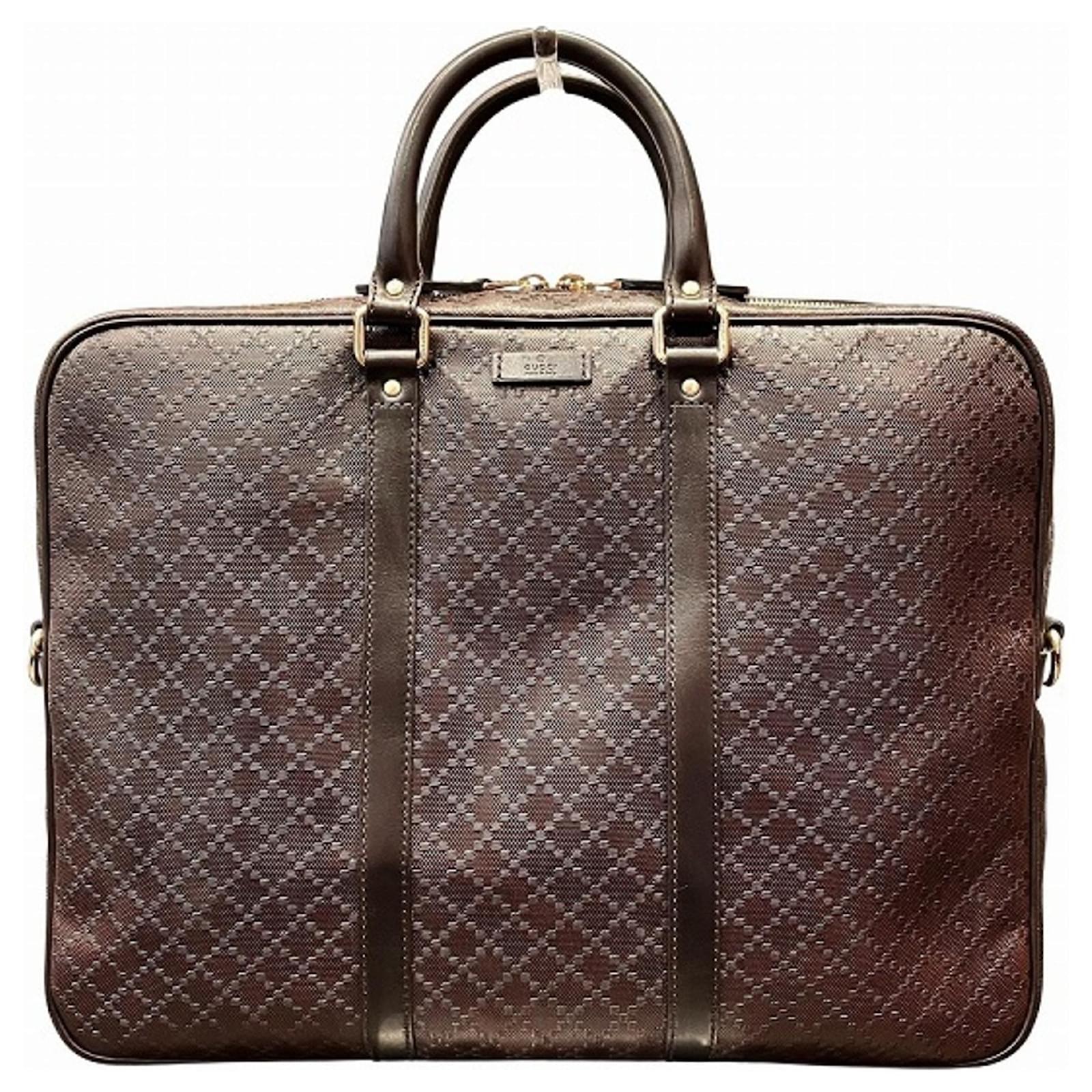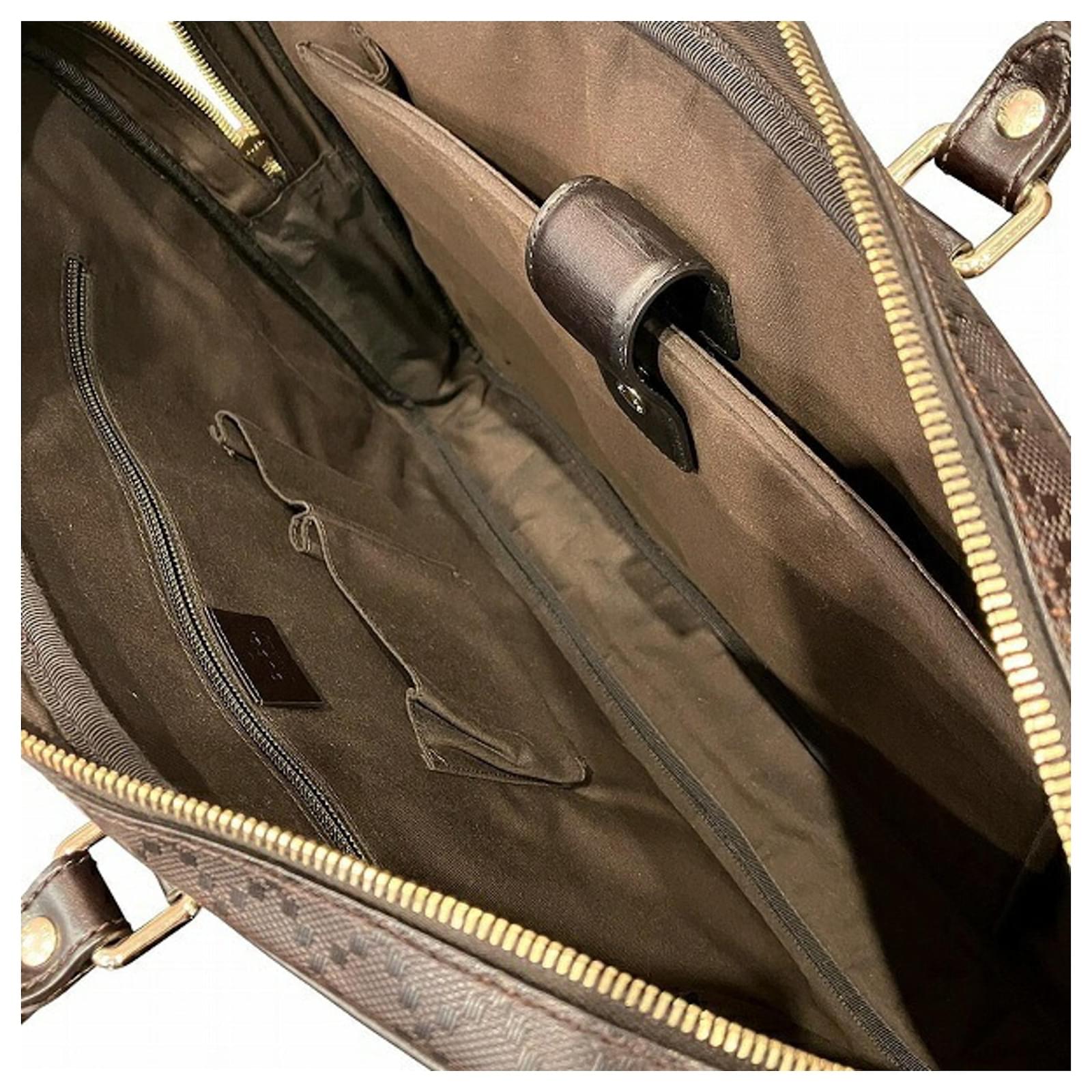 The Gucci Diamante 201480 is a brown leather briefcase designed for men, measuring 32cm x 44cm x 5.5cm (12.59'' x 17.32'' x 2.16''). This item is classified as used but is in very good condition, showing only slight traces of use, including minor scratches and dirt. It comes with a dust bag for protection. Potential buyers are encouraged to review the images for a detailed view of the item's condition and included accessories.