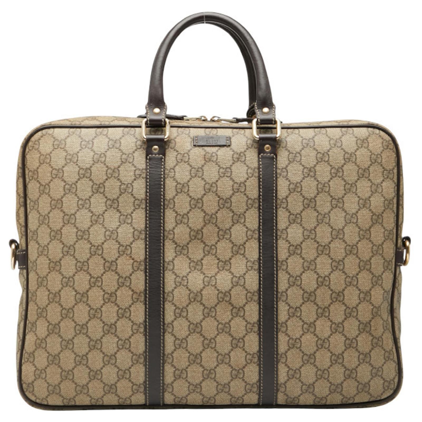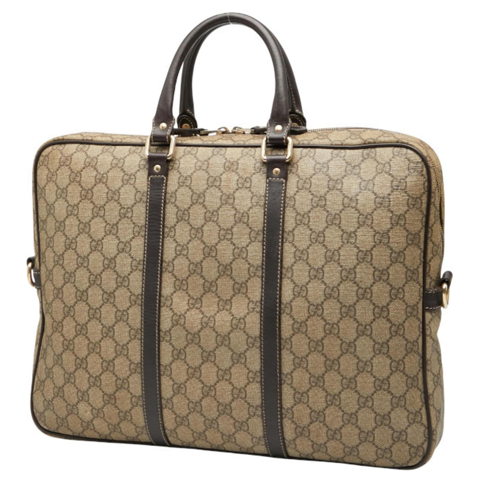 The Gucci GG Supreme Business Bag, model number 201480, is designed for those seeking a blend of style and functionality. This briefcase features a Beige and Brown color scheme, expertly crafted from PVC and leather. The dimensions of the bag are 30cm x 40cm x 5cm, making it a convenient option for daily use.