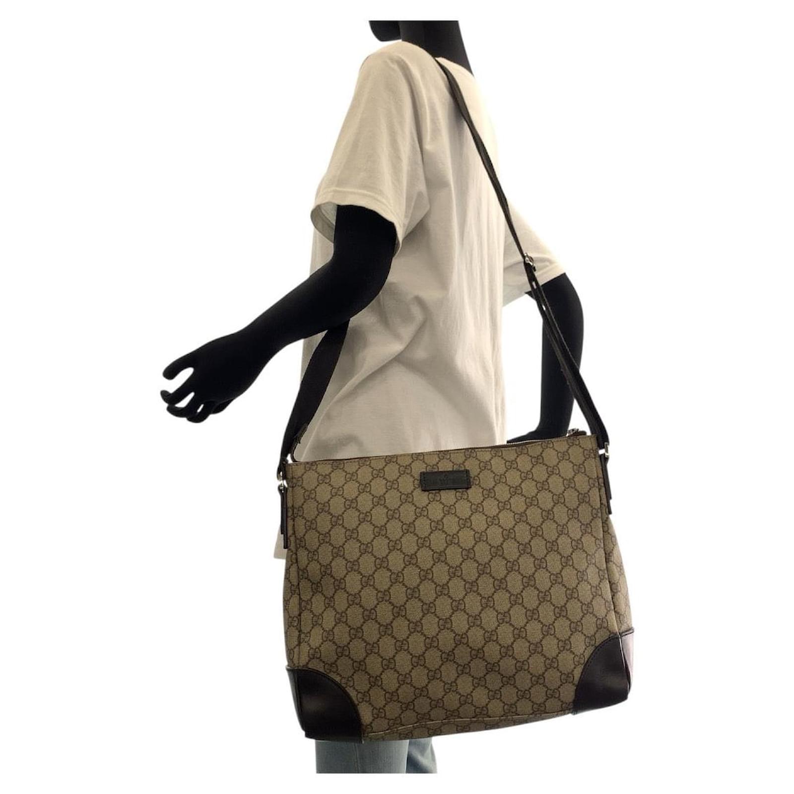 Gucci GG Supreme Canvas Shoulder Bag Brown Beige
