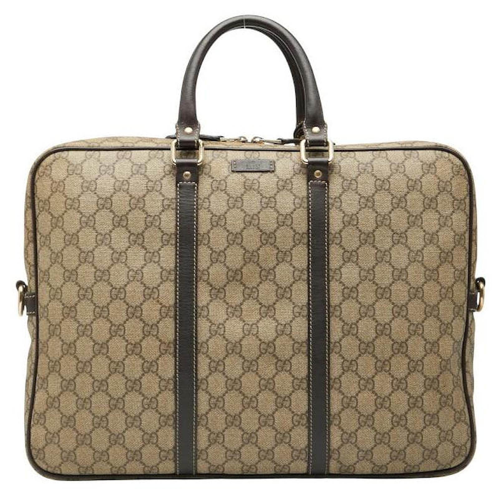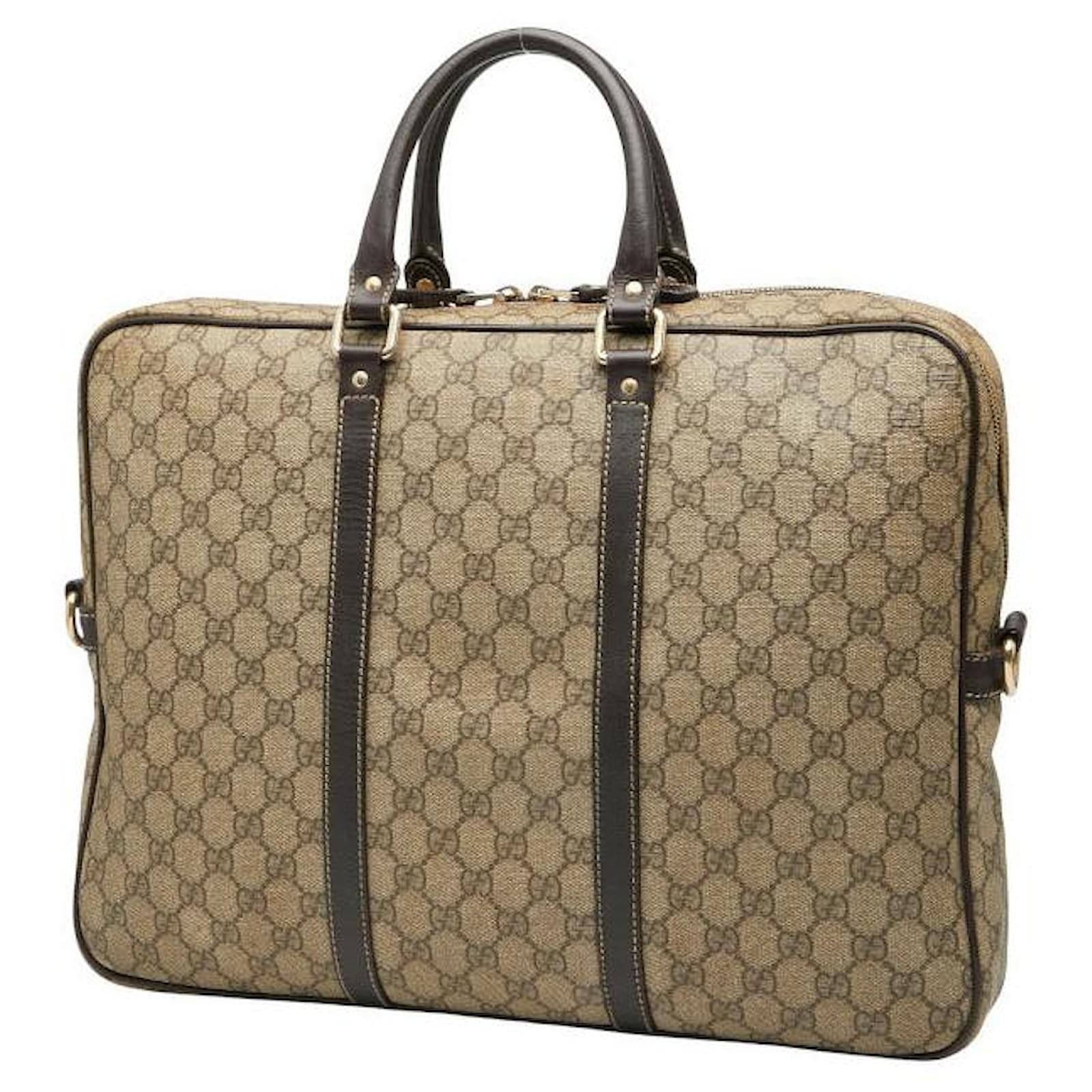 Gucci GG Supreme PVC Business Bag Brown Beige