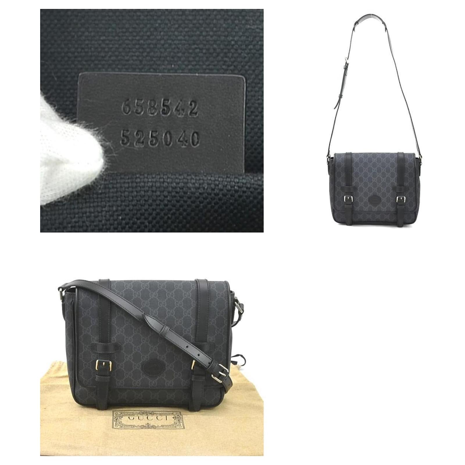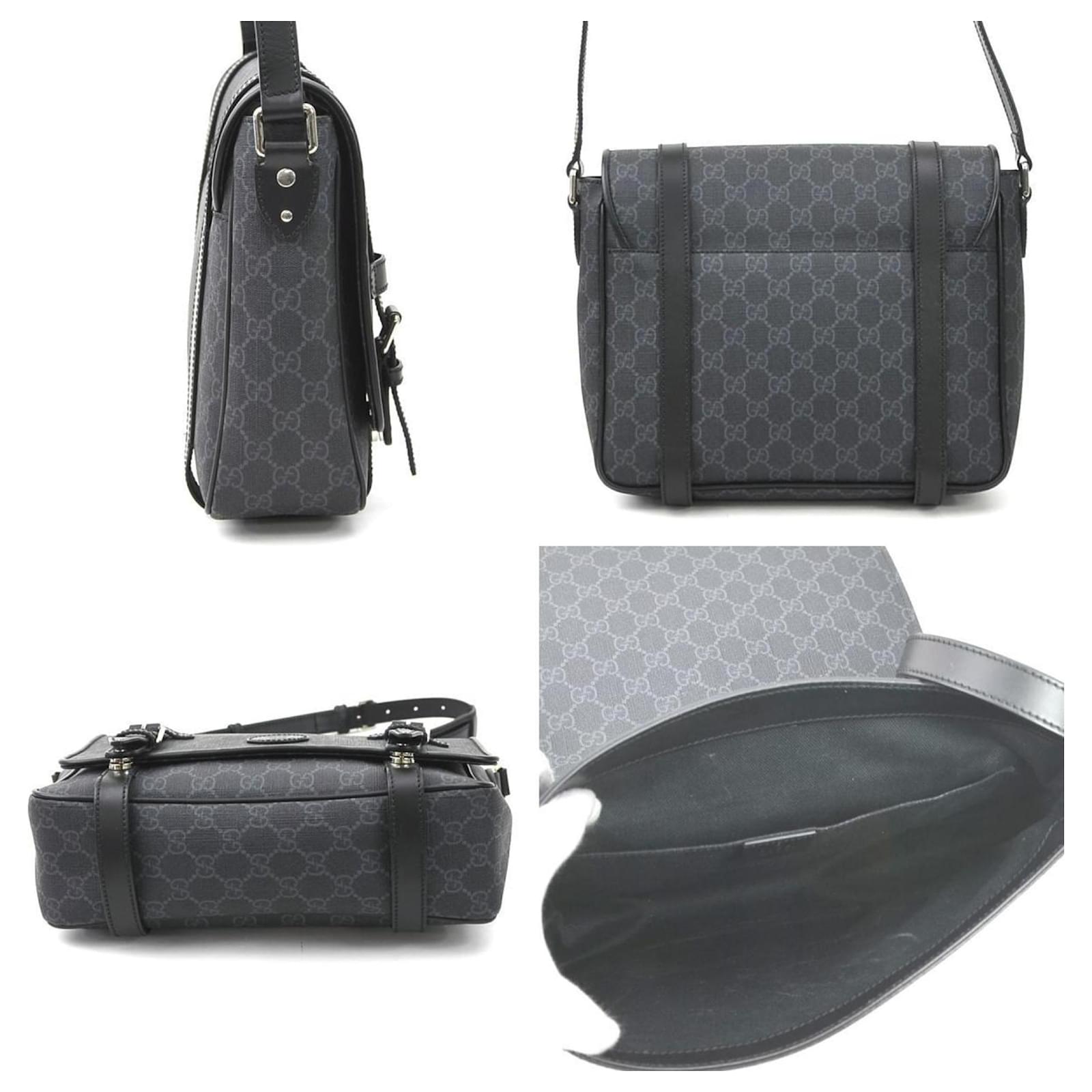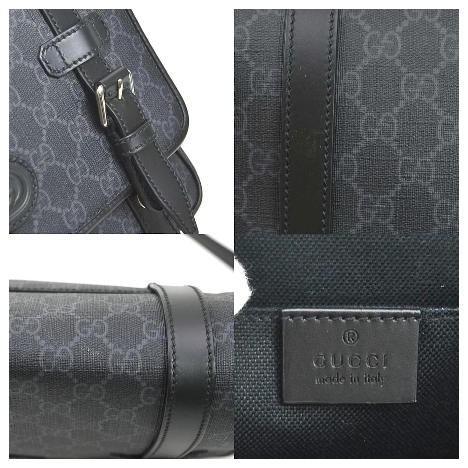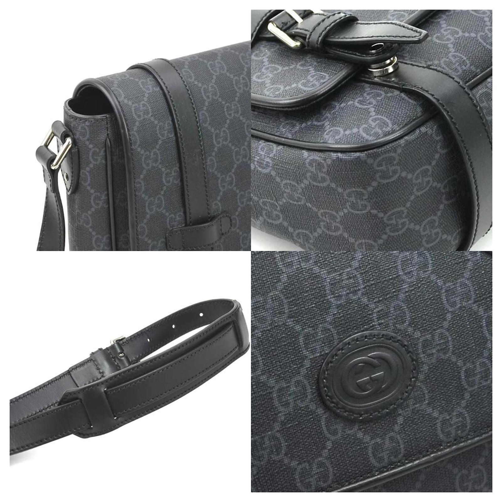 This Gucci shoulder bag features a sleek design in black and gray, complemented by silver hardware. Made from durable PVC, it measures 24cm in height, 28cm in width, and 8cm in depth. The bag is classified as used but remains in good condition, showing slight traces of use, including minor scratches and dirt. It has a faint tobacco smell. Please refer to the images for a detailed view of its condition and note that no additional accessories are included.
