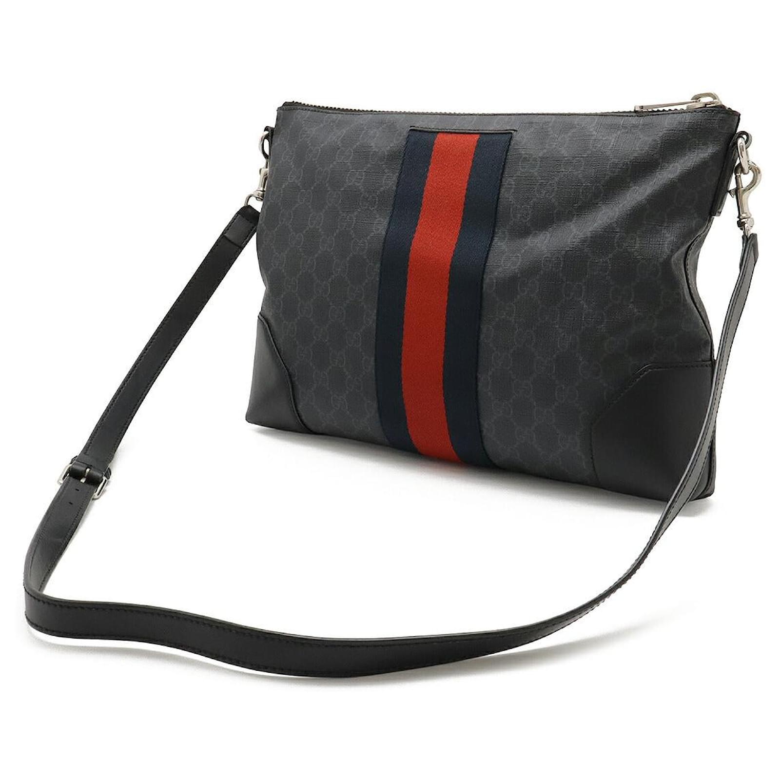 Brand Name: Gucci; Condition: Very Good; Category: Bag; SubCategory: Crossbody Bag; Product Name: Gucci GG Supreme Web Line Messenger Bag; Model Number: 474139; Style: Gentleman; Accessories: Shoulder Strap; Weight (g): 550; Height (cm): 24.5; Width (cm): 4.5; Length (cm): 35; Color: Black; Material: GG Supreme canvas (PVC coating)/Leather; Origin: Italy; Measurments: strap length: 0 mm handle drop: 0 mm
