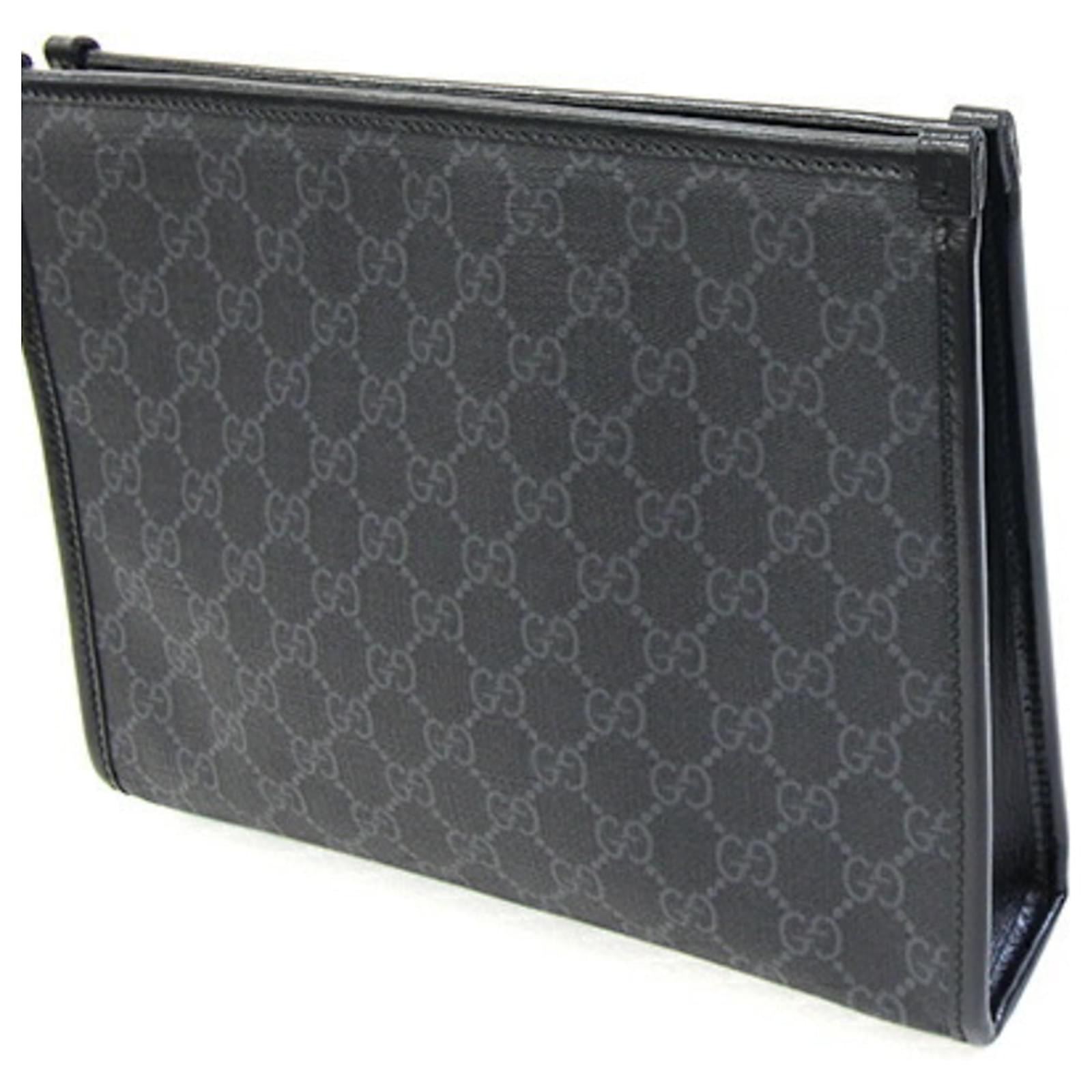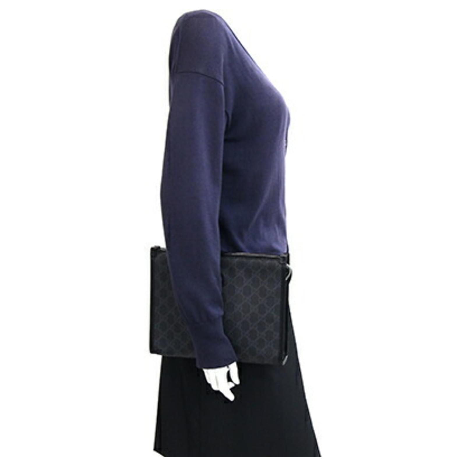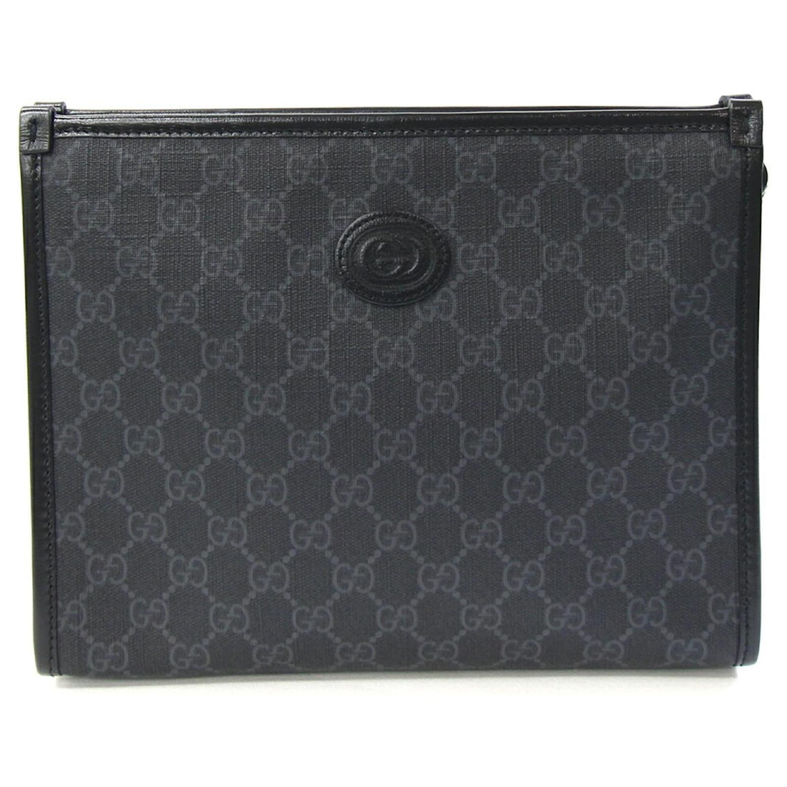 The Gucci Interlocking G Clutch Bag showcases a stylish blend of gray and black hues crafted from PVC and leather. With dimensions of 20.5cm x 26cm x 5.5cm, it offers a compact yet functional space for essentials. Originating from Italy, this clutch is designed for men and features the iconic GG Supreme design.