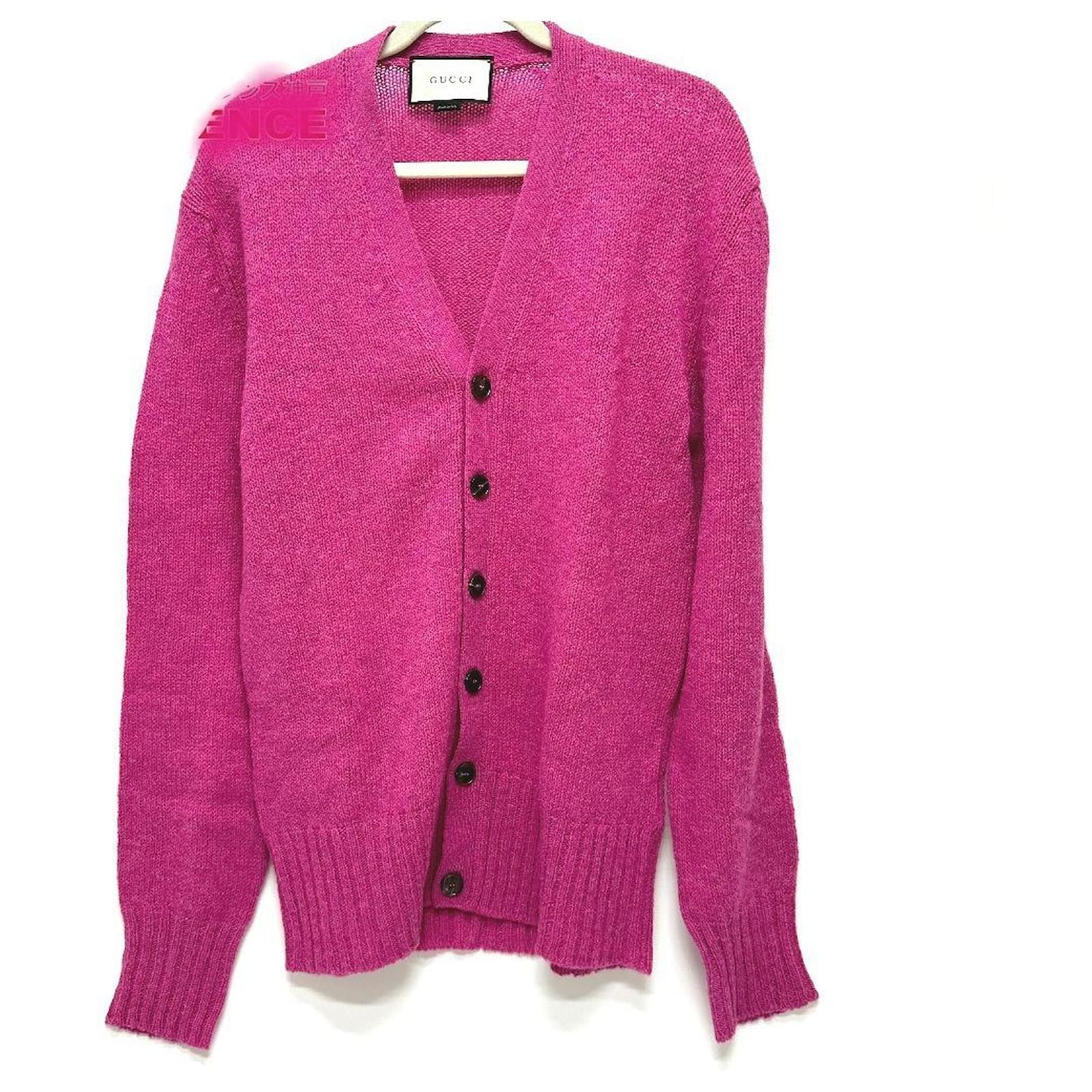 ***GUCCI V-neck cardigan wool men Very Good Condition MATERIALS: Wool color: pink Size: Small Shoulder width: 49cm Length: 75cm Width: 52cm Sleeve length: 77cm