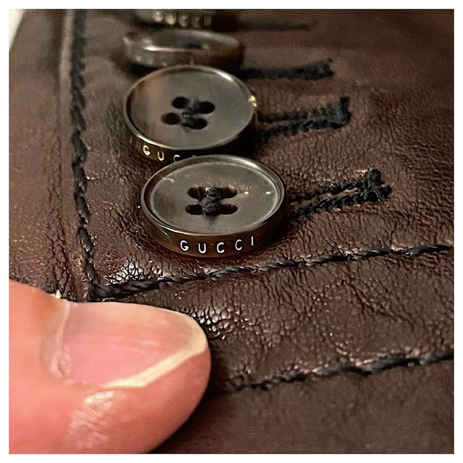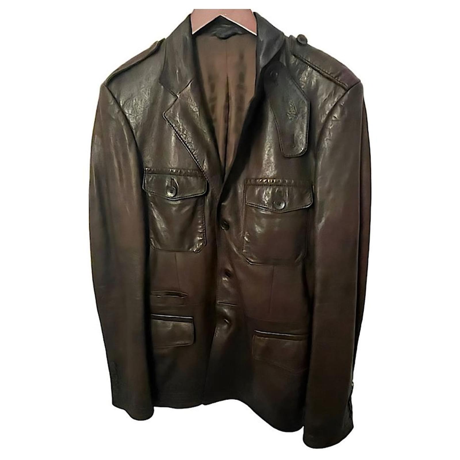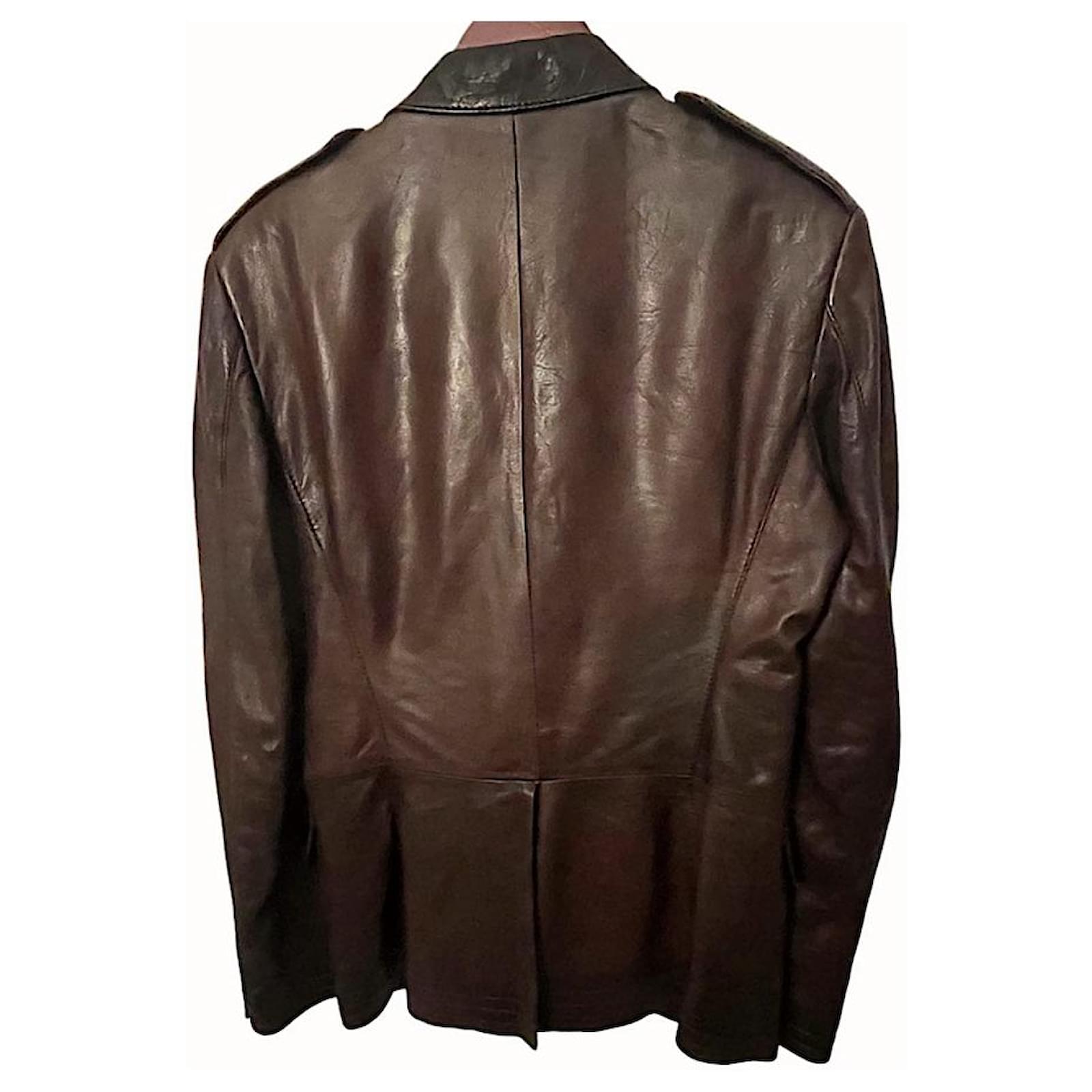 Authentic Gucci Tom Ford Runway Brown Military Style Lambskin Blazer Size 48 IT Made in Italy 19”W 30”L 27” Sleeve Length