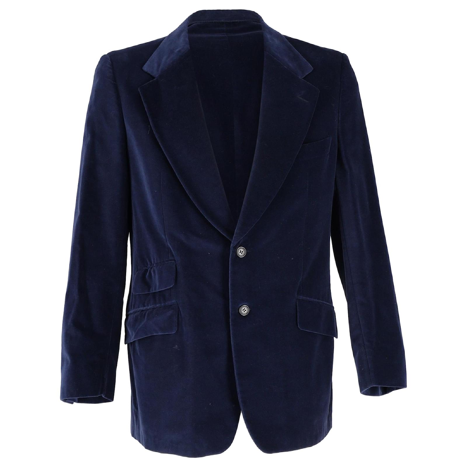 Gucci Single-Breasted Velvet Blazer in Navy Blue Cotton