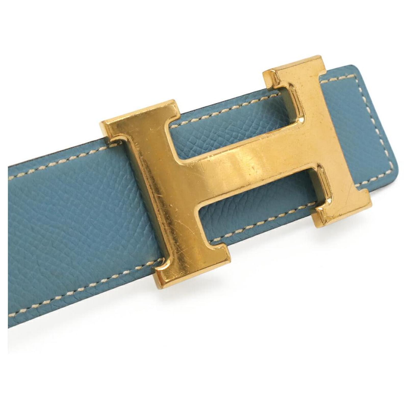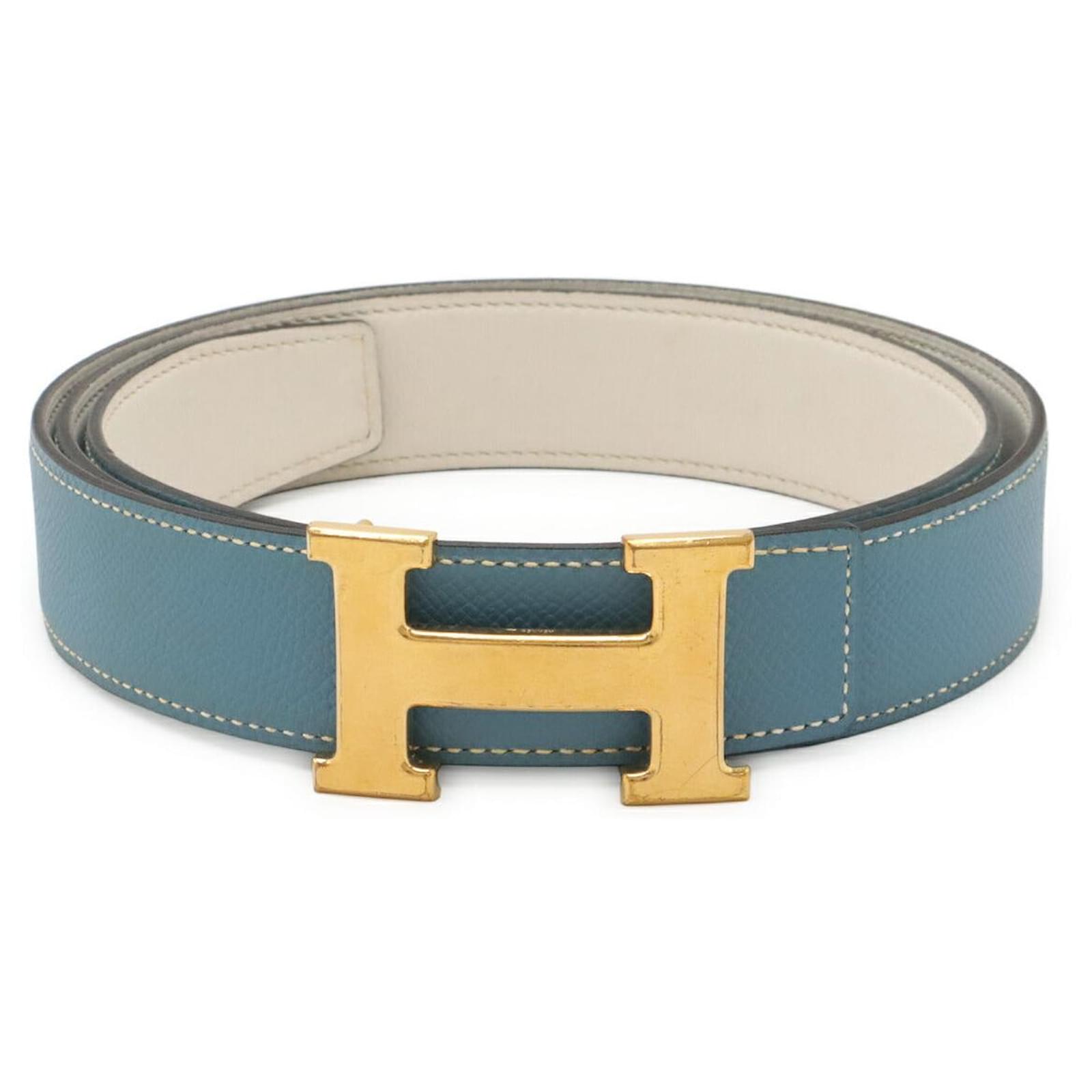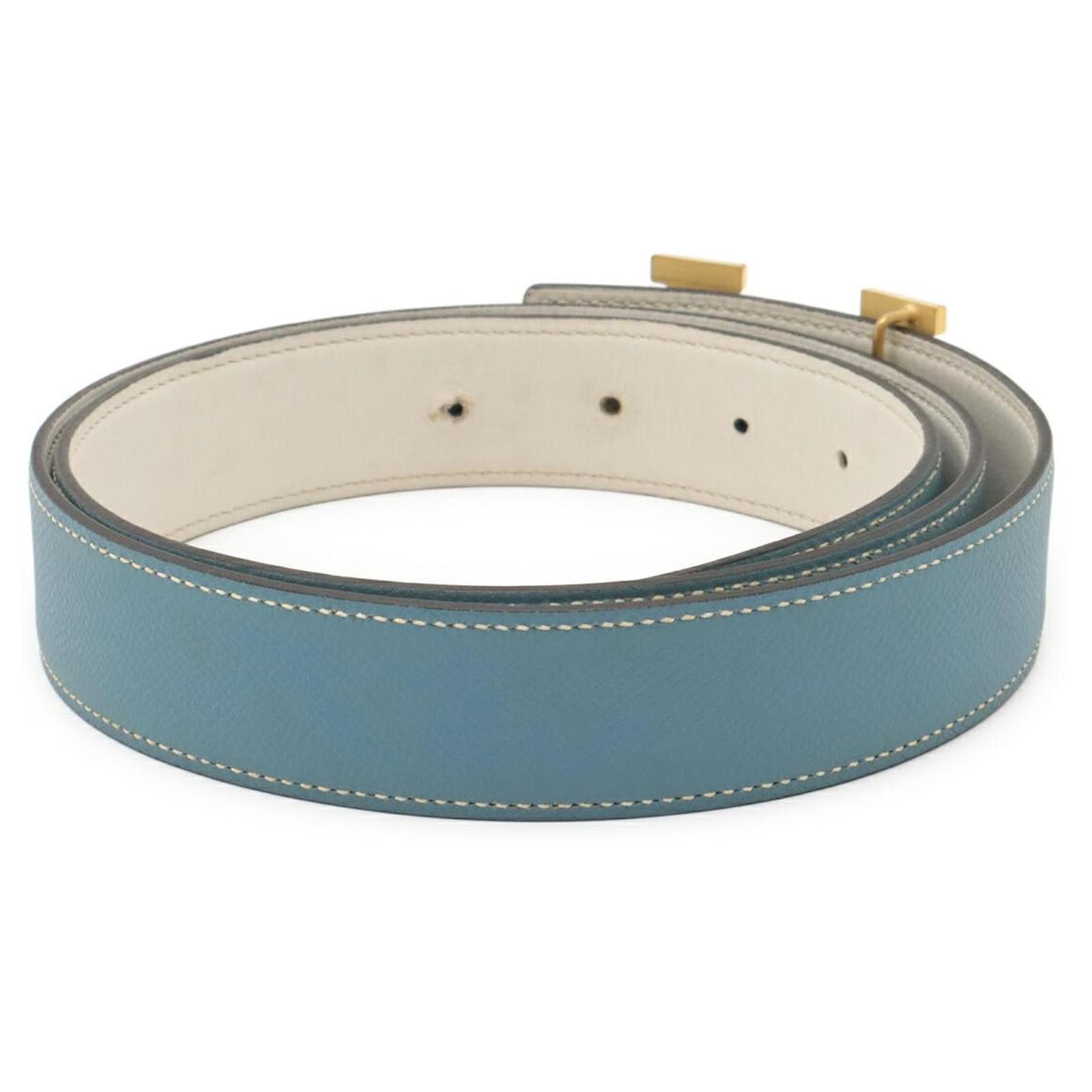 Hermès Hermes H Buckle Togo Leather Belt Blue