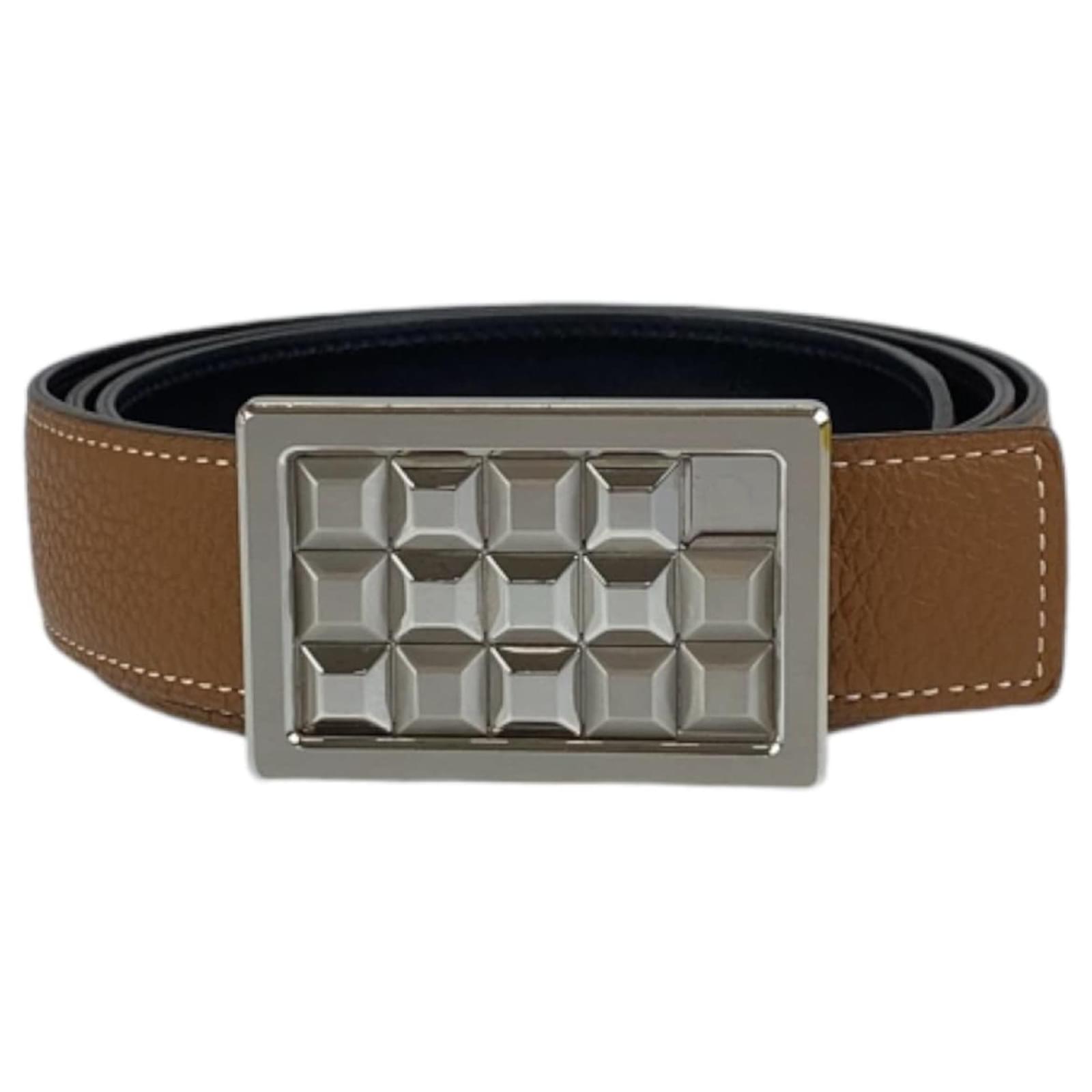 Hermès Hermes Stud Buckle Belt Brown Silvery Camel