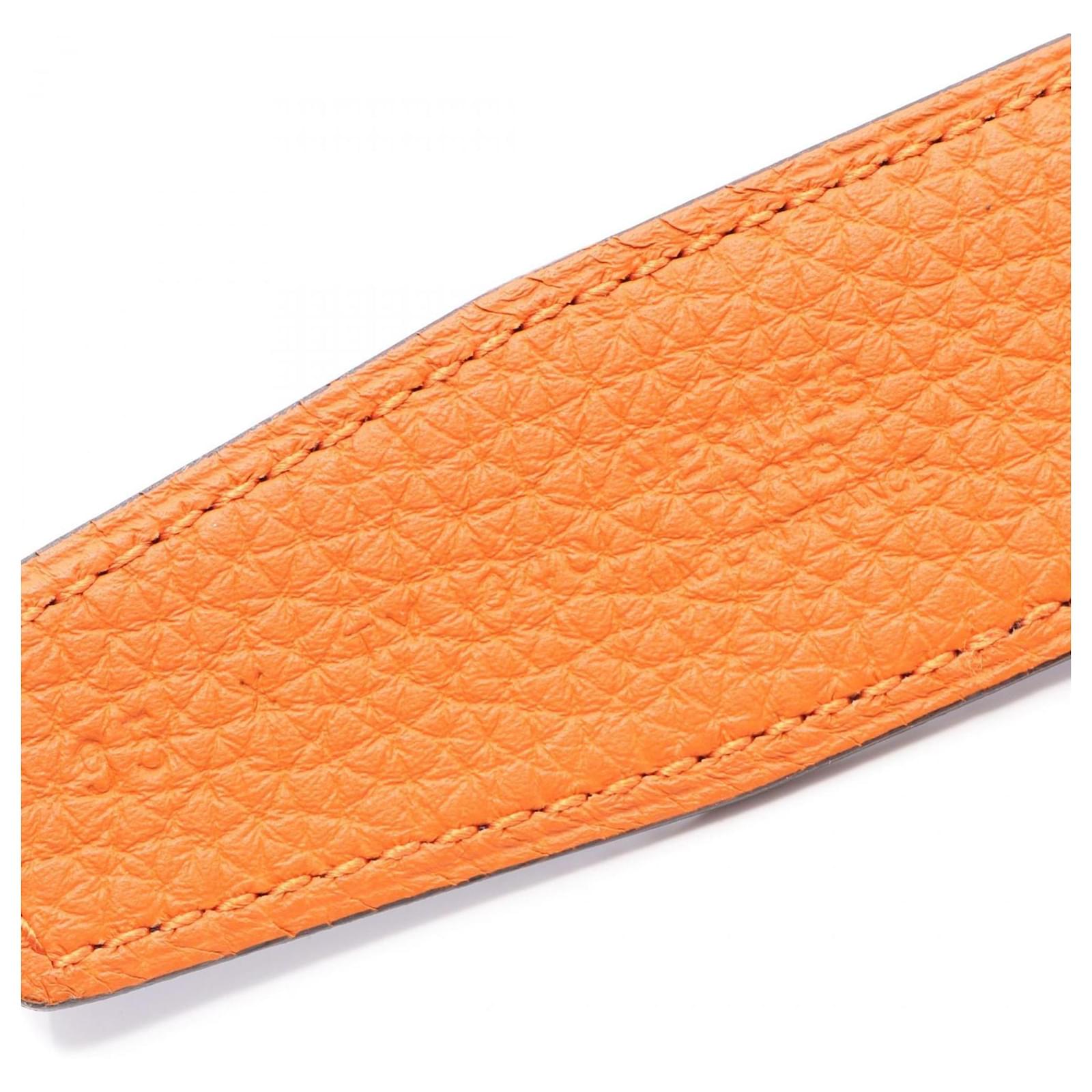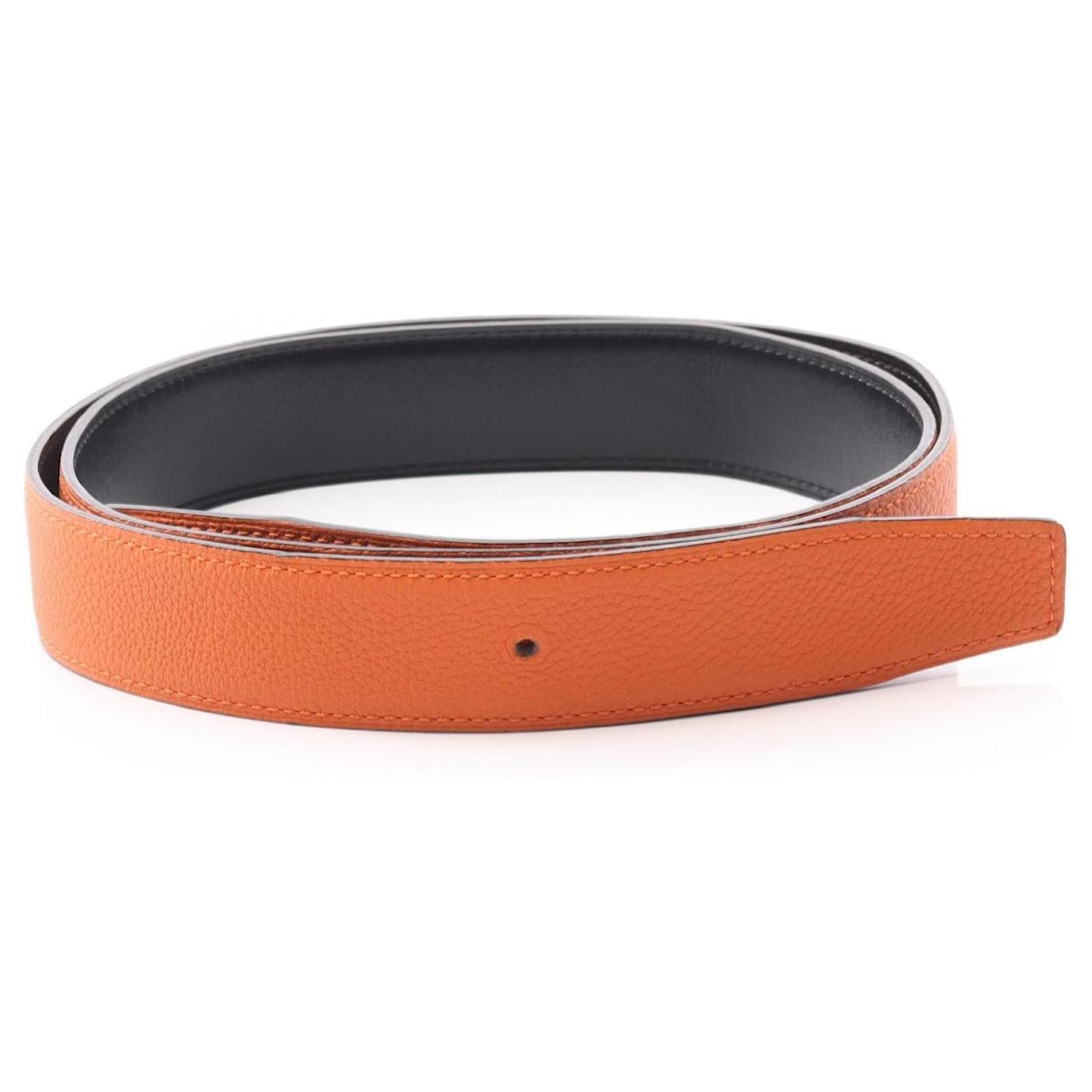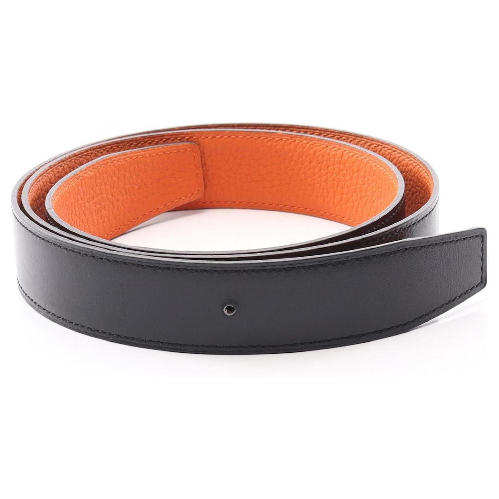 Hermès Hermes Togo Box Calf Leather Belt for Men Black Orange