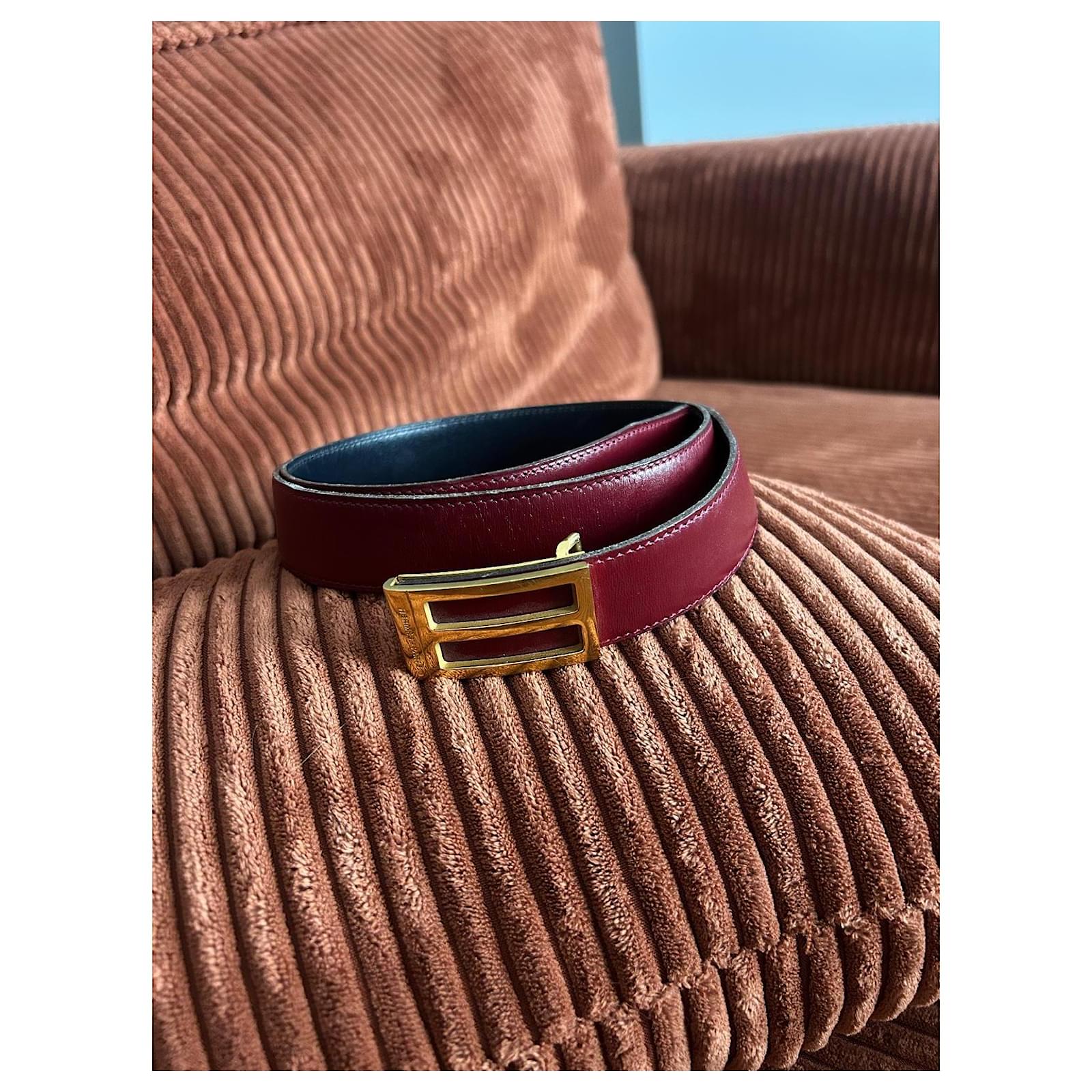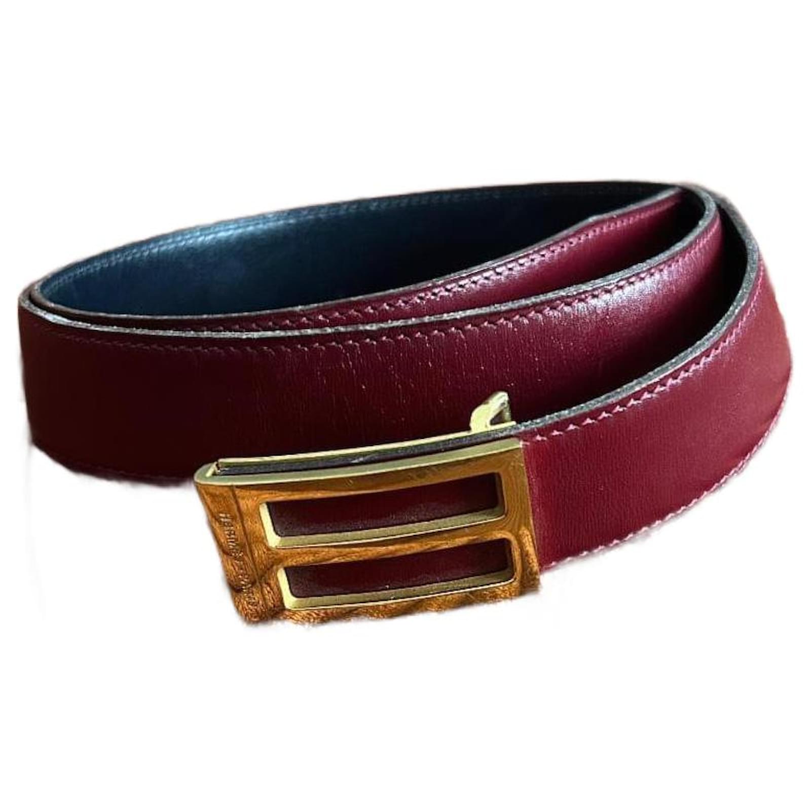 Hermès vintage two tone leather belt Red Dark red Navy blue