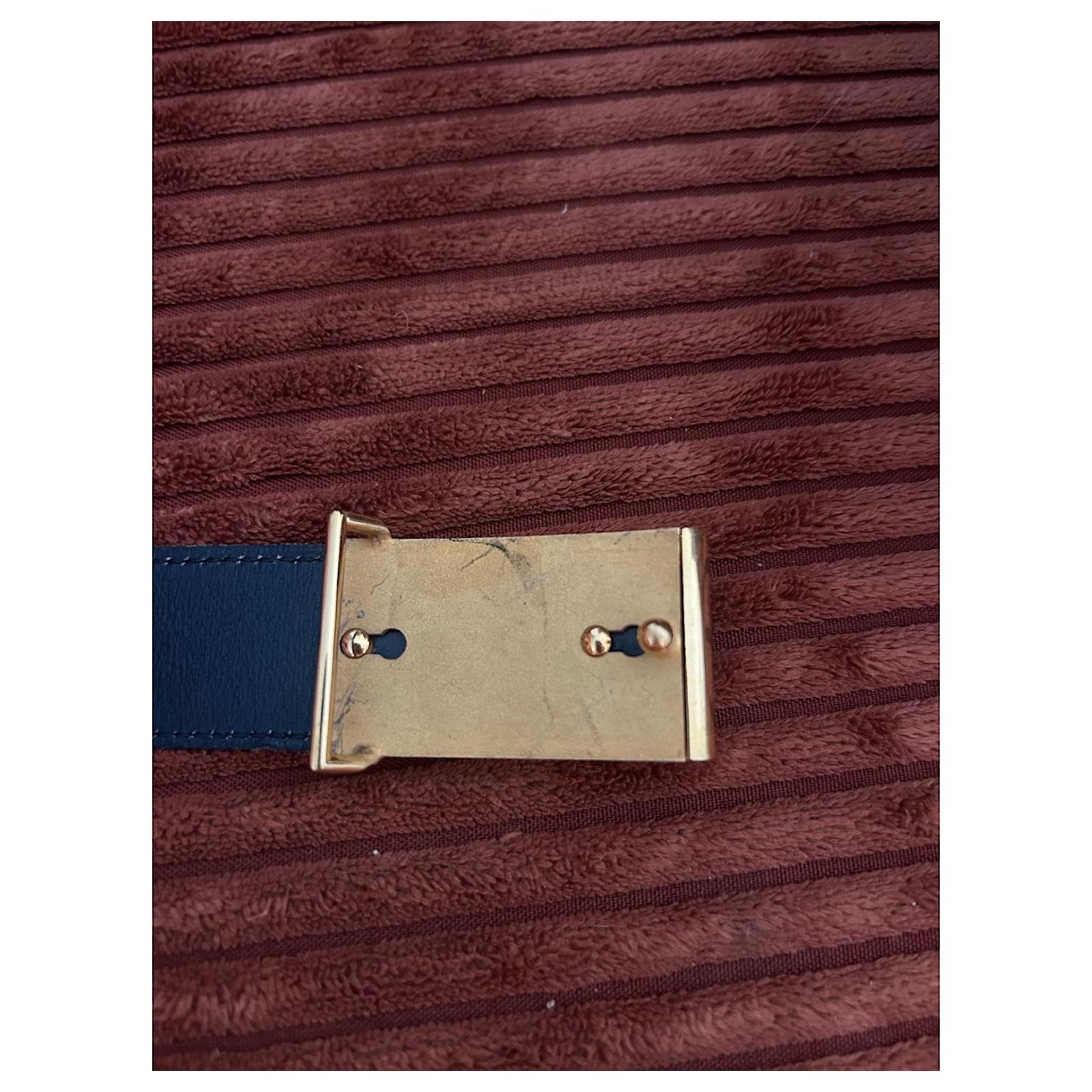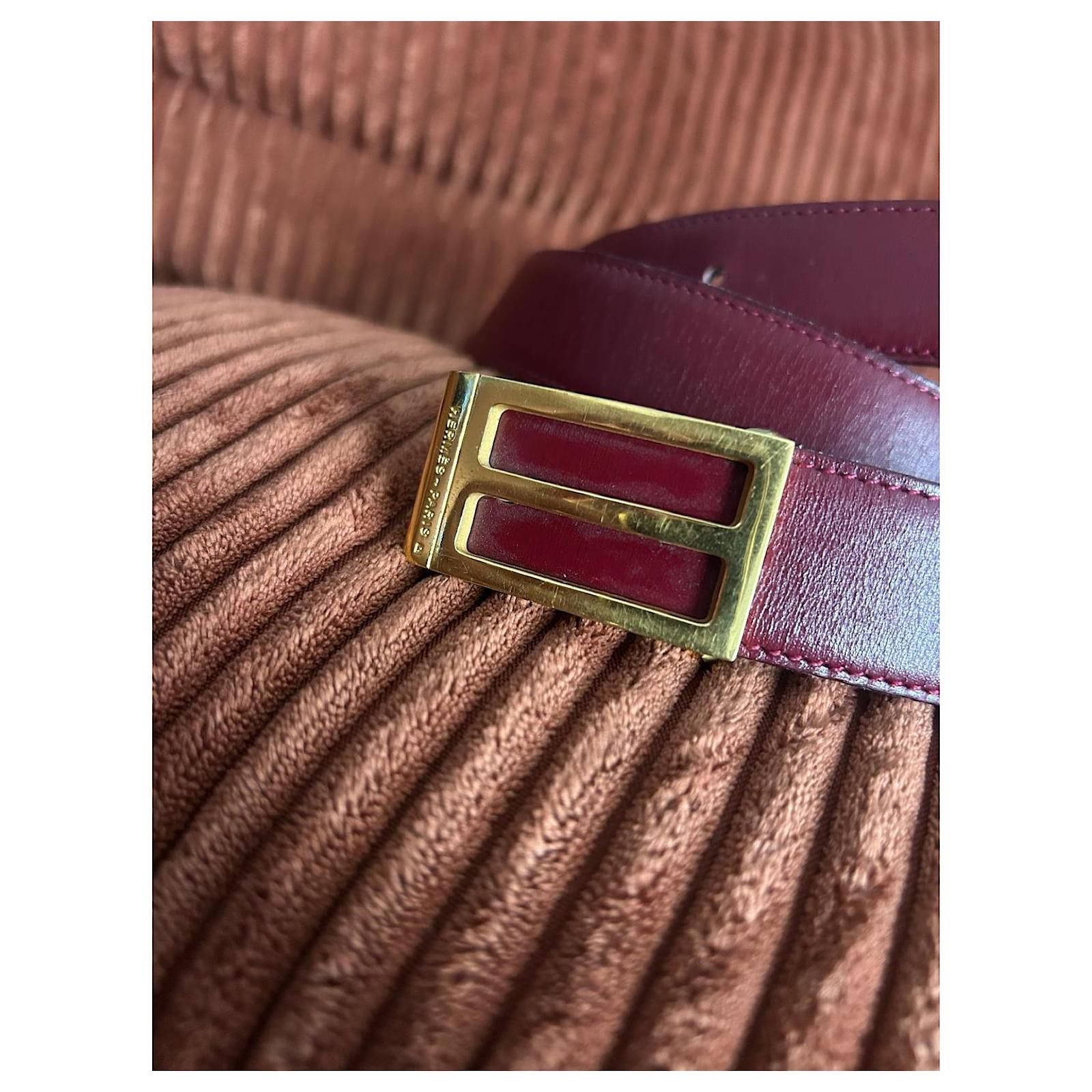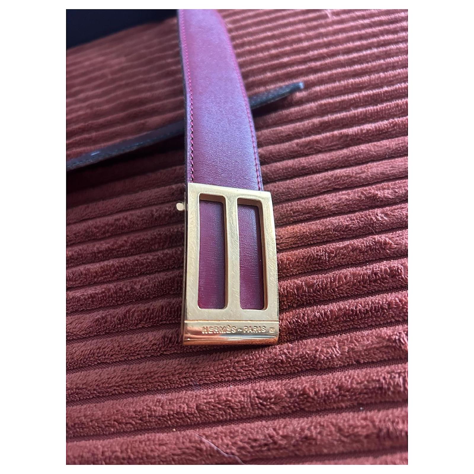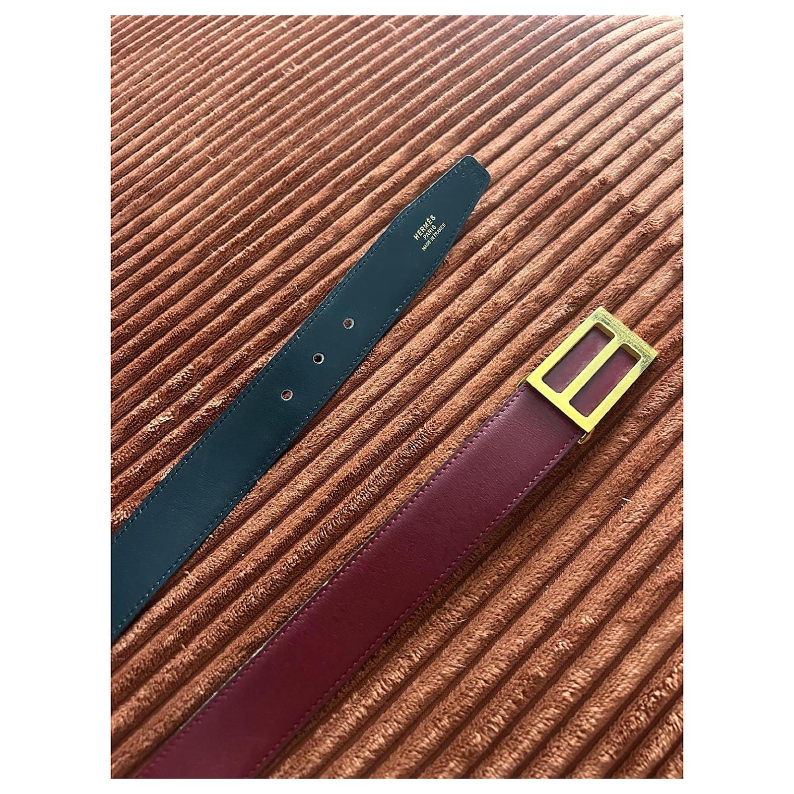 Vintage Hermès belt from 1984, bicolour with a navy blue interior and a burgundy exterior. Very lightly worn, it shows some micro-scratches on the outside of the buckle and slight marks on the inside of the buckle (not visible when worn). Overall in very, very good condition.