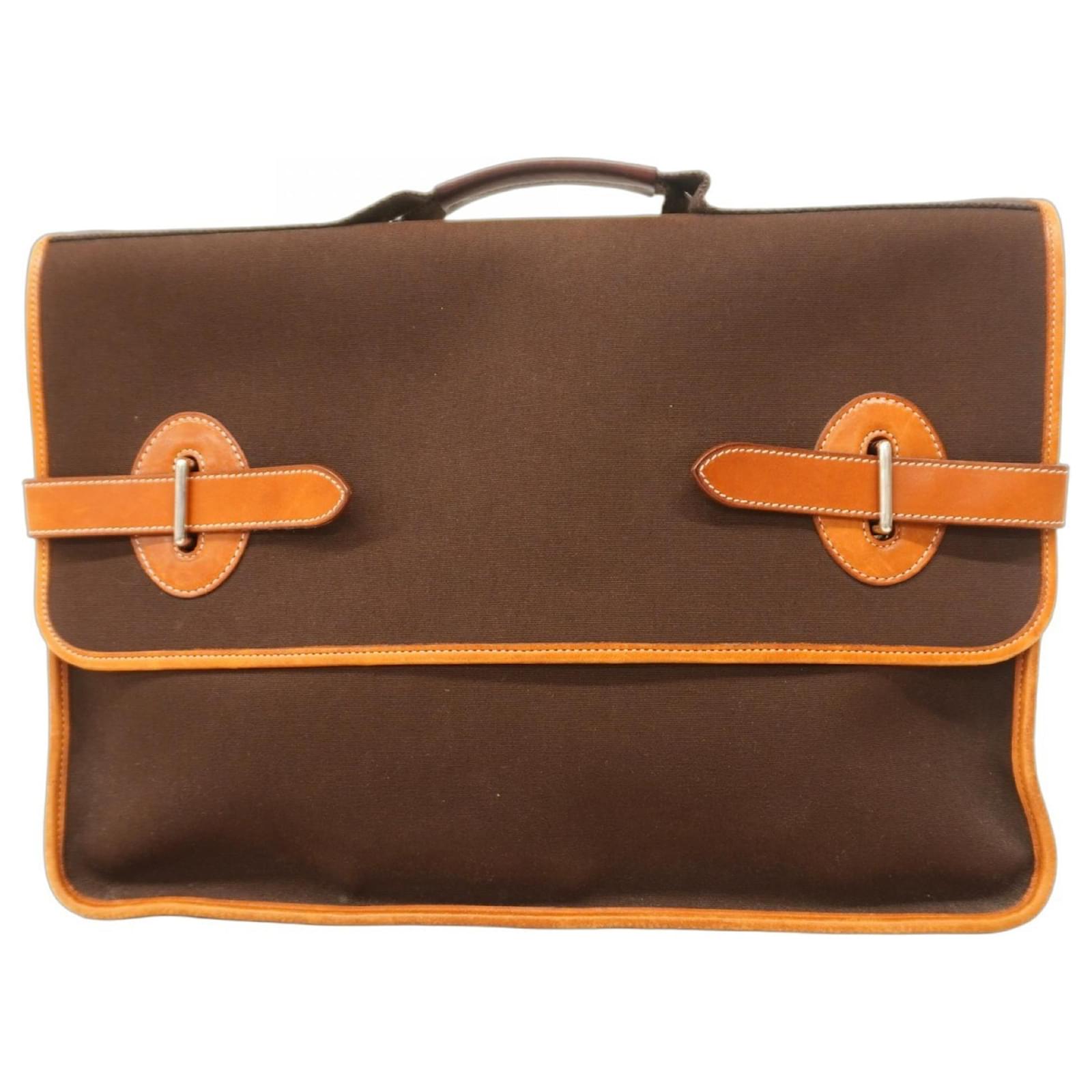 Hermes Hermès Buenaventura MM Toile Officier Brown Men's Bag