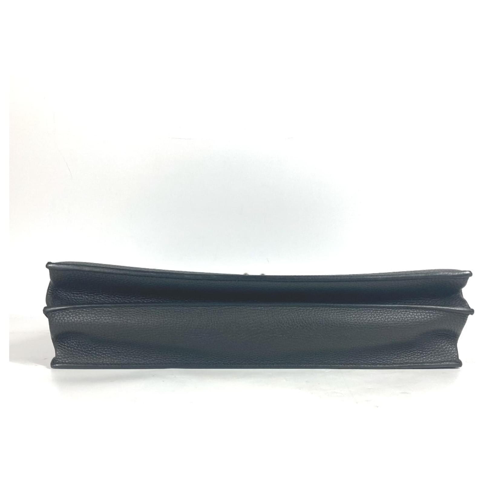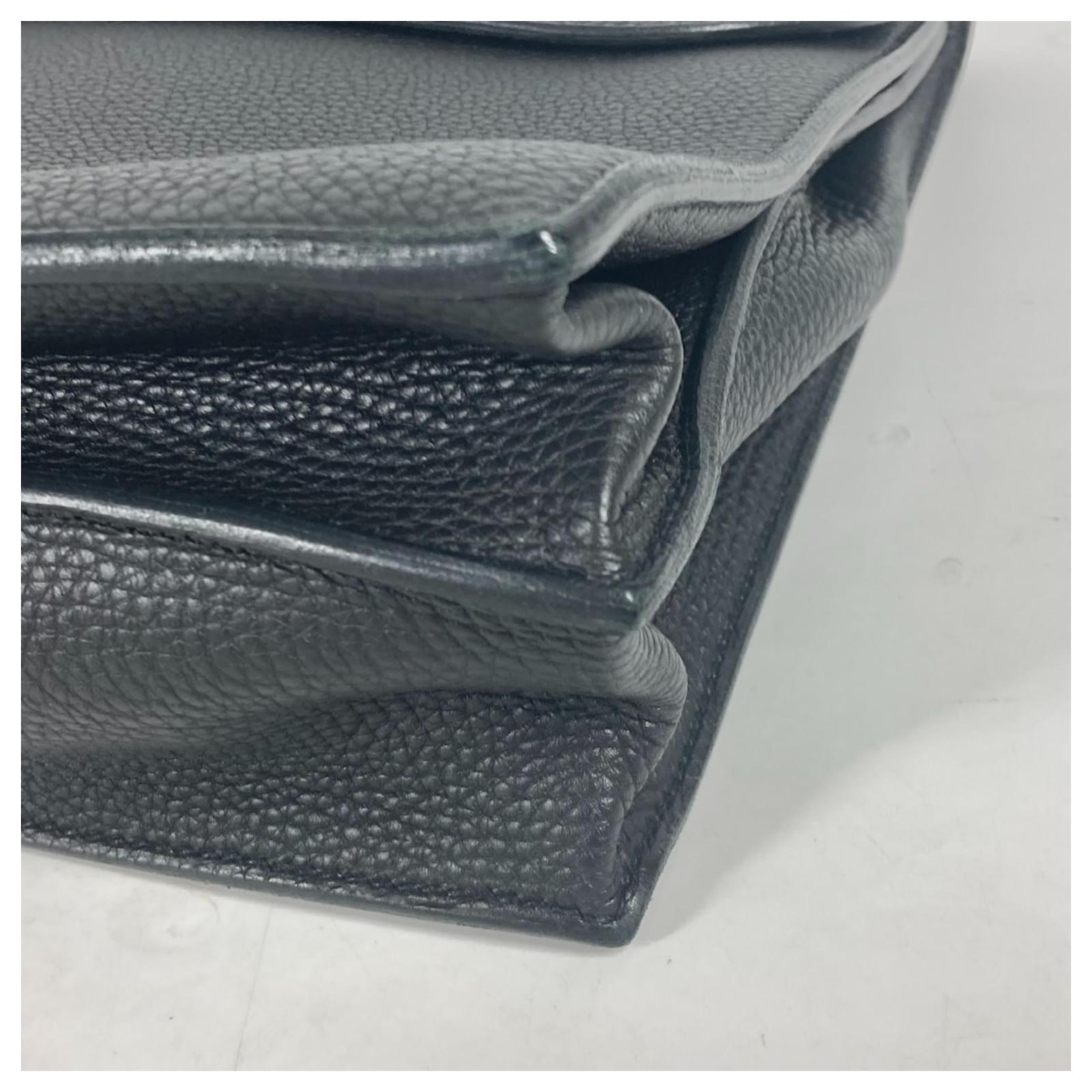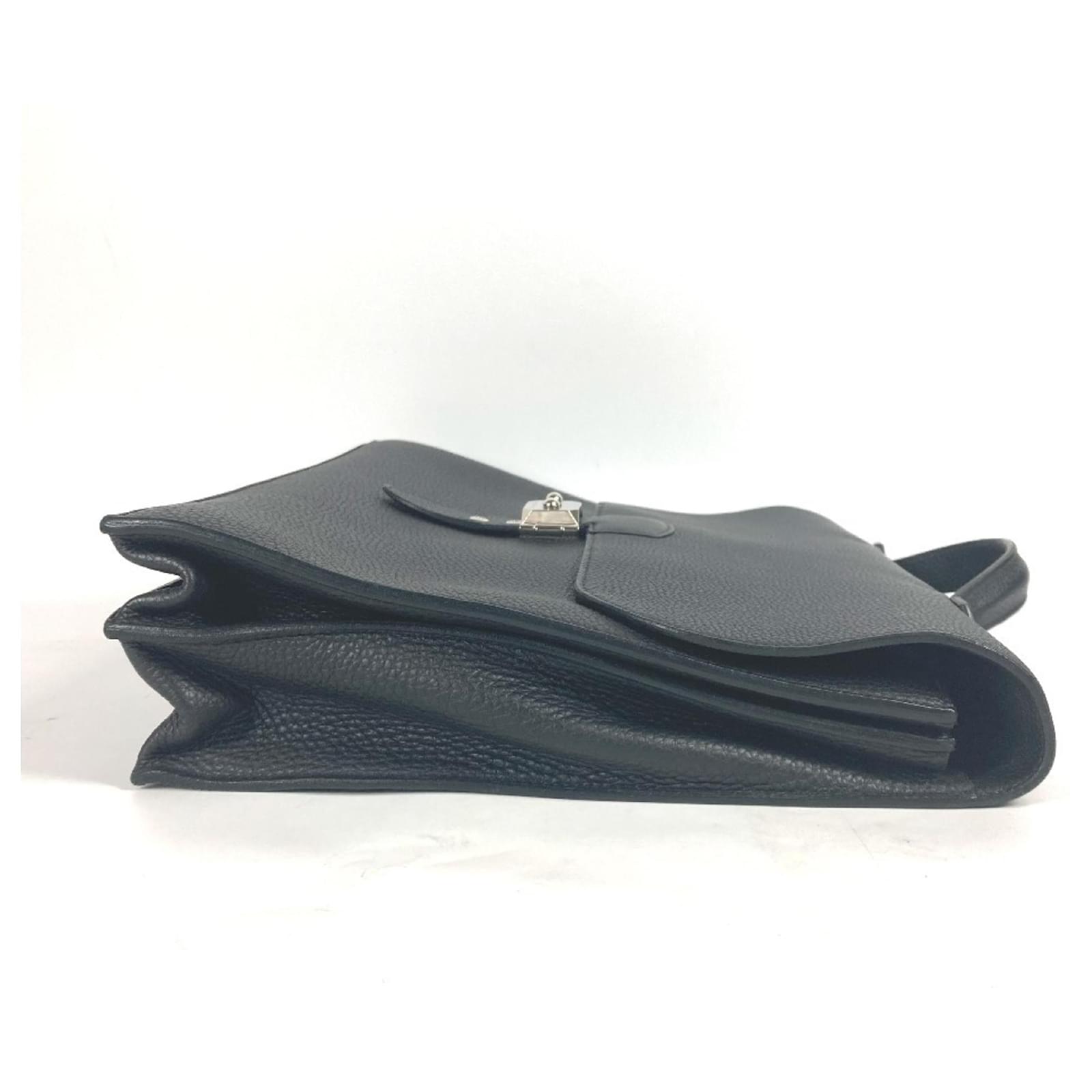 This Hermes briefcase, known as the Sac A Depeche 38, is crafted from Togo leather in a classic black color. It features silver hardware and measures 30.5cm in height, 38.5cm in width, and 13cm in depth, making it suitable for business use. The item is in used condition, rated as "like new" with hardly any traces of usage, and has insignificant overall peeling, scratches, and dirt. Included with the briefcase are a box, clochette, dust bag, and key. Potential buyers are encouraged to review the images for a detailed view of the item's condition and included accessories.
