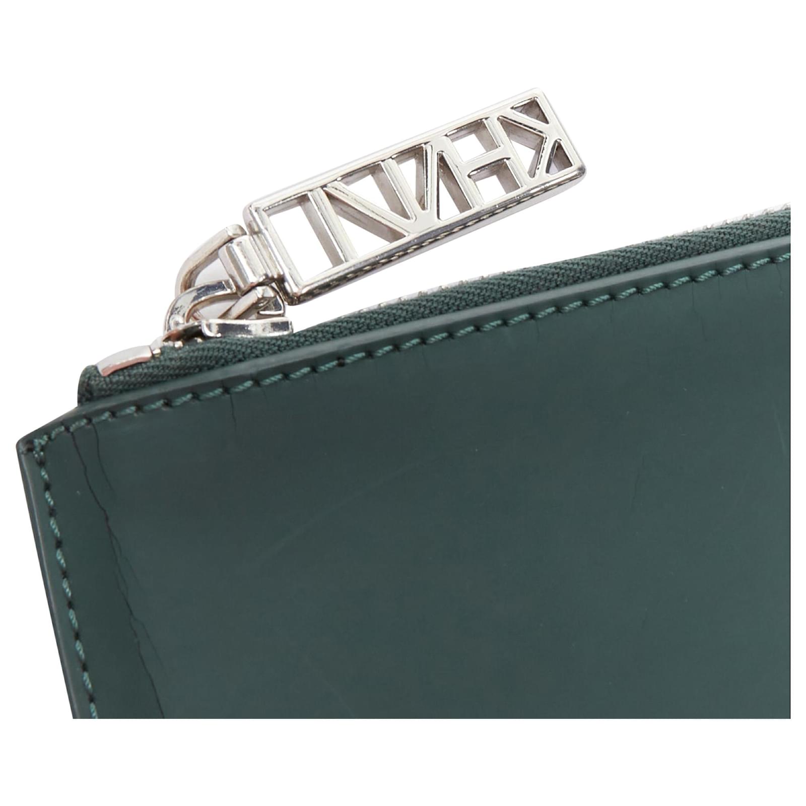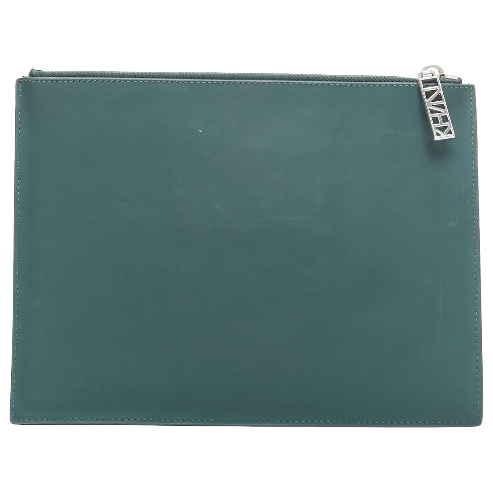Kenzo dark debossed rubber logo portfolio zip clutch Green