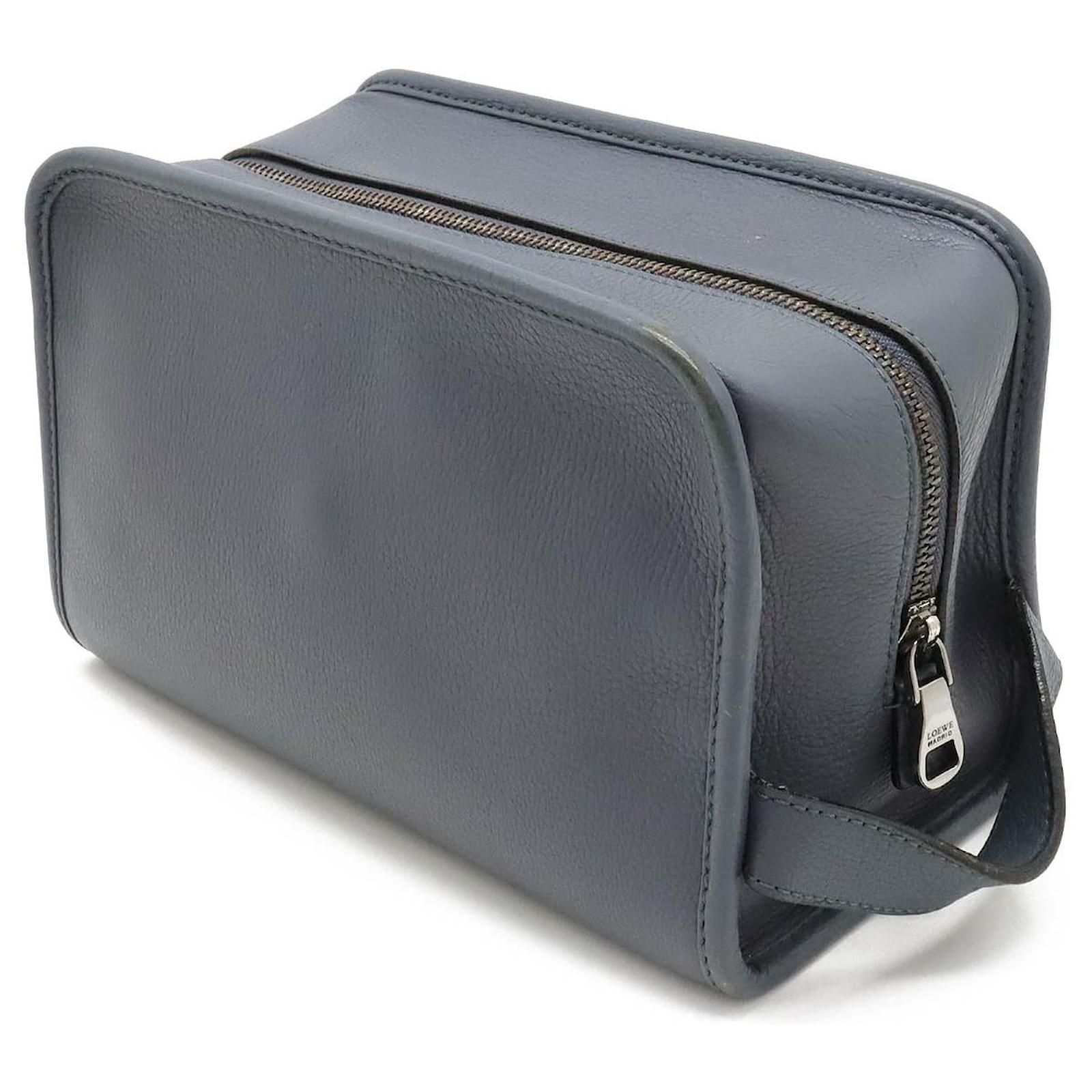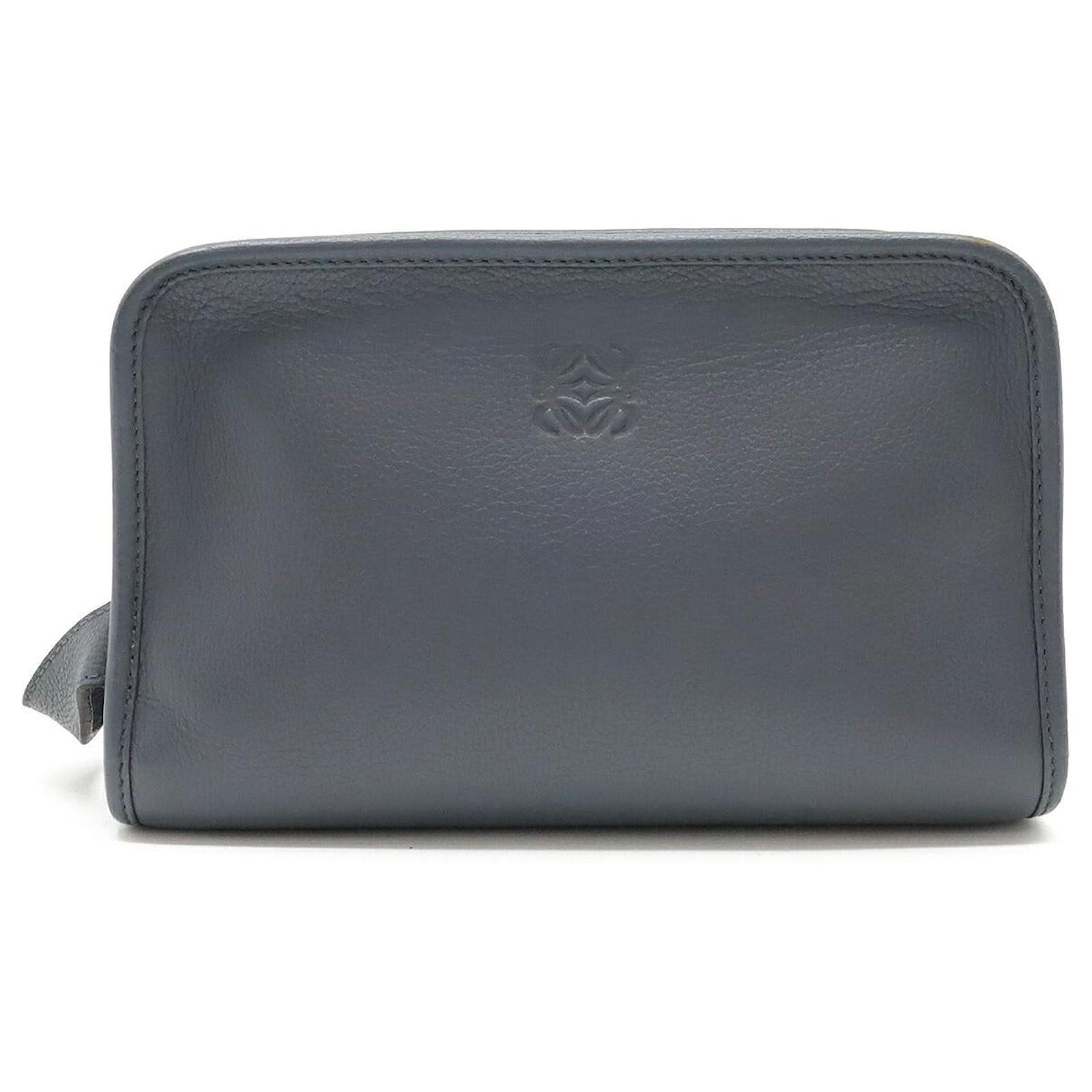 Brand Name: Loewe; Condition: Good; Category: Bag; SubCategory: Clutch Bag; Product Name: Loewe Anagram Leather Clutch Bag; Style: Gentleman; Height (cm): 14.5; Width (cm): 12; Length (cm): 23; Color: Blue; Material: Leather; Measurments: width: 120 mm length: 230 mm height: 145 mm strap length: 0 mm handle drop: 0 mm