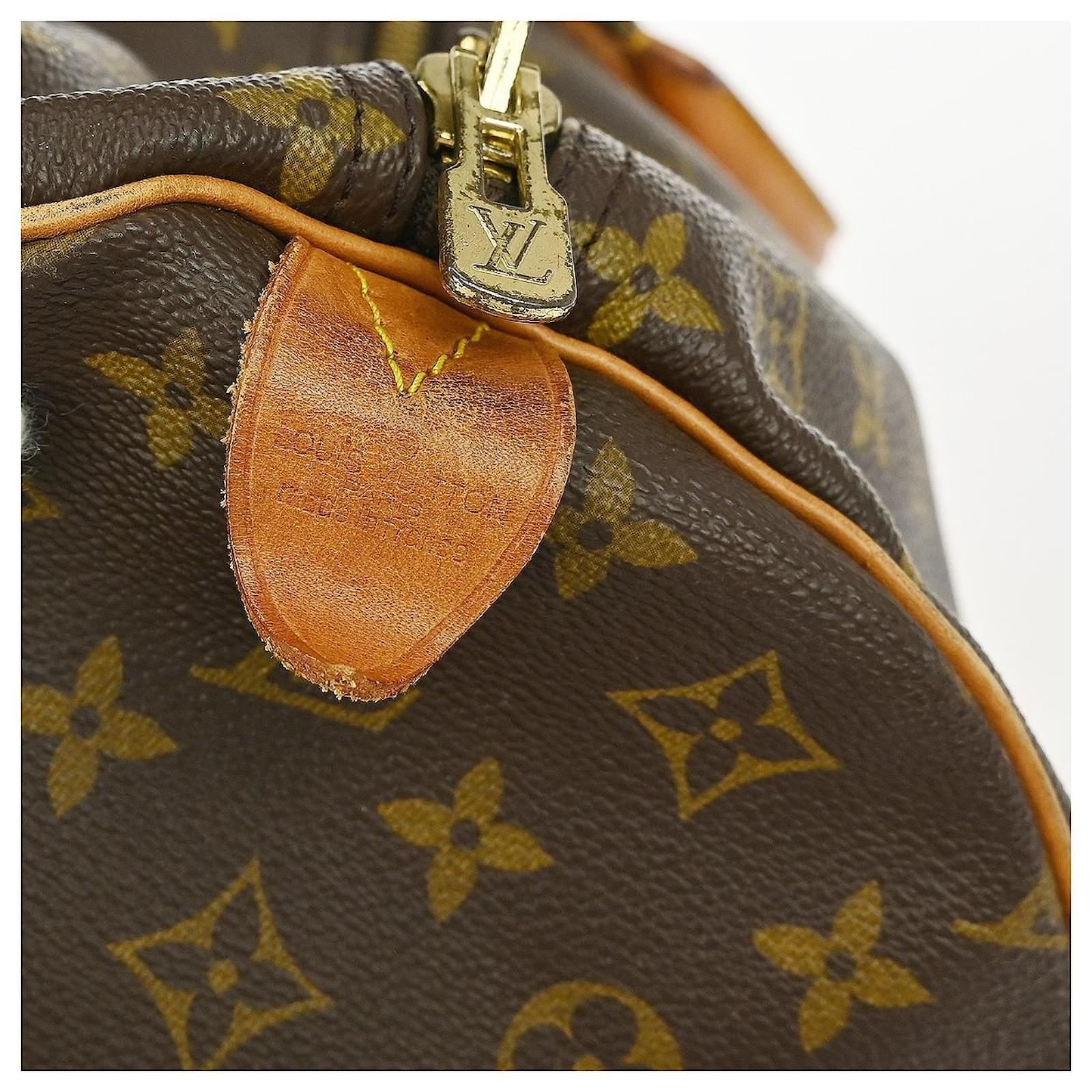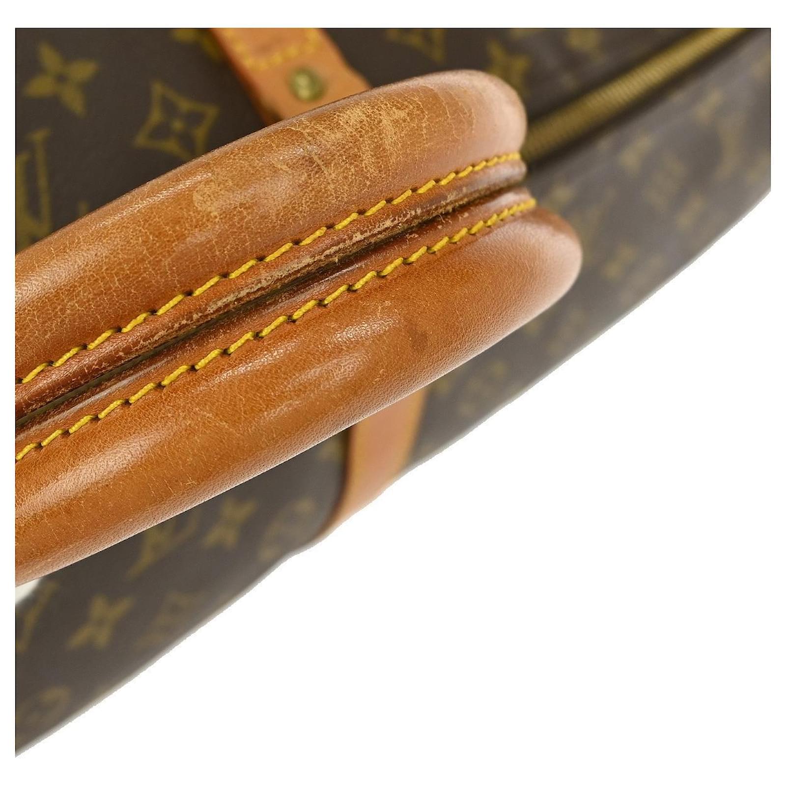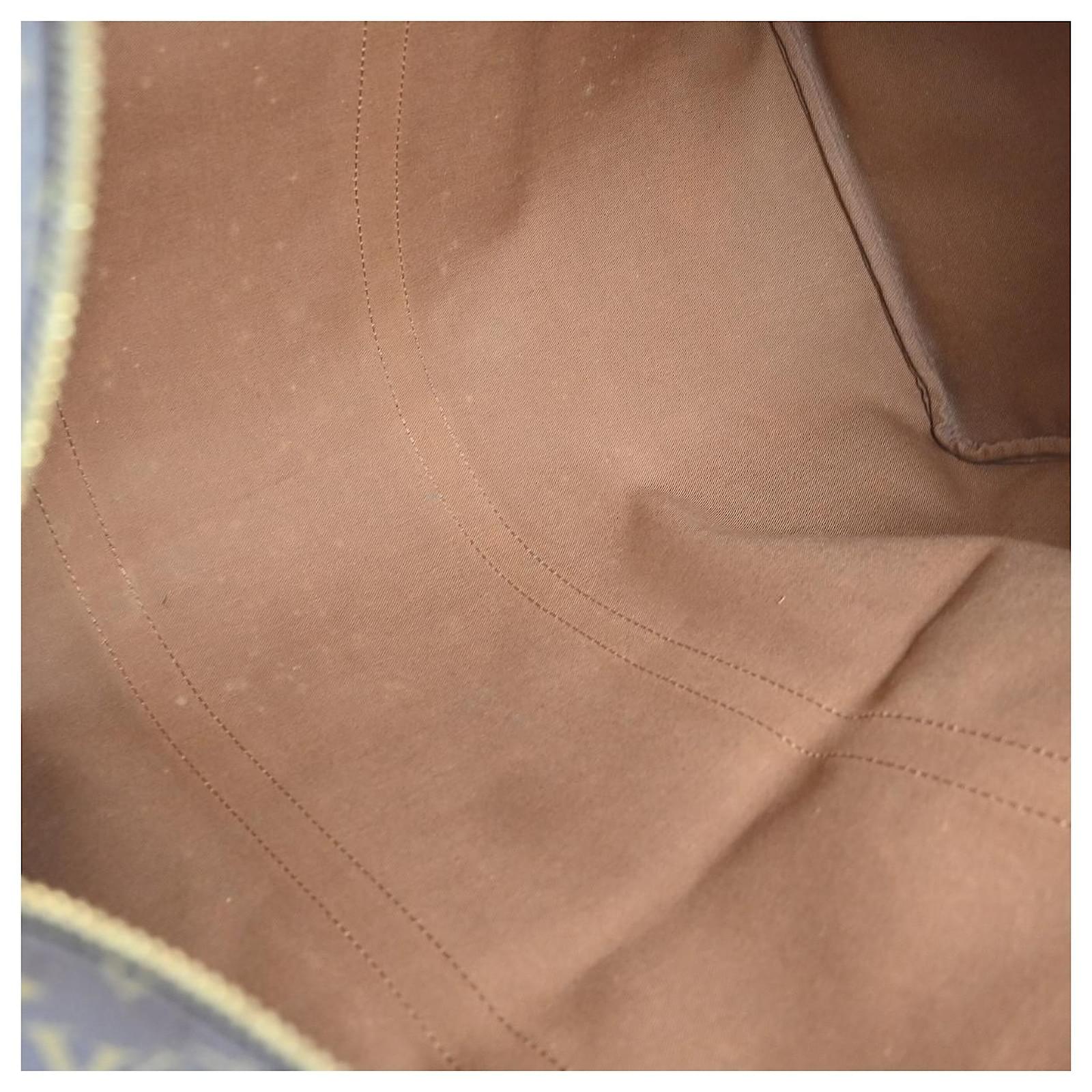 Condition description : This pre-owned Louis Vuitton Keepall 60 travel handbag is in used condition, showing scuffs, scratches, discoloration, and stains on the leather parts. The zipper is stiff, and the monogram canvas has accumulated dirt. The interior also shows signs of dirt.
