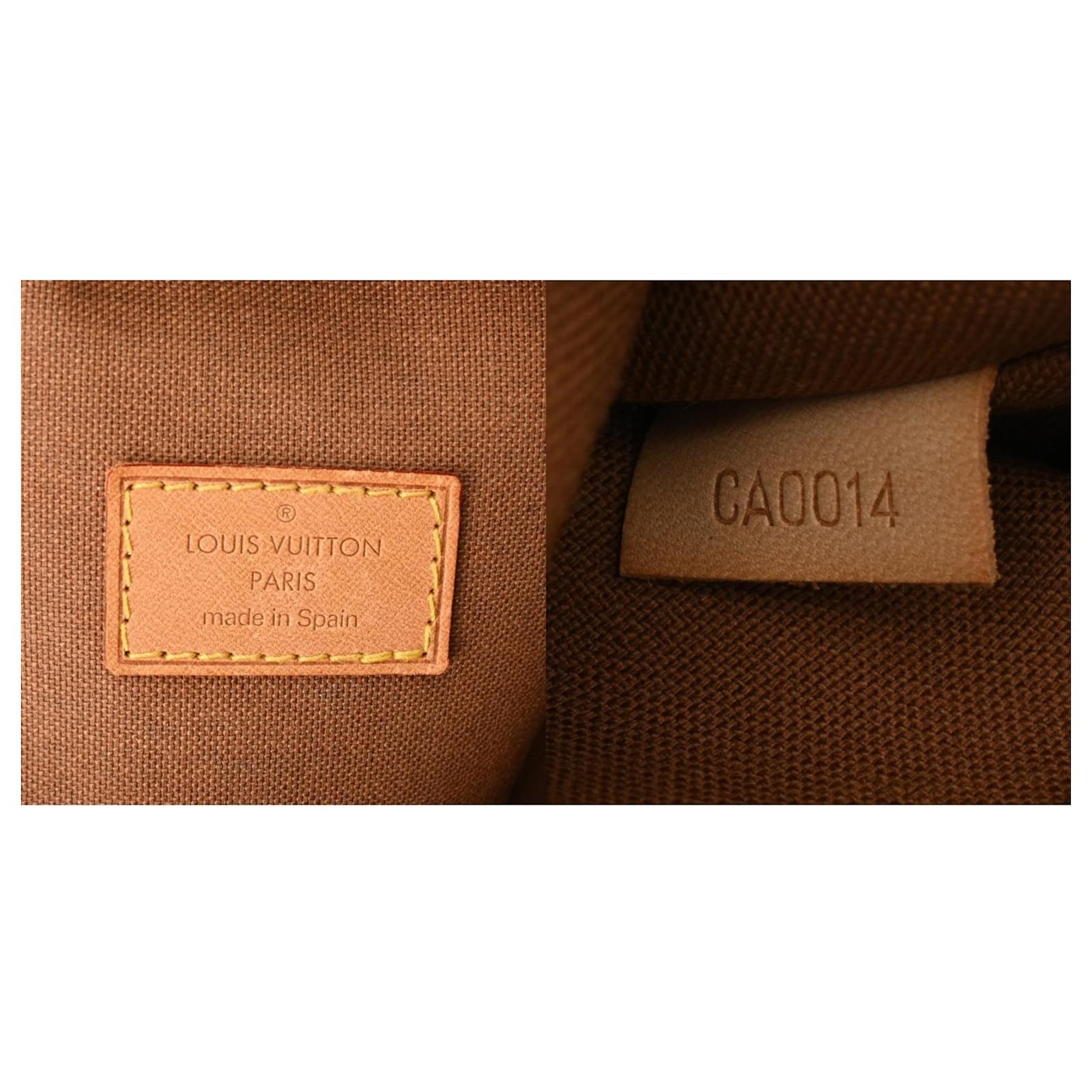 The Louis Vuitton Monogram Canvas Pochette Ganju is a brown sling bag crafted from durable canvas material featuring the iconic monogram design. With dimensions of 22.5cm in height, 12.5cm in width, and 5cm in depth, this bag is designed for convenience and style. It is manufactured in Spain under the model number M51870.