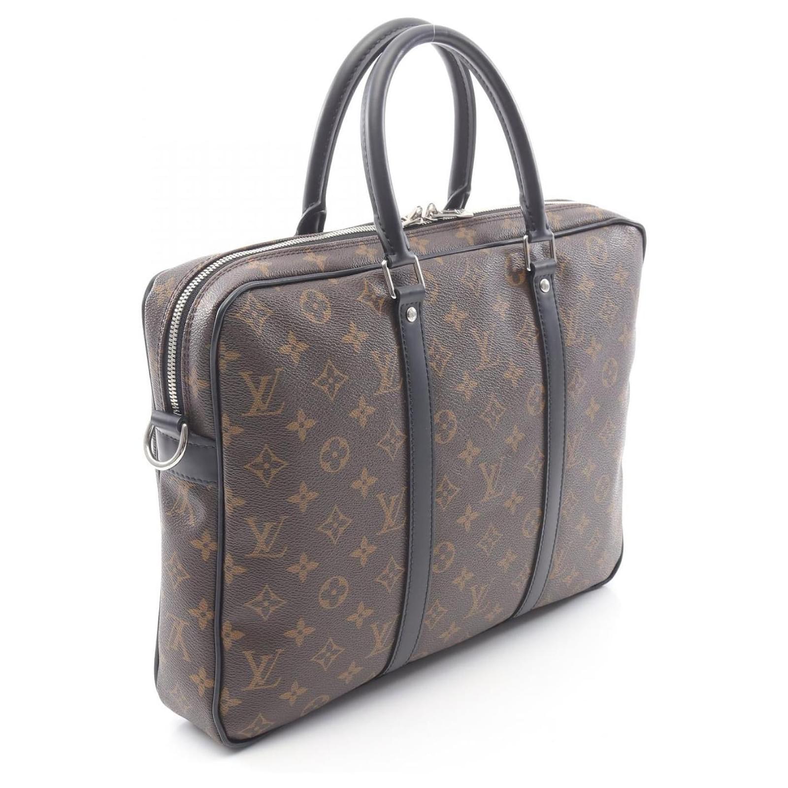 Brand Name: Louis Vuitton; Condition: Very Good; Category: Bag; SubCategory: Business Bag; Product Name: Louis Vuitton Monogram Macassar Briefcase M52005; Model Number: M52005; Style: Gentleman; Accessories: Shoulder Strap; Height (cm): 27; Width (cm): 5.5; Length (cm): 36; Color: Brown; Material: PVC coated canvas, leather; Origin: France; Measurments: width: 55 mm length: 360 mm height: 270 mm strap length: 0 mm handle drop: 0 mm