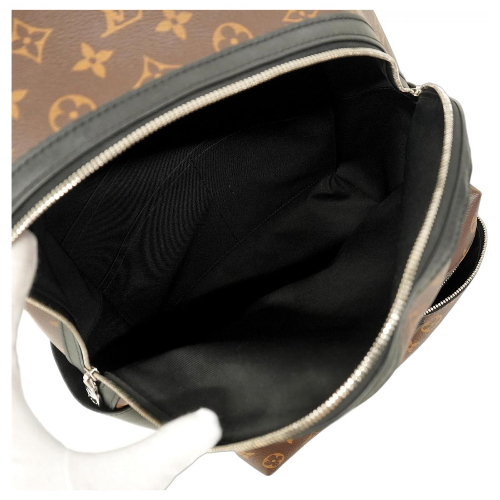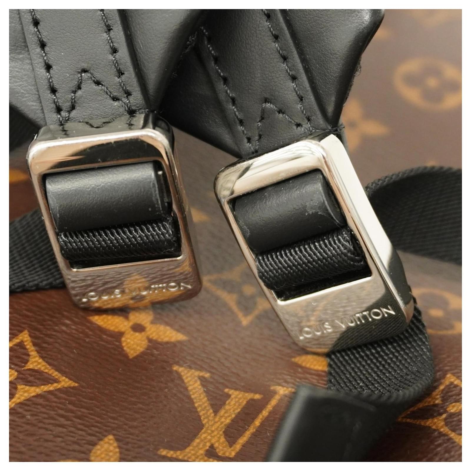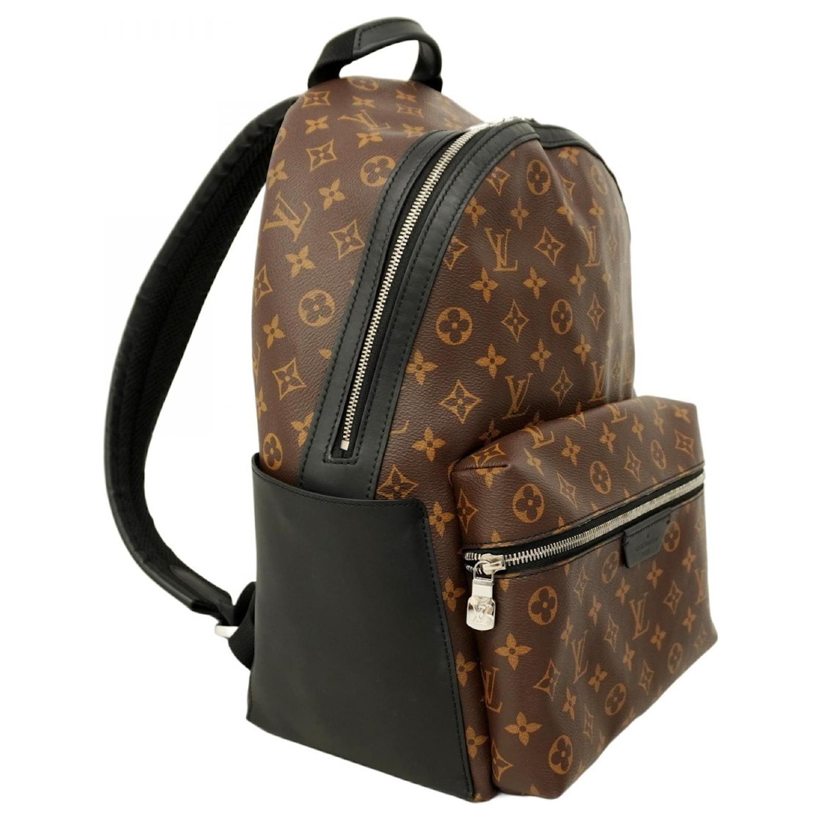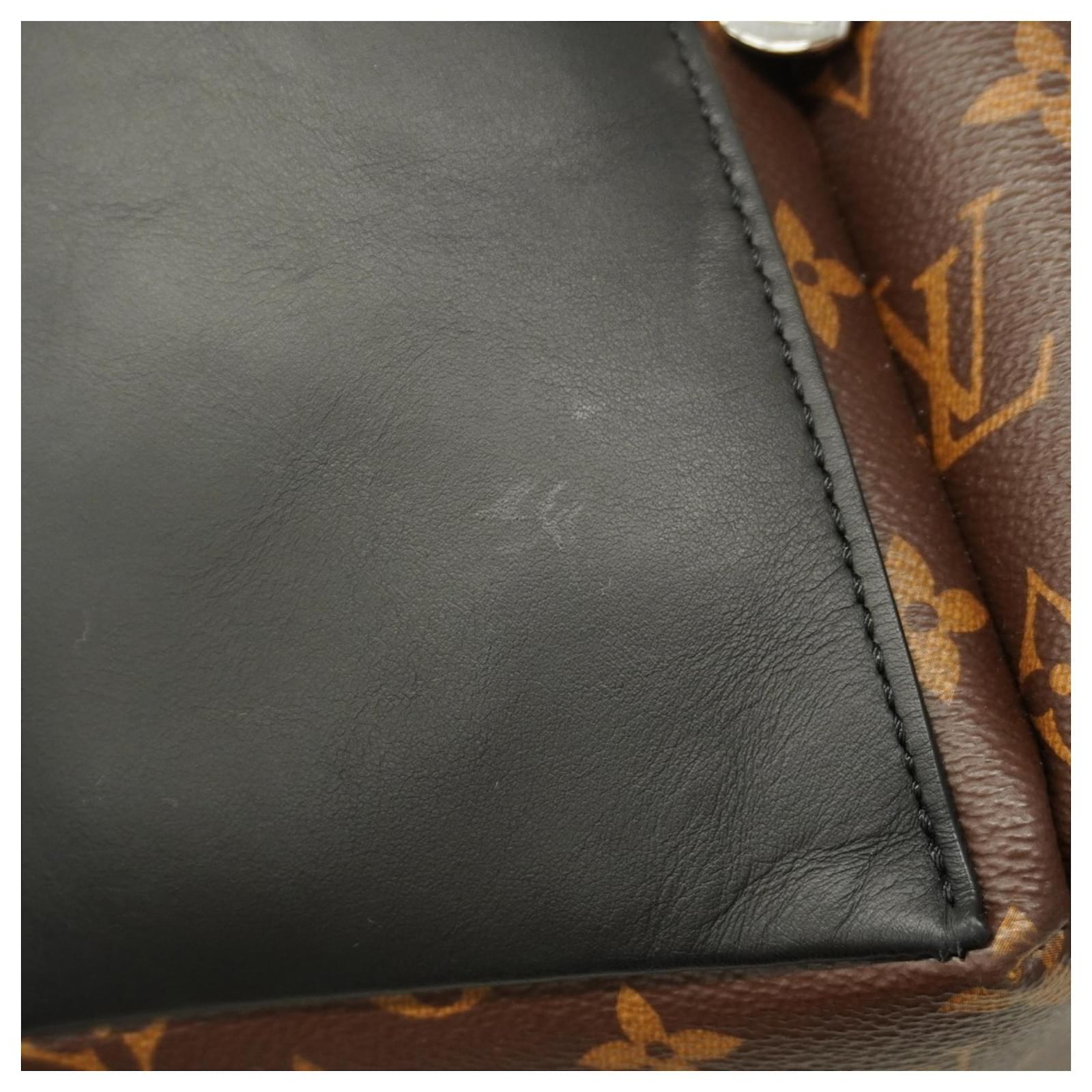 This Louis Vuitton Monogram Macassar Discovery Backpack PM is designed for practicality and style, featuring a black and brown color scheme. Measuring 39cm x 28cm x 15.5cm, it is suitable for everyday use. The backpack is pre-owned and classified as in good condition, with only slight traces of usage, scratches, and dirt visible. It comes with a dust bag, but potential buyers are encouraged to review provided images to assess the exact condition. The item is part of the Louis Vuitton brand, with the model number M46684.